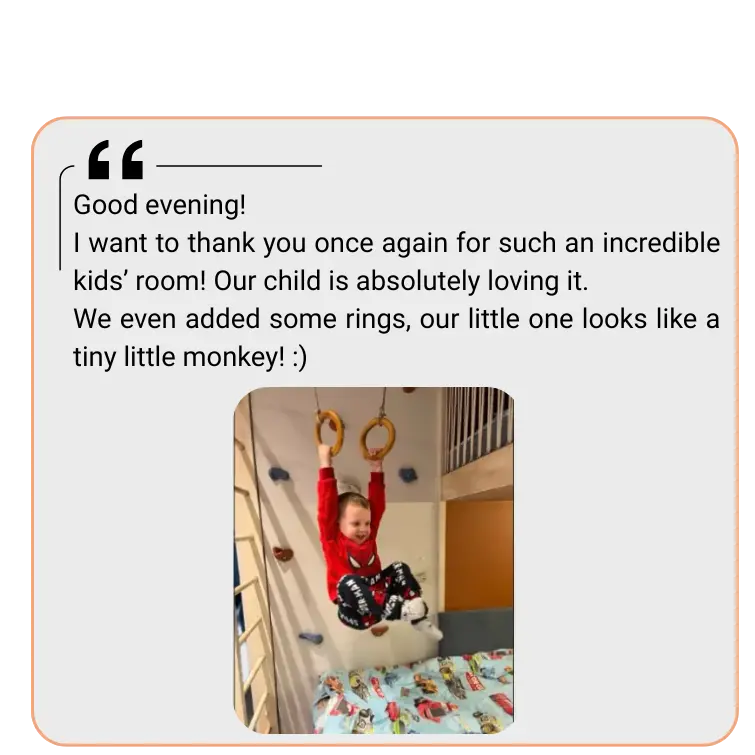 Today, all our experience, knowledge, and creativity are focused on designing children’s rooms and play areas that meet the highest standards of quality and comfort, growing together with the children.