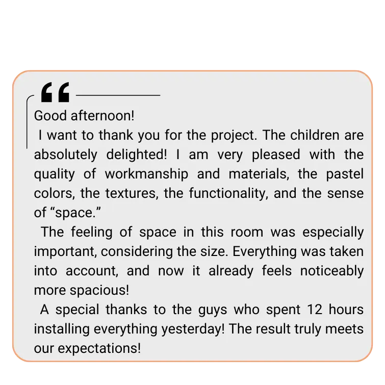 Thanks to our custom-made furniture, we create turnkey children’s rooms — from concept to completion — paying attention to every detail, from the initial idea to the very last screw on the shelf.