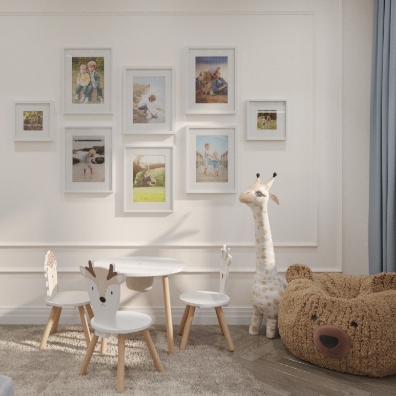 Paintings, posters and photographs are not only decorative elements, but also a great way to reflect a child’s interests and hobbies. By choosing such details for a child’s room, you can emphasize the uniqueness of the little owner of the space.
