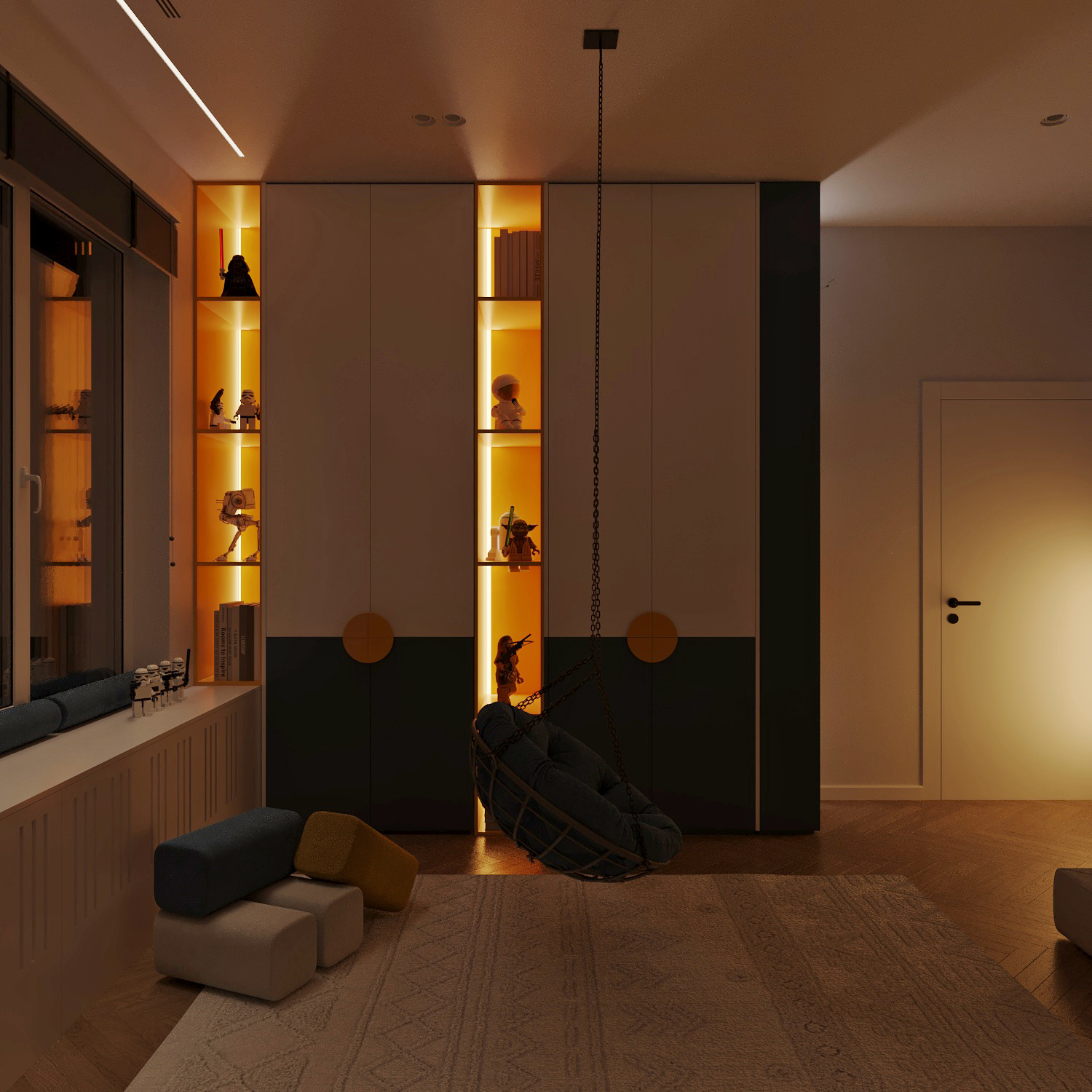 A child’s room is not just a place to sleep and study. It is a space where a child dreams, plays, makes up his own stories and feels safe. By adding elements to the design that the child asks for – a slide, a hut, a wall for drawing or fairy-tale lighting – you do not just make the interior beautiful, but create a world in which the child wants to be.