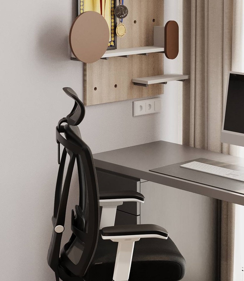 The right location of the workplace is important for the comfort and efficiency of learning. One of the key aspects is access to natural light. It is best to place the desk next to a window so that the child can work in natural light, which has a positive effect on vision, overall health, and mood. Natural light helps to conserve energy throughout the day and promotes better concentration.