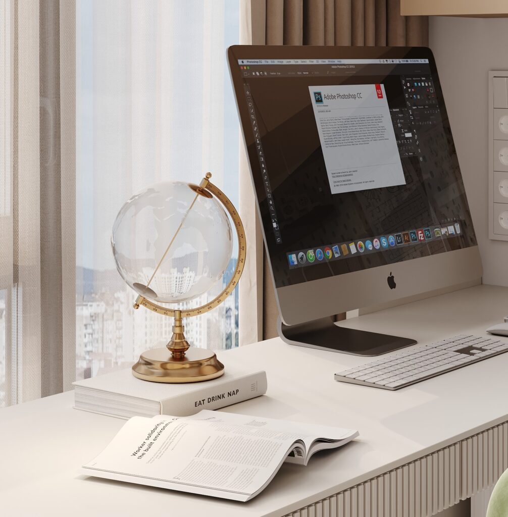 If you can’t place your desk near a window, you should provide good artificial lighting. Choosing lamps that can adjust the light intensity is an important element in creating a comfortable atmosphere. Lamps with soft, non-glare light help to create coziness and maintain concentration, especially at night.