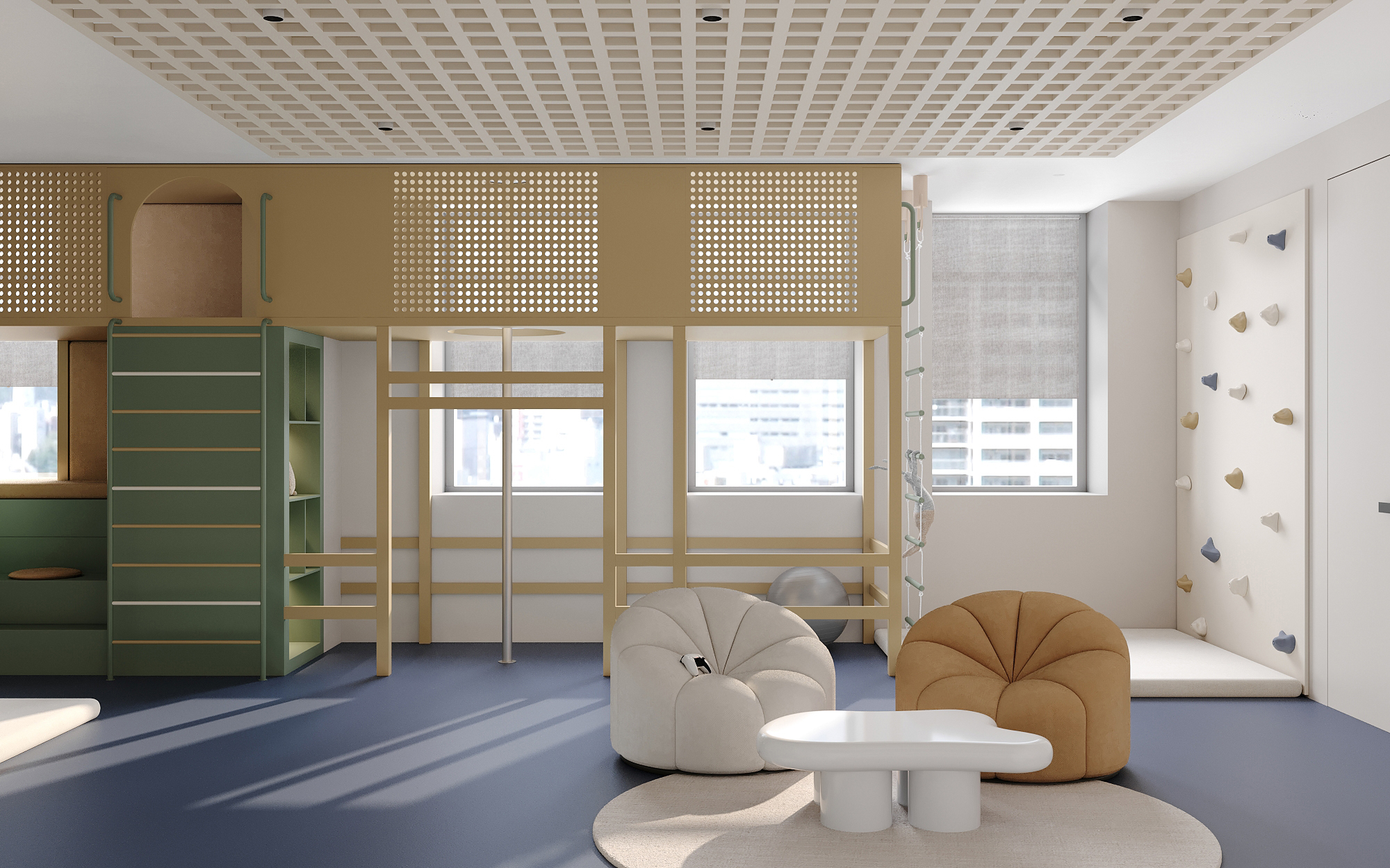 Project 993 by Felifam is a spacious and functional playroom for three children, measuring 60 m². The unique design includes areas for training, aerial gymnastics, relaxation and joint games. We used safe and environmentally friendly materials, as well as original decorative elements that add style and comfort to the room.