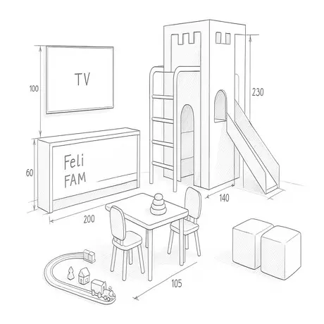 Our comprehensive service includes design, custom furniture production in our own workshop, installation, and complete setup of children’s play areas, with every detail meeting the highest standards of quality and modern trends.