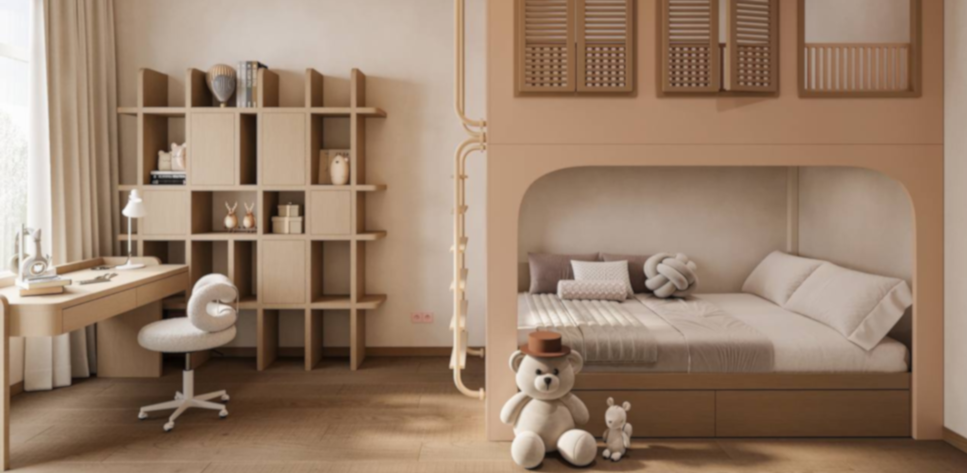 It includes all the necessary stages to create a functional, safe, and aesthetically pleasing children’s space — from thoughtful design to carefully selected materials and a 1:1 realization exactly as in the visuals.