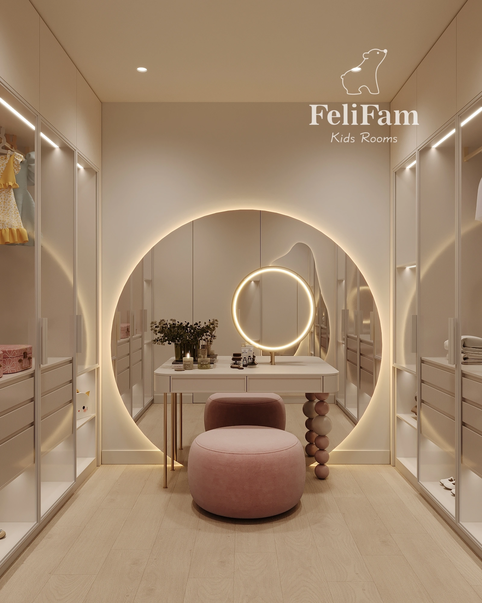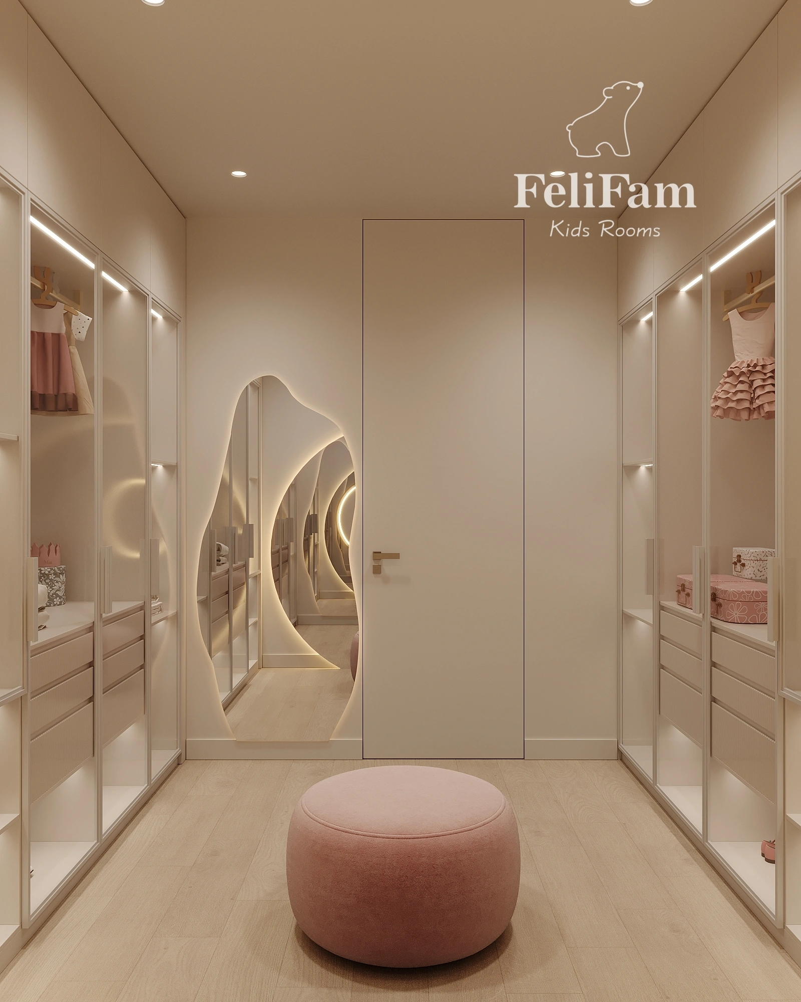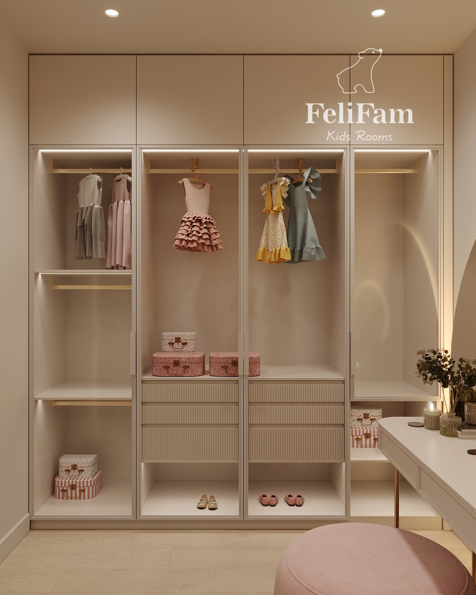 Beautiful and spacious walk-in closet for a girl