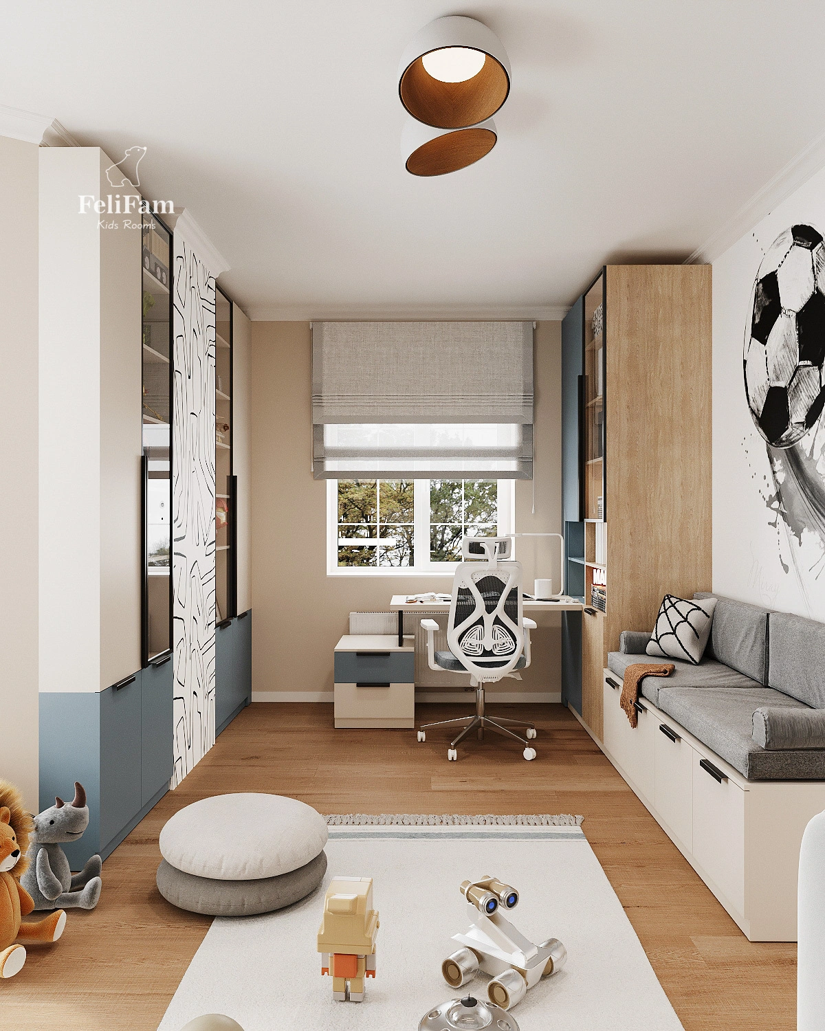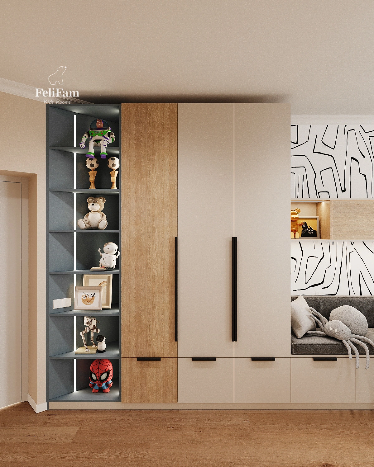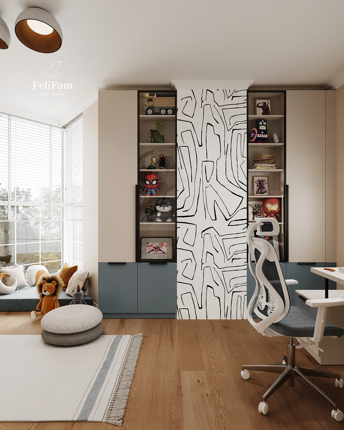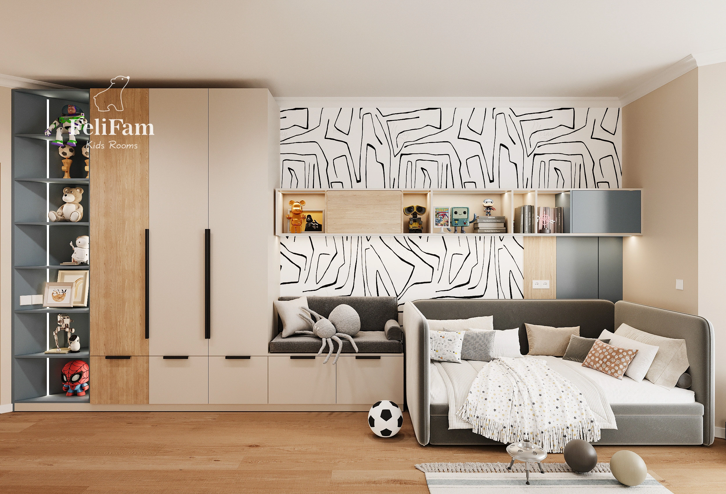 This kids’ room design by FeliFam takes into account the child’s individual needs, offering practicality and aesthetics in every detail.