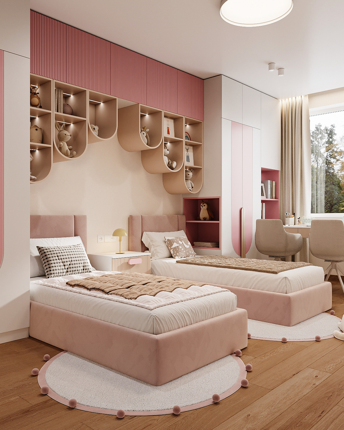 Design of a children’s pink bedroom for two girls