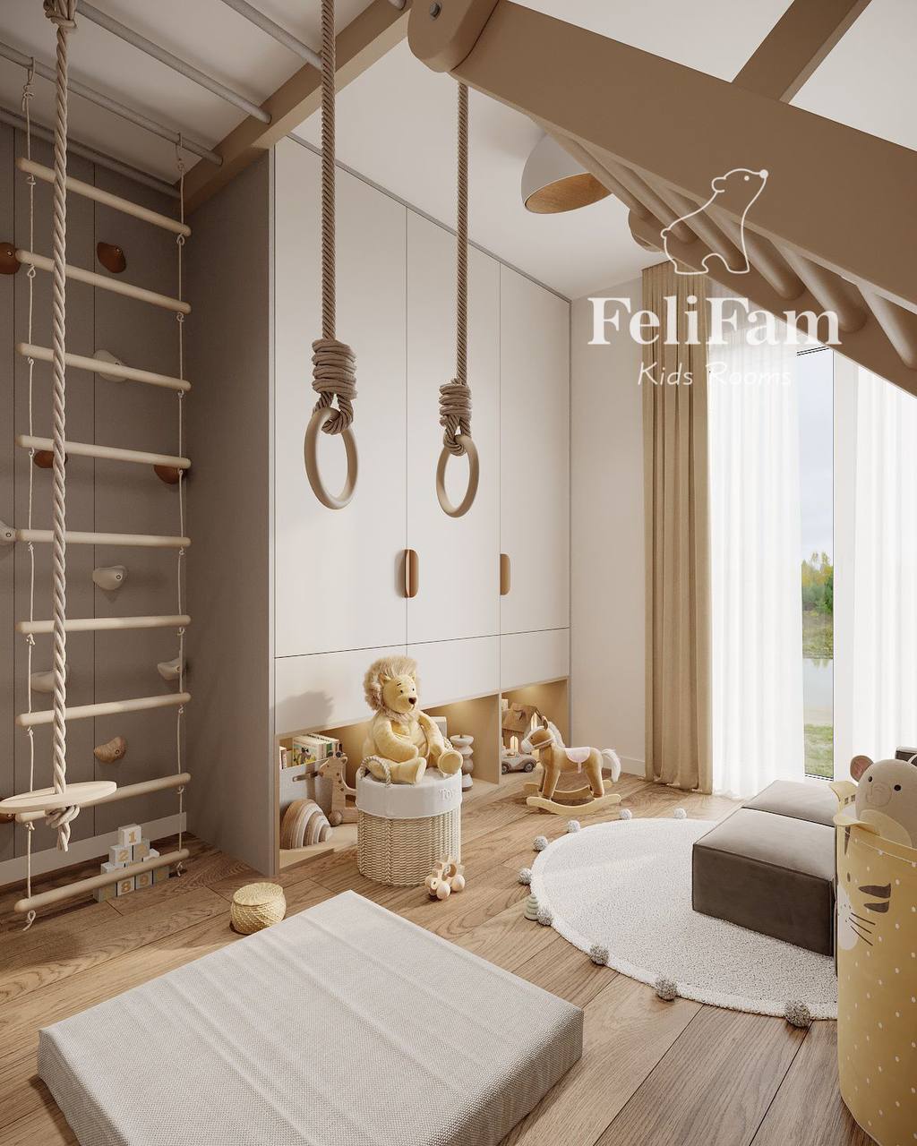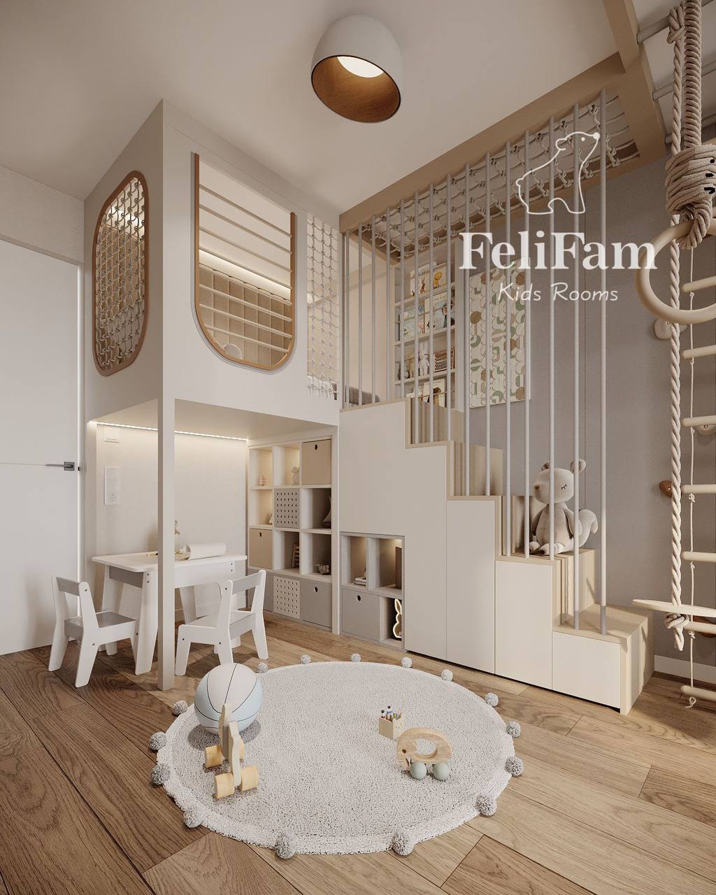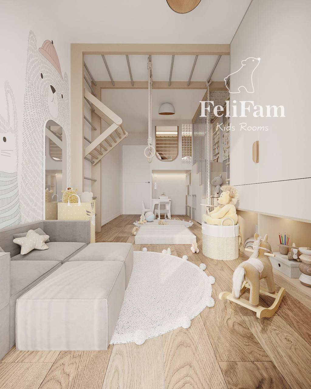 Special attention was given to details and zoning: the accent rug echoes the colors of the artwork and unifies the space, creating a harmonious and functional environment for the little one. The room feels bright, cozy, and stylish, with every interior element thoughtfully designed to meet the child’s needs, ensuring a safe and comfortable stay.