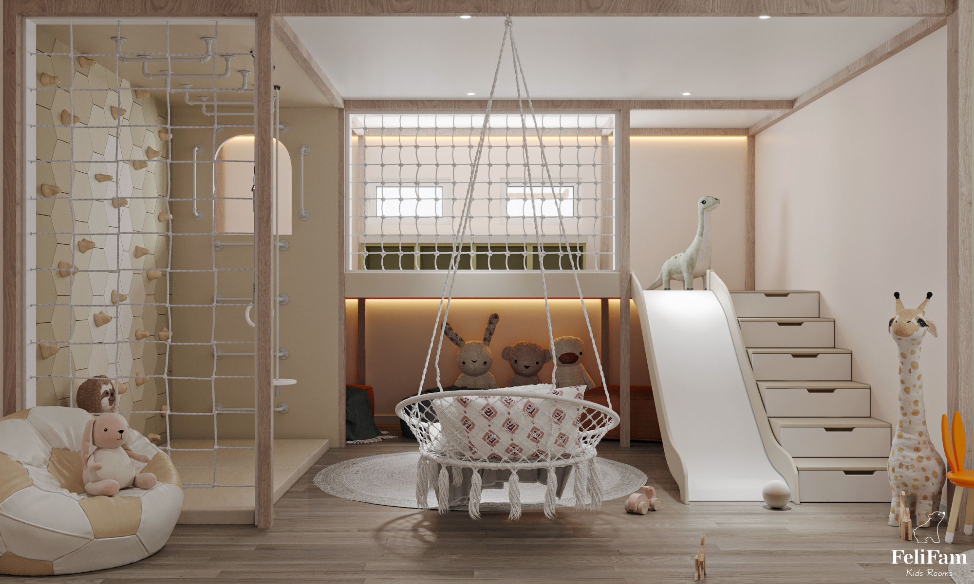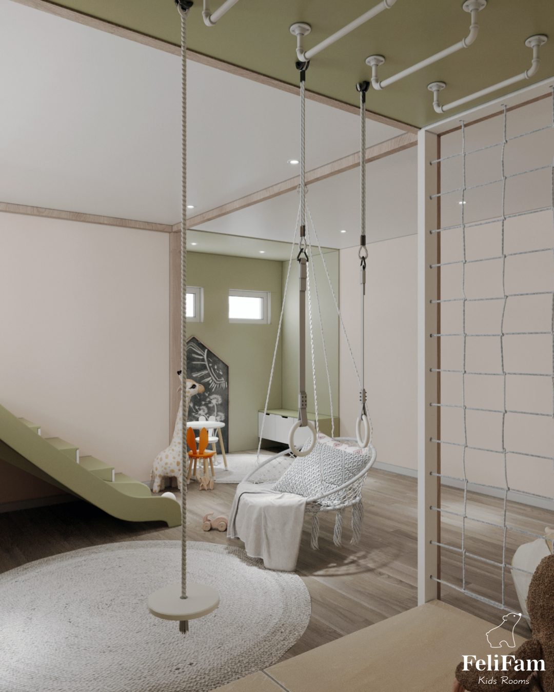 The content of the room will not leave any child indifferent, because there are both areas for active games and a zone for relaxation and privacy.