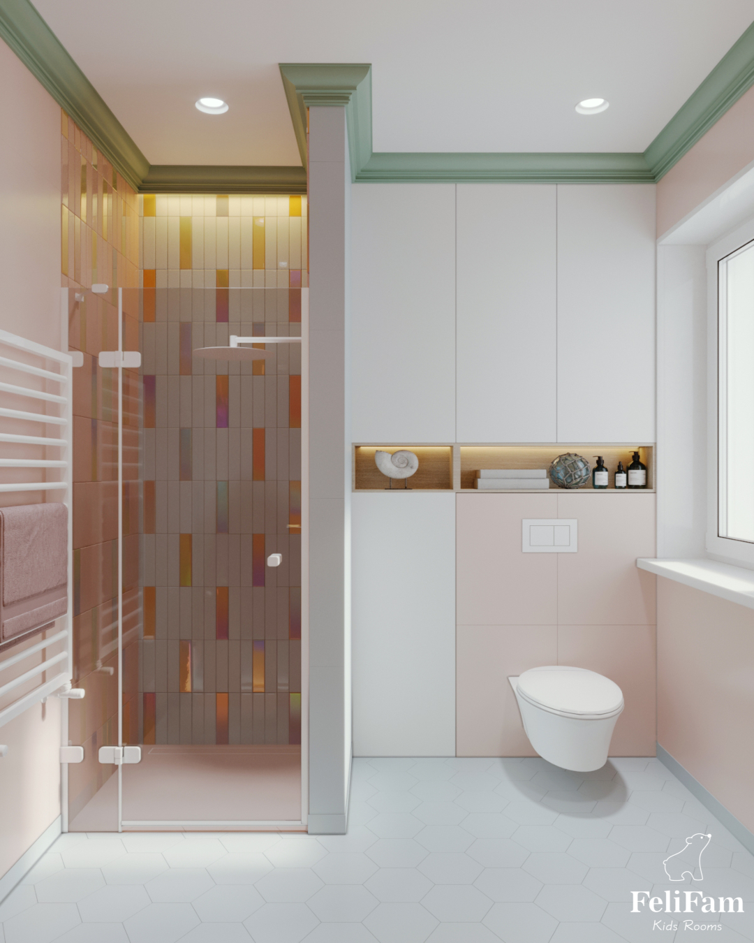 The delicate, charming, sophisticated interior of the bathroom will not leave you indifferent.