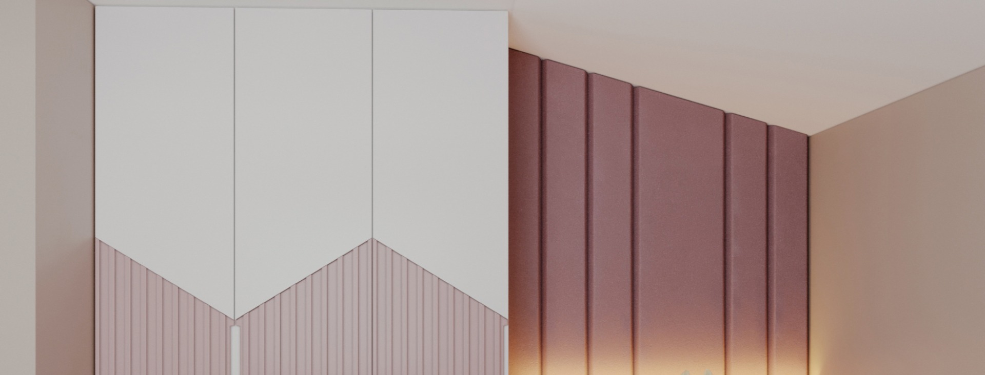 A small room in pale pink colors is diluted with a wallpaper print that adds personality and accent!
