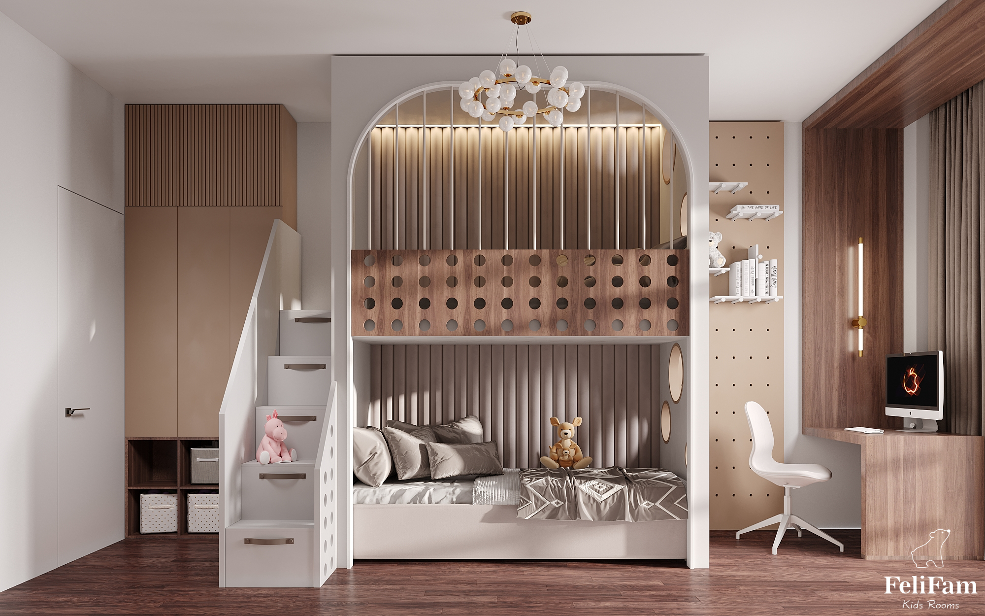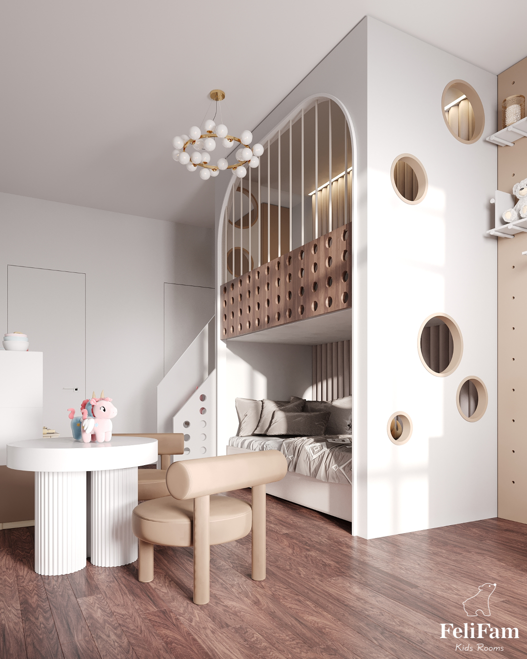 When a child’s room is small, parents often choose to decorate it with a bunk bed.