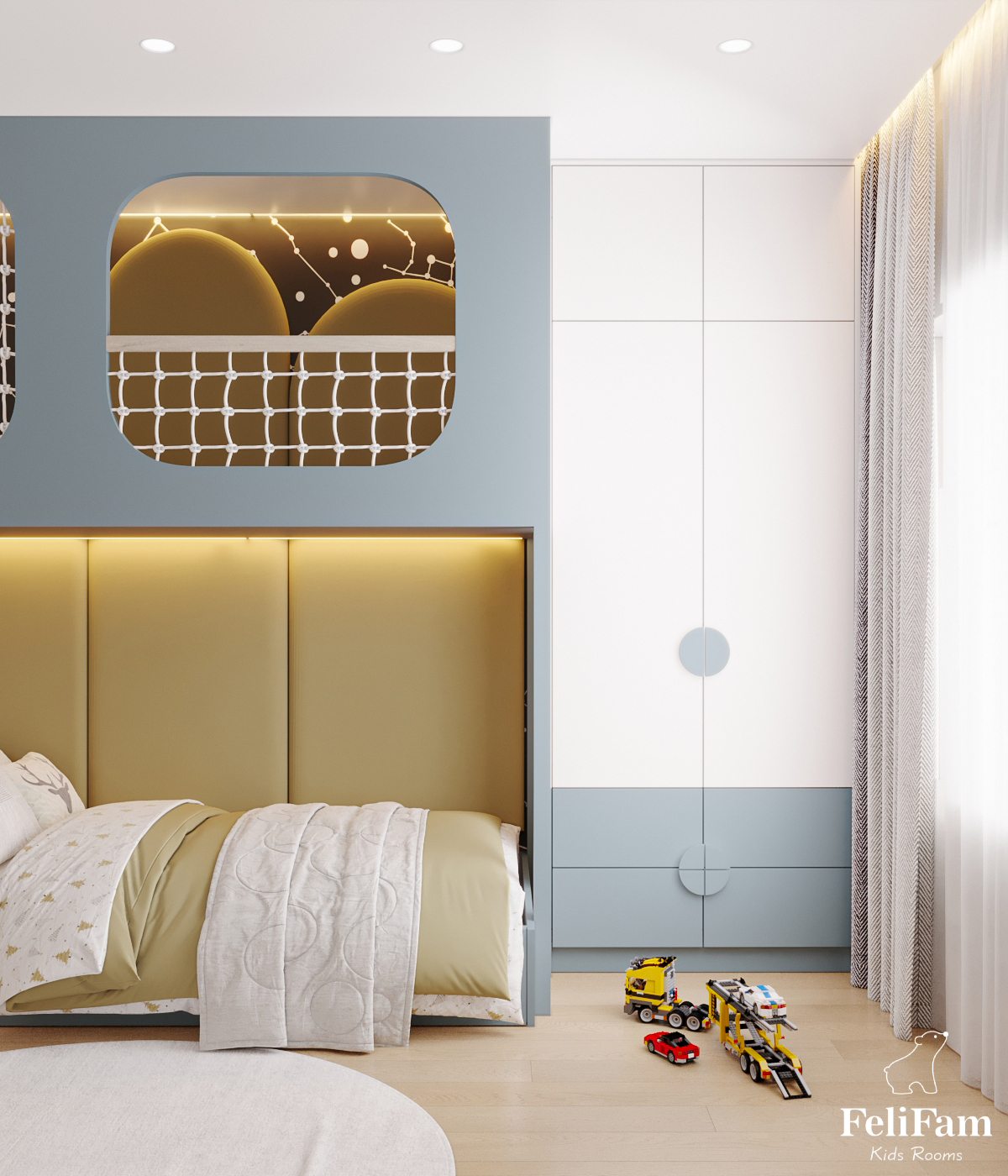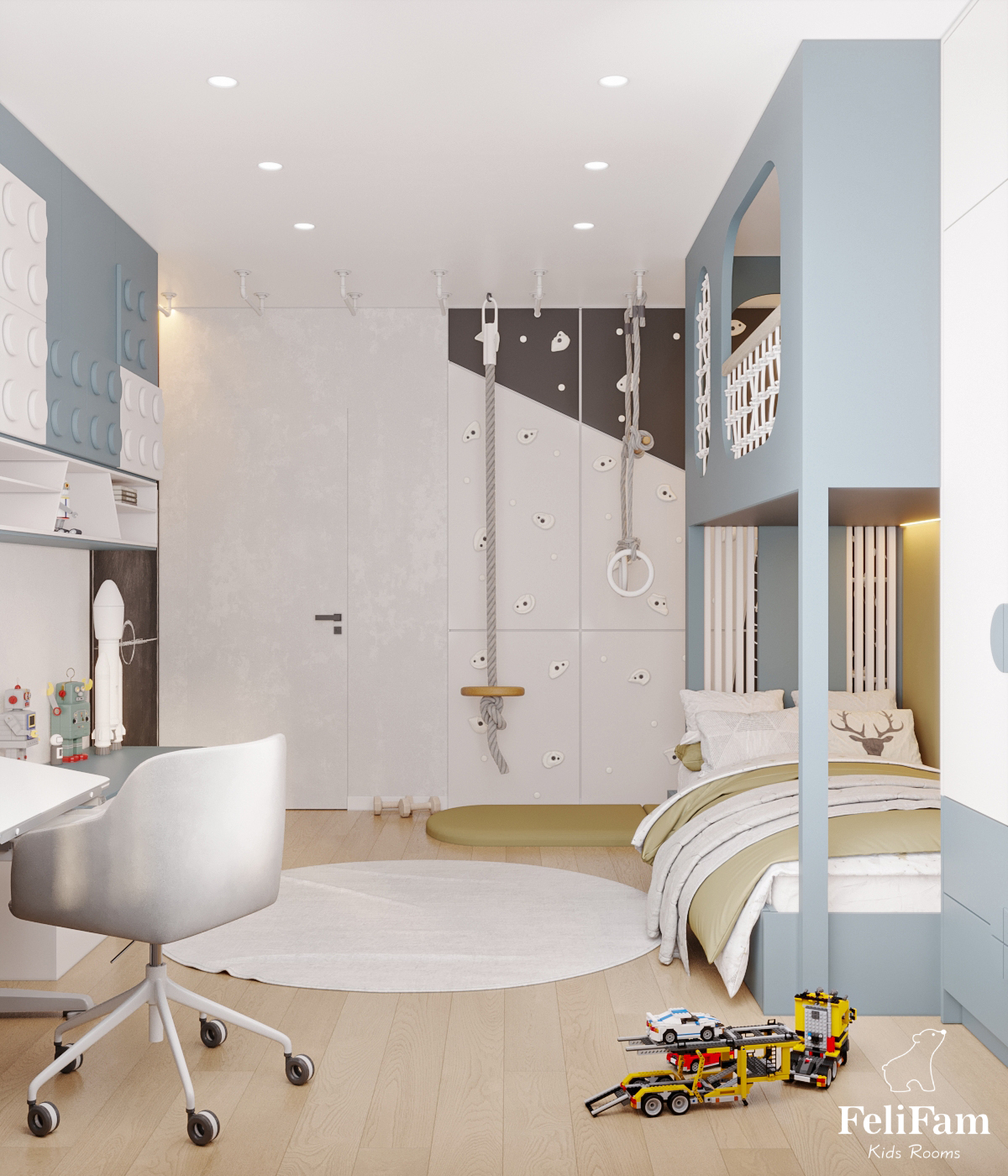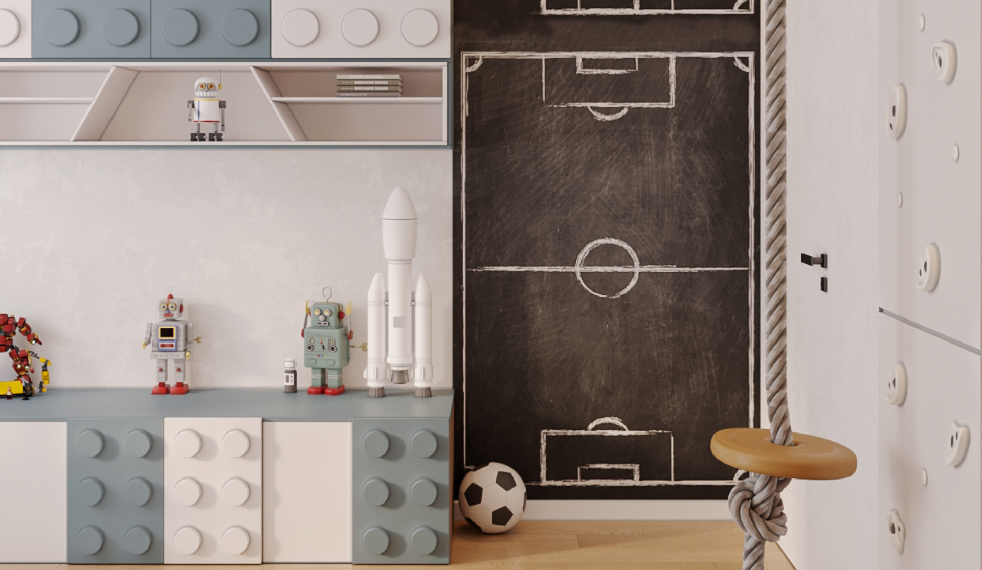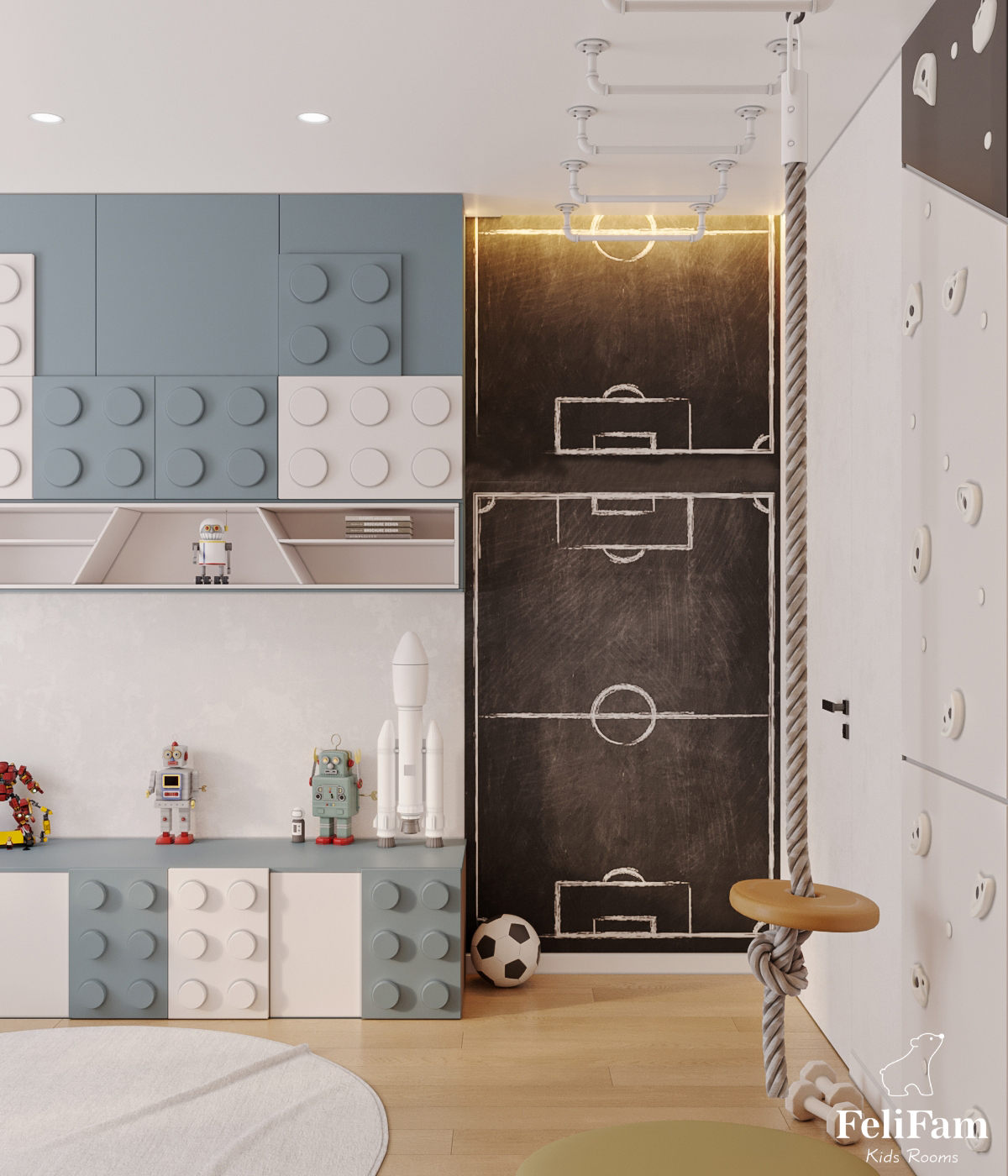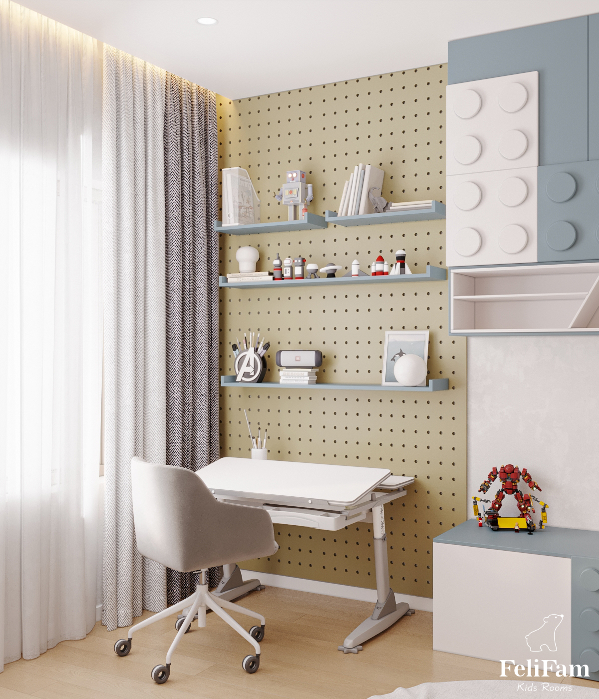 The young boy is fond of Lego, and we decided to apply this idea in his room, his space.