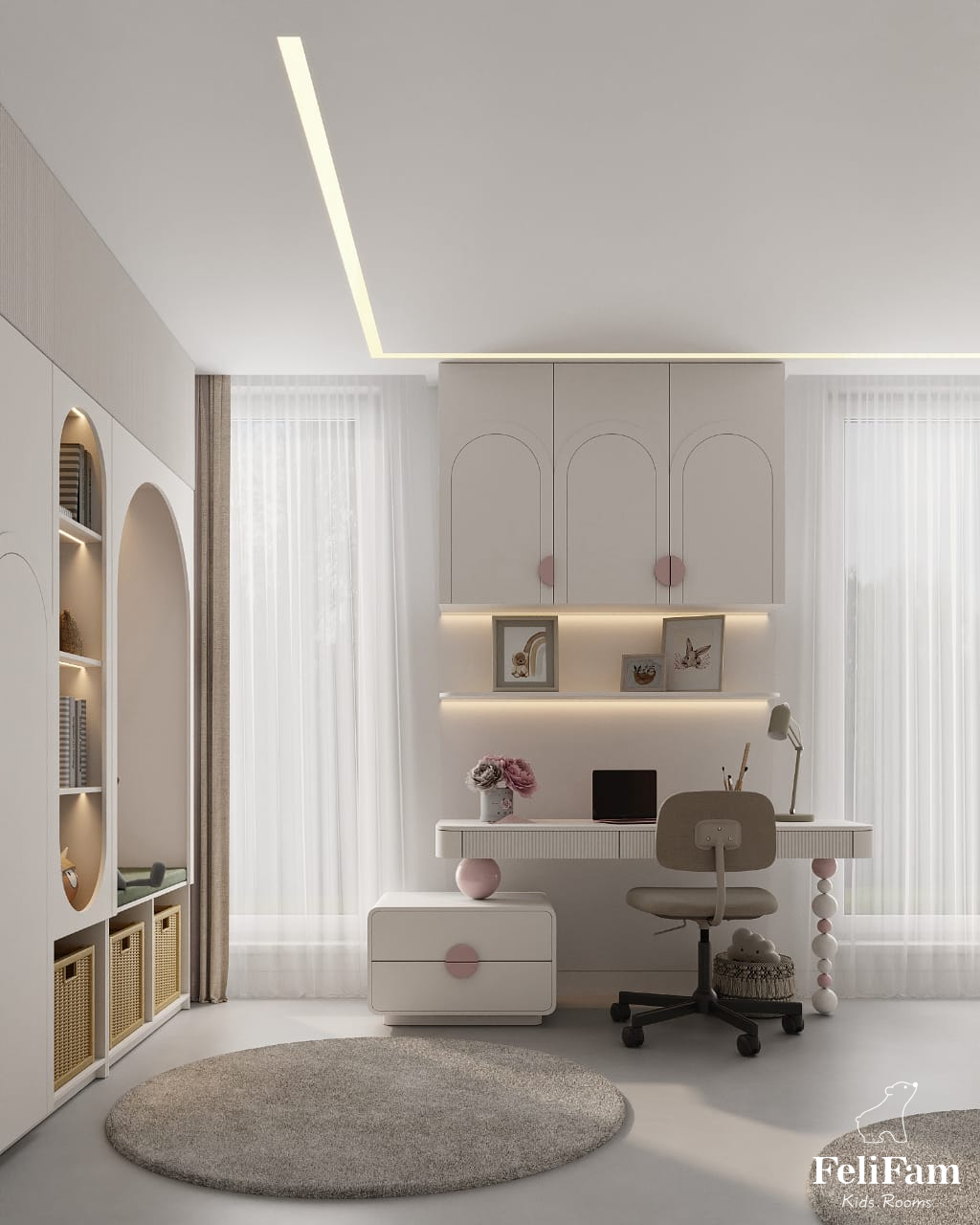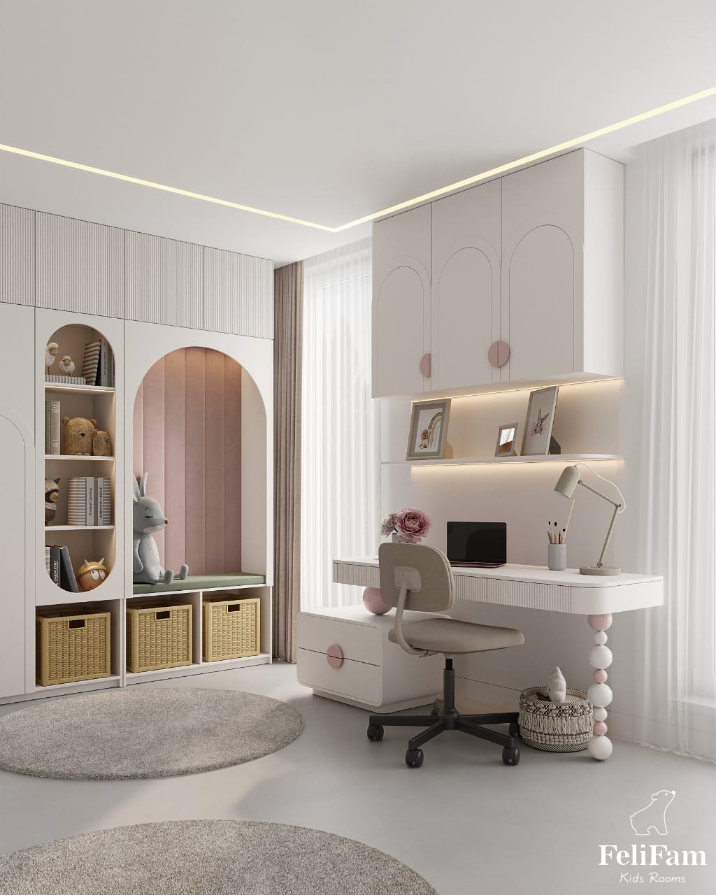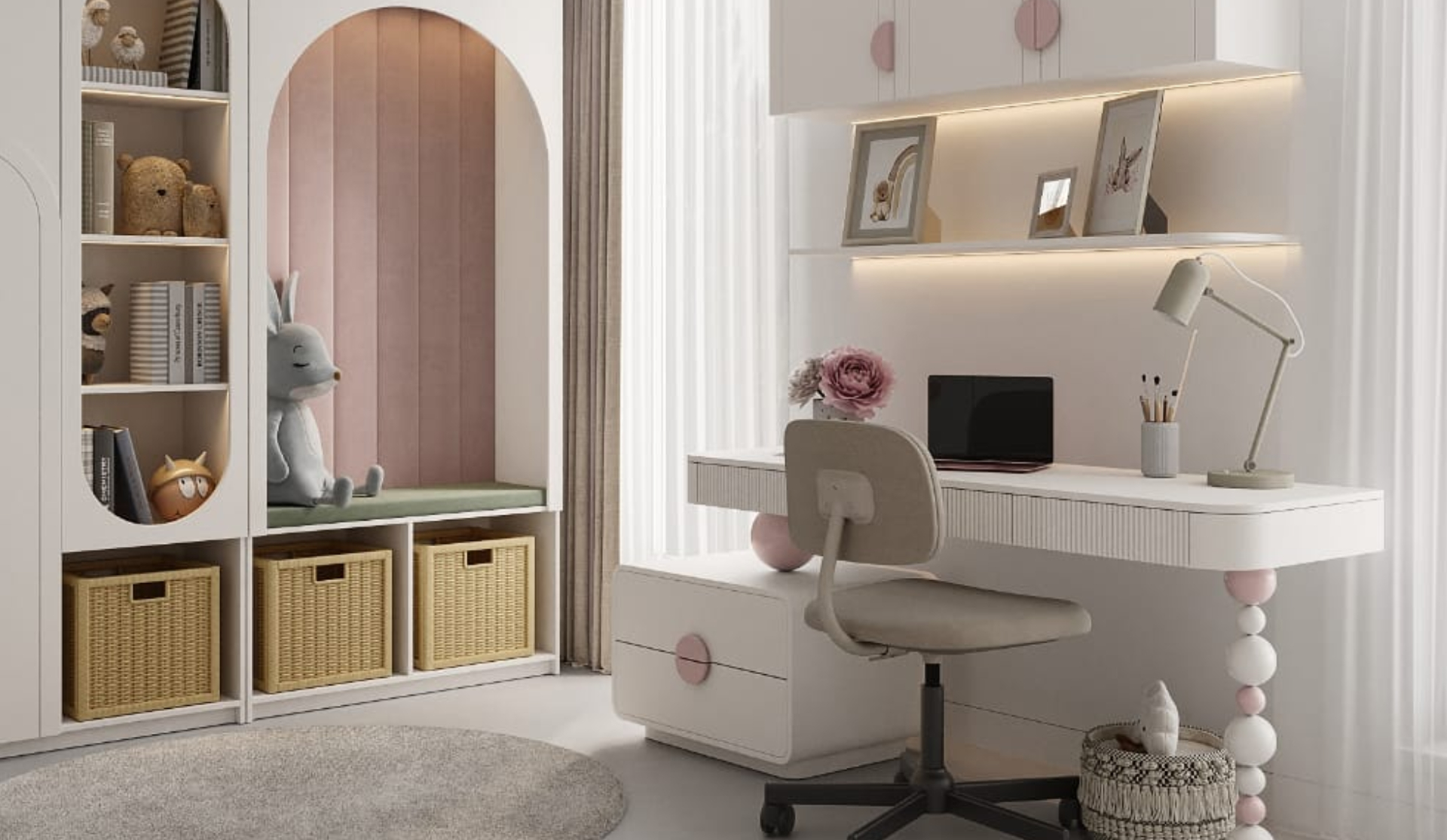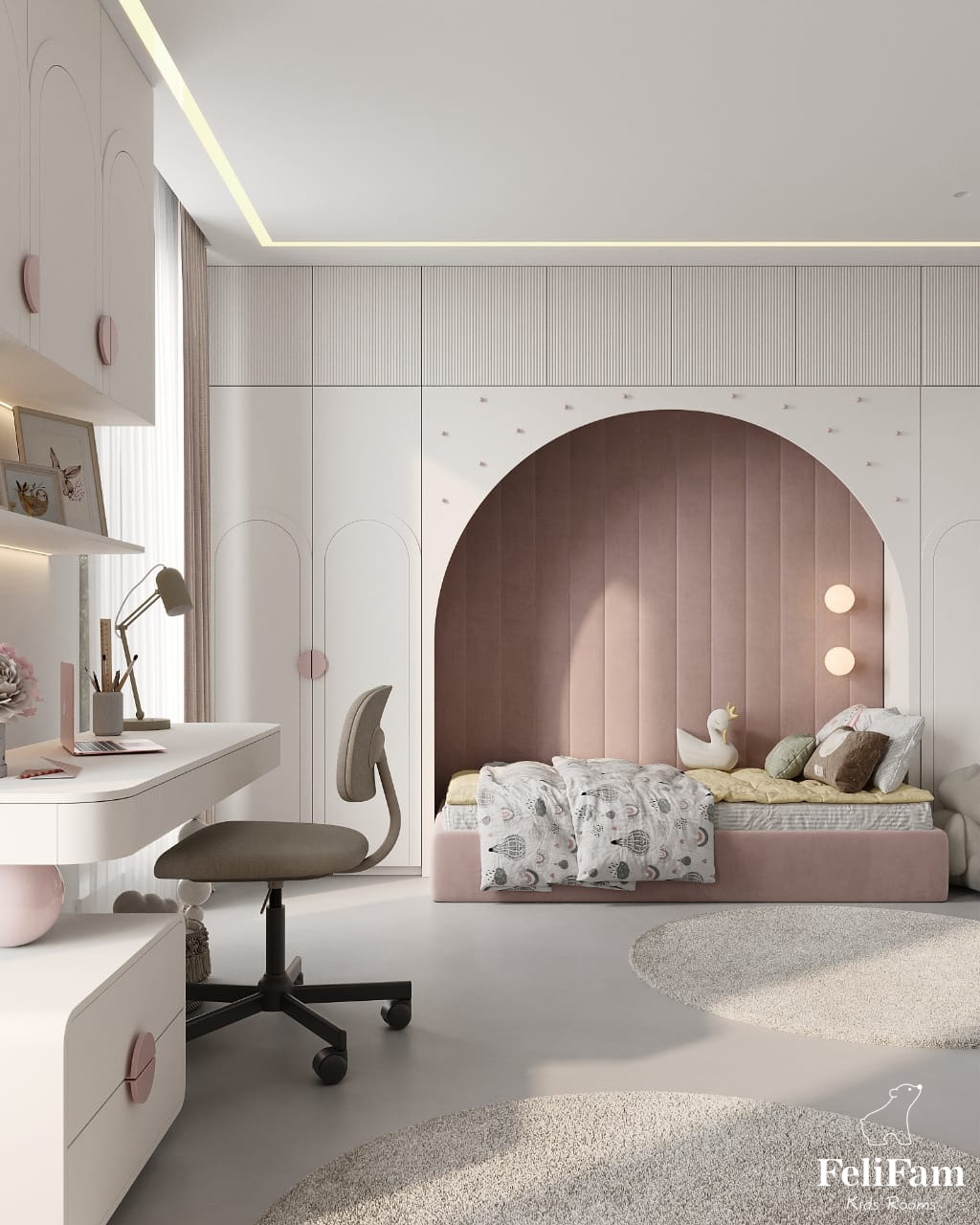 Arched shapes and pastel colors are what make the space harmonious and give a sense of calm and security.