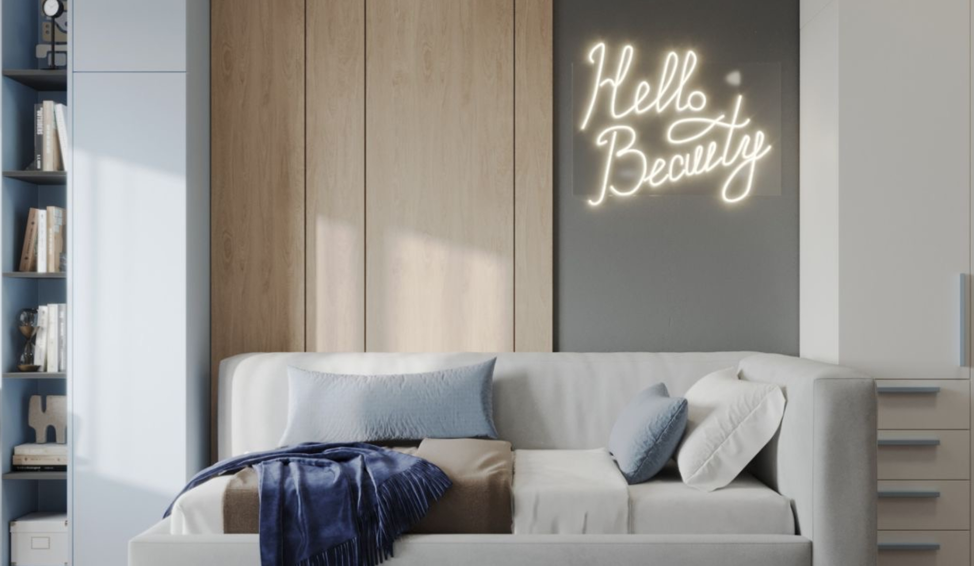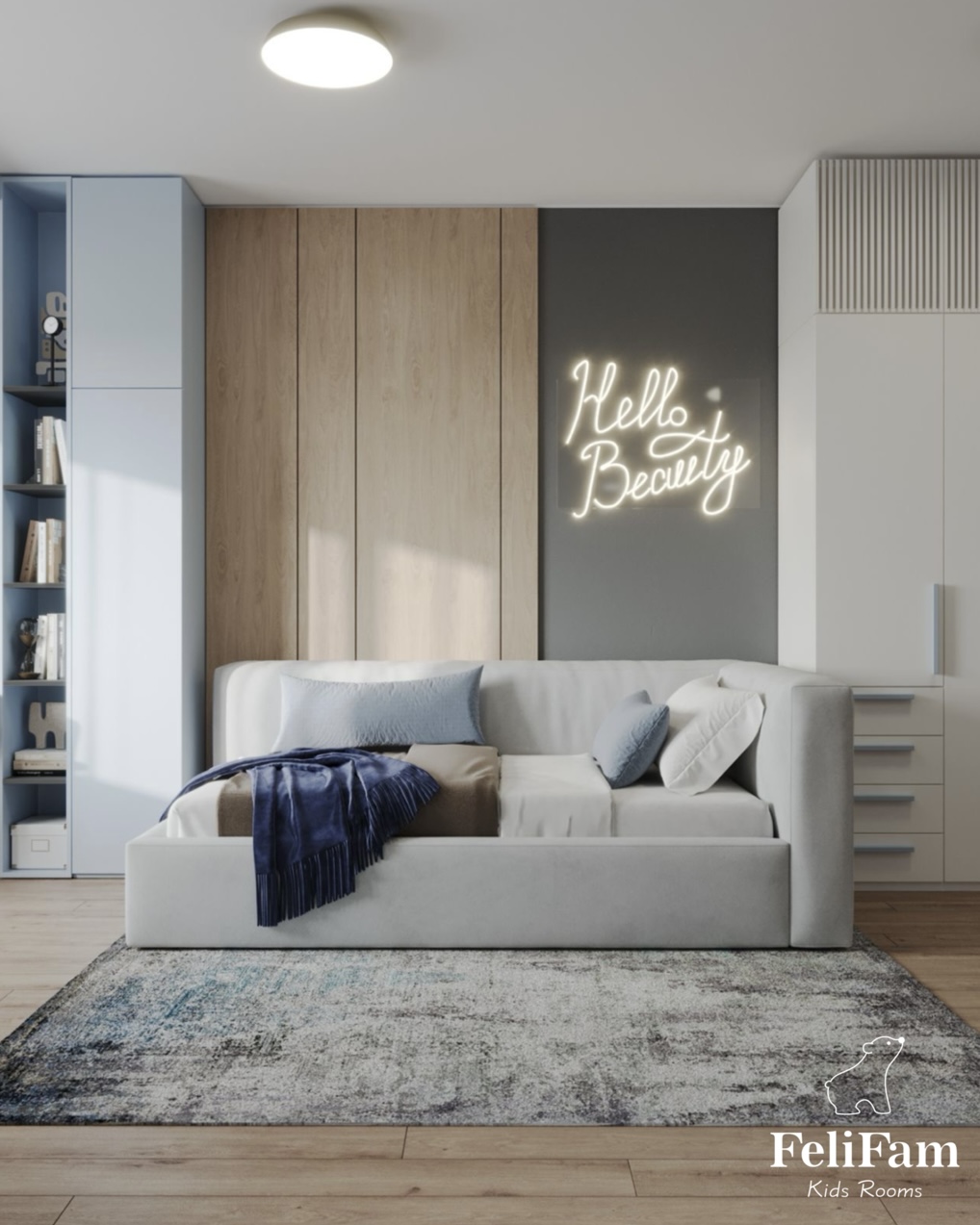 A space for a teenage girl with an accent blue hue.