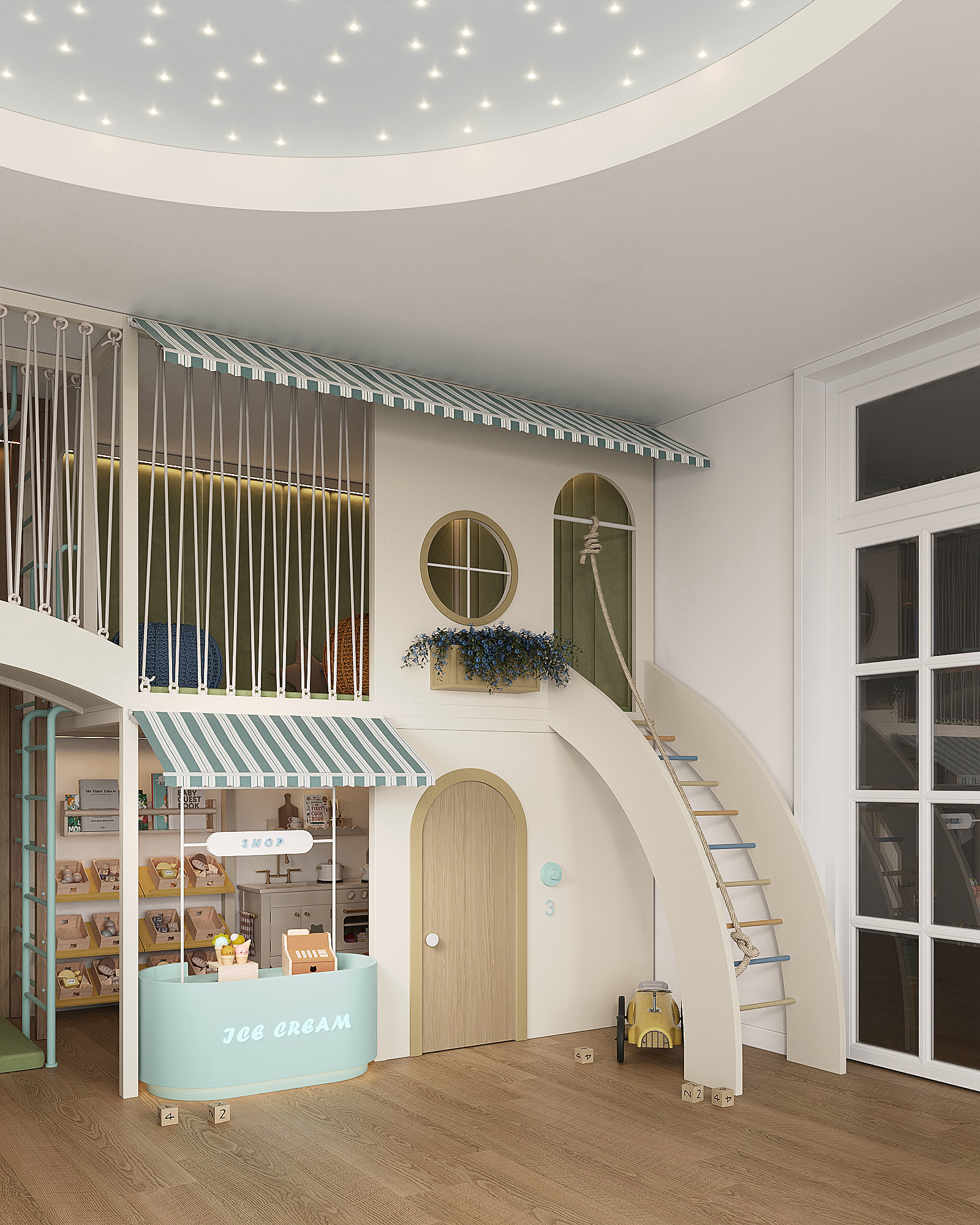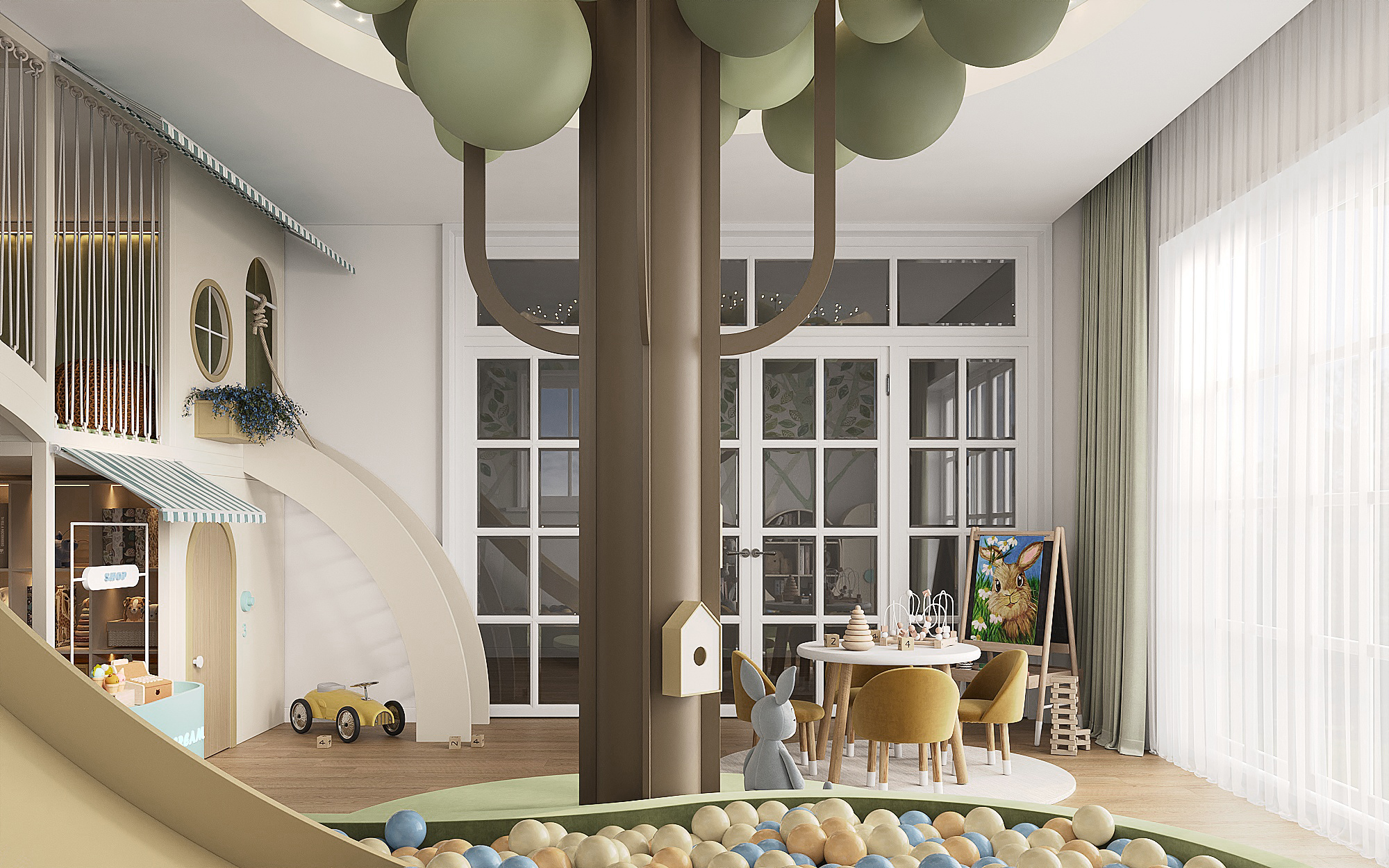 A wonderful space designed for Mels, who is nearly 4 years old. He enjoys reading books, playing restaurant and pretending to sell things with friends, as well as singing, making music, playing hide-and-seek, and enjoying the slide and swing.