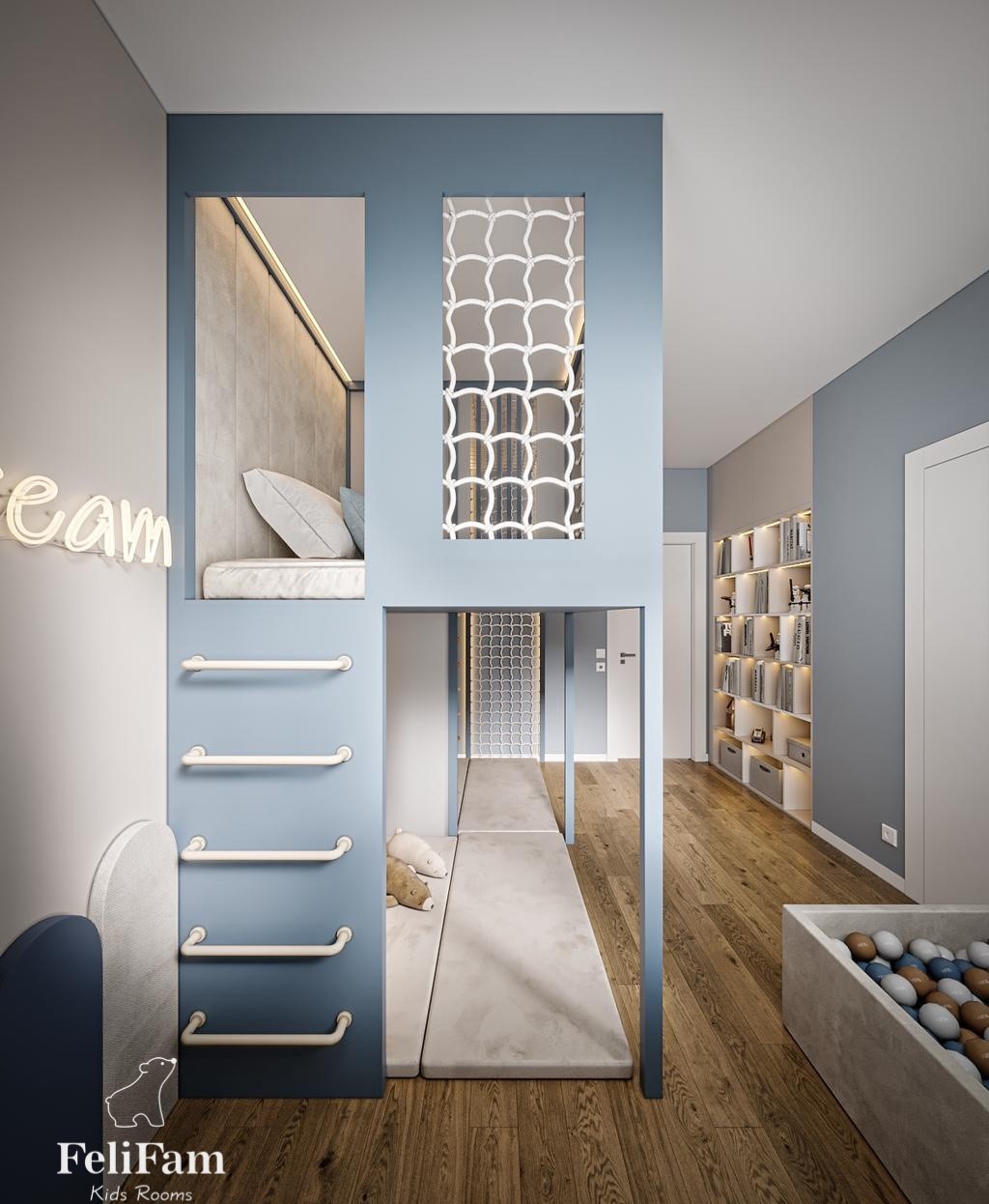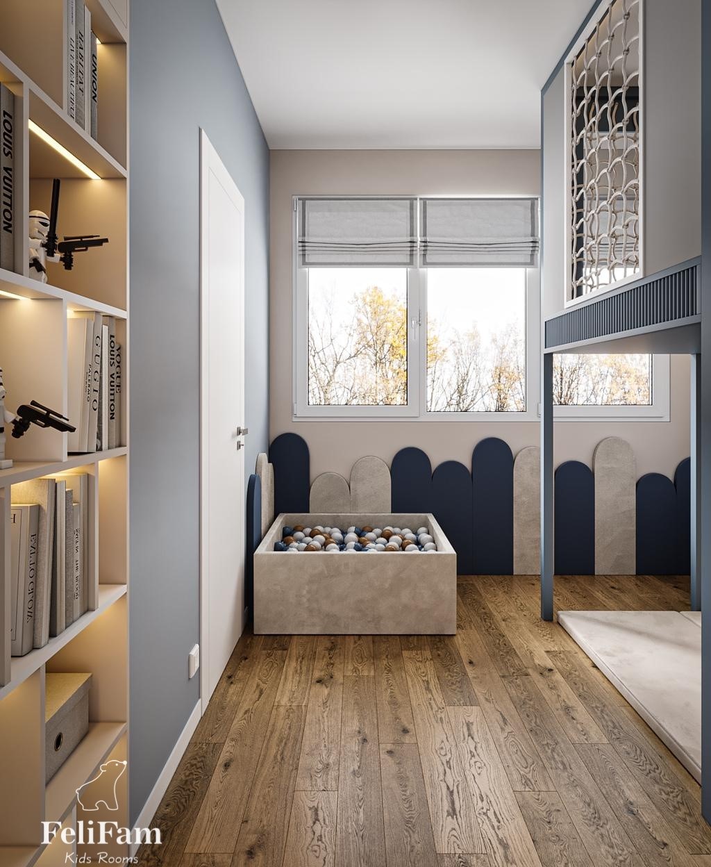 This is a spacious and comfortable room for games, because the boy’s sleeping place is separate.