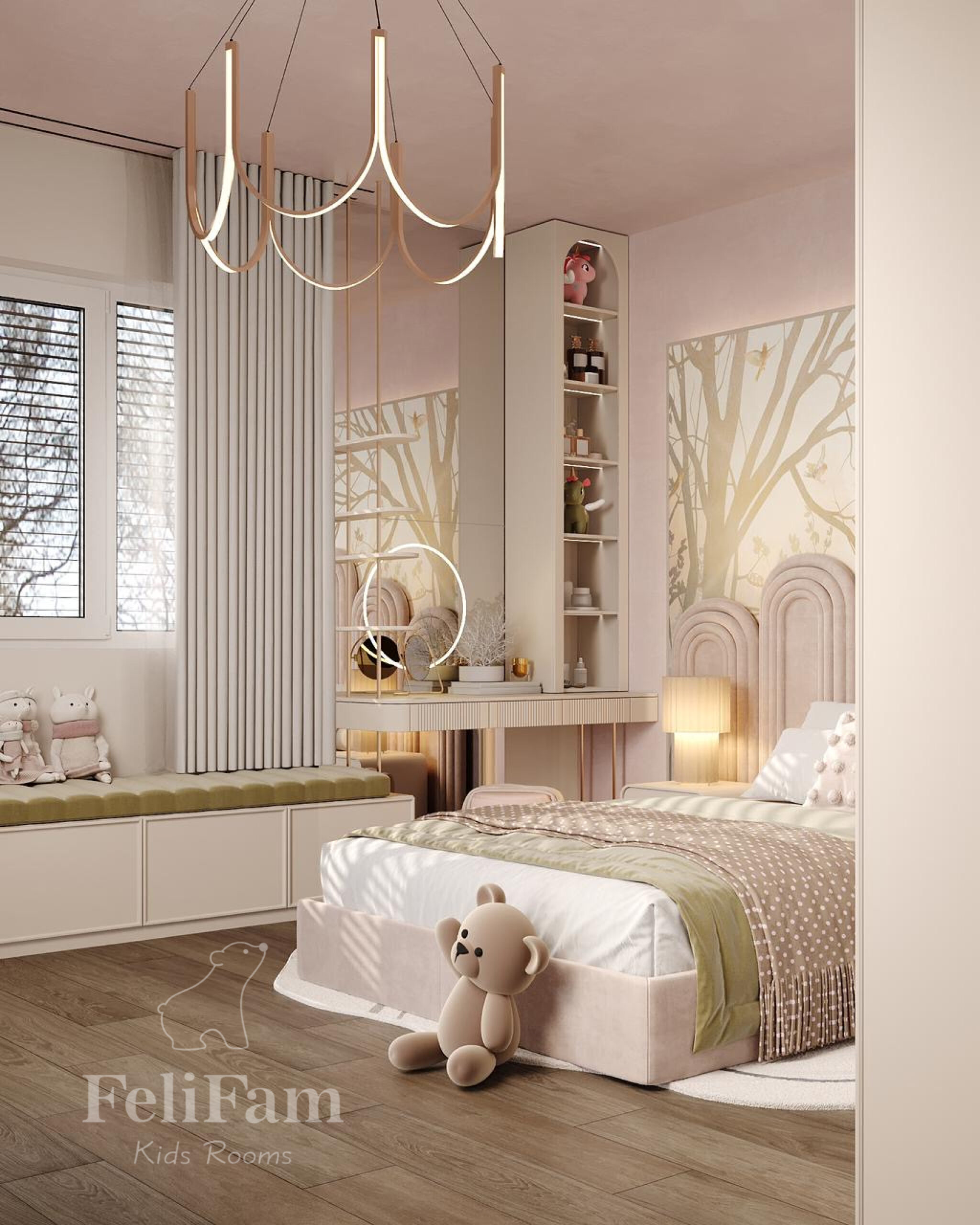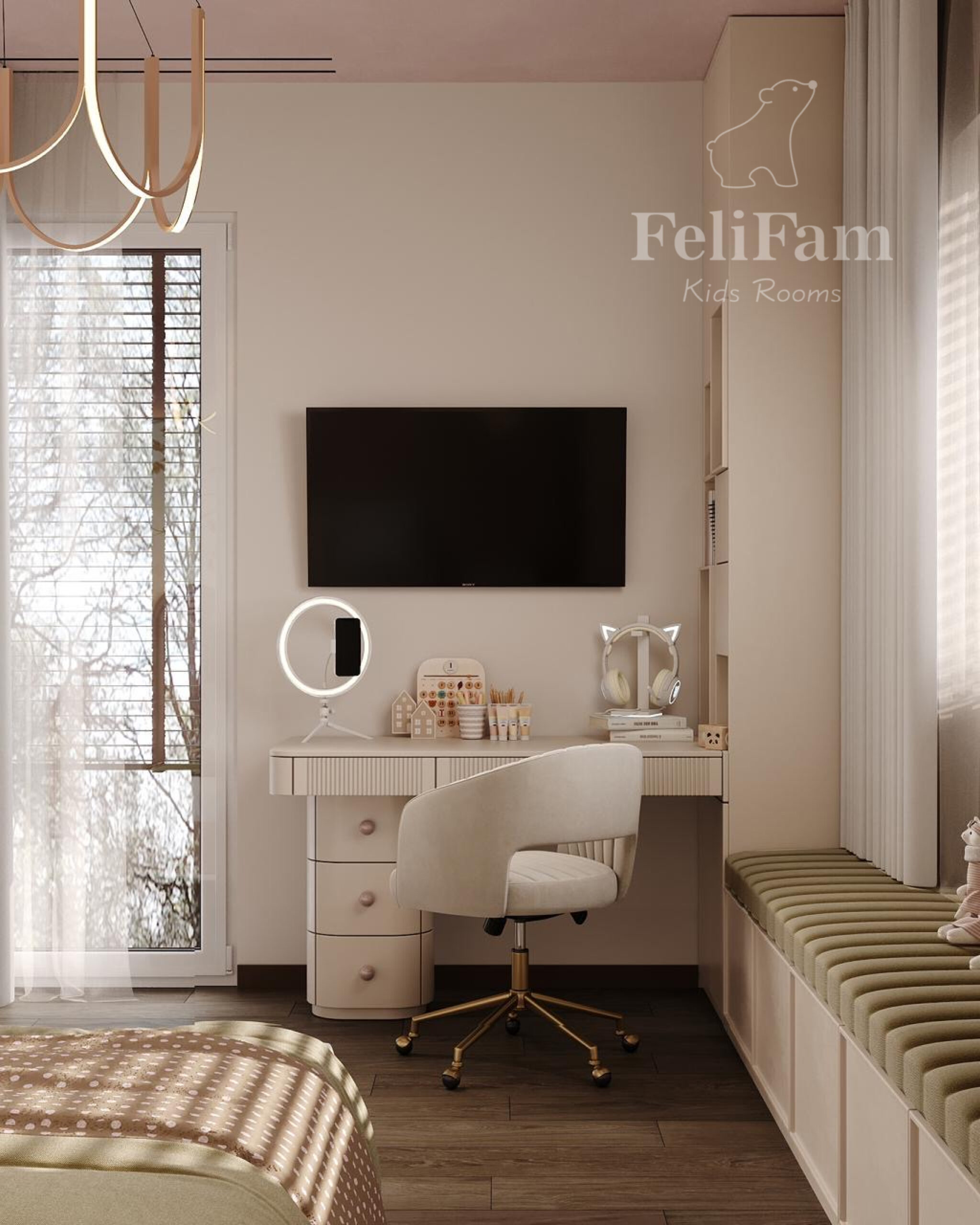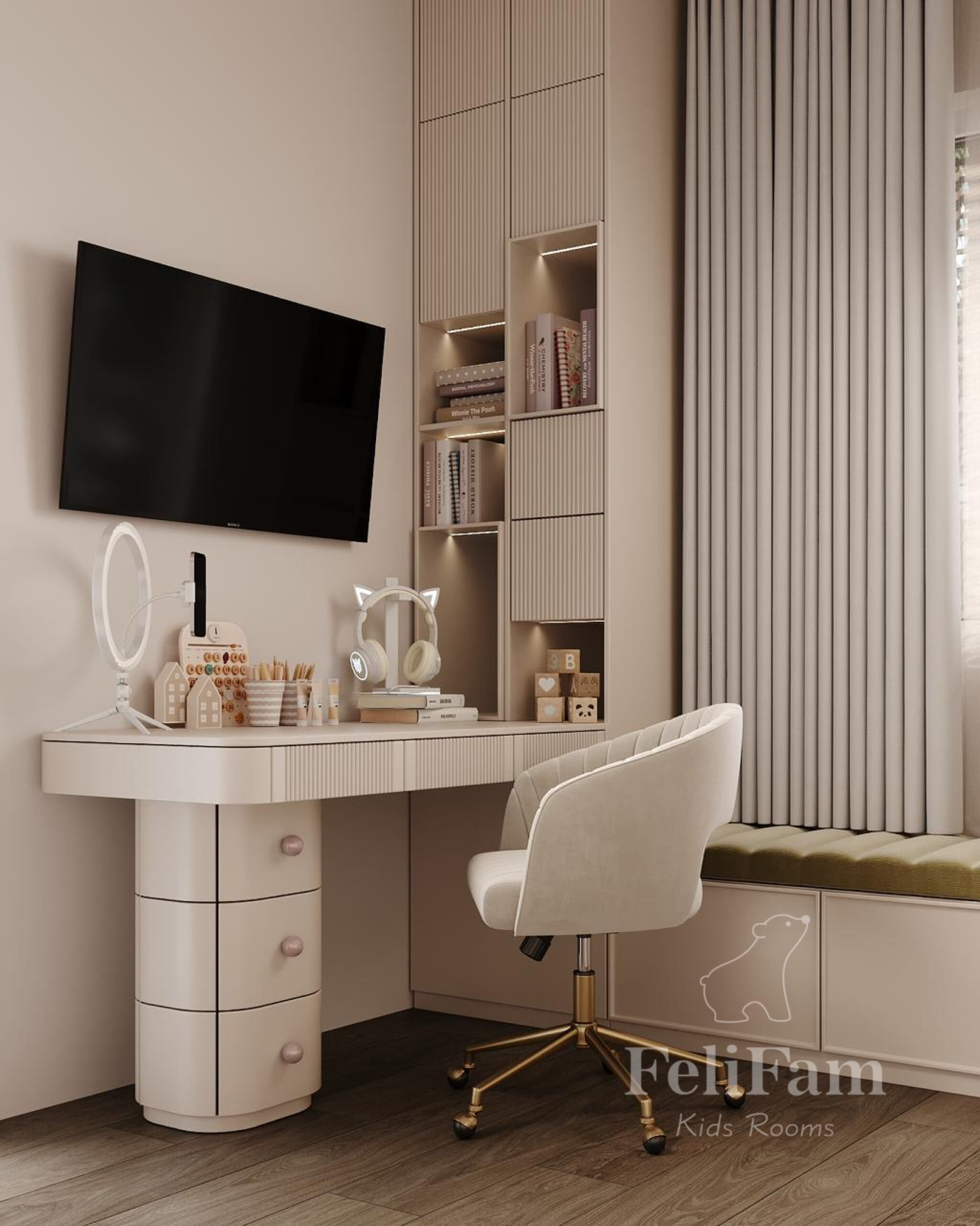 A large bed is more than just a place to sleep. It will become a comfortable area for sleeping, relaxing and even playing. In addition, a spacious wardrobe will keep all things in order, and a well-thought-out study area will help your child organize their activities.