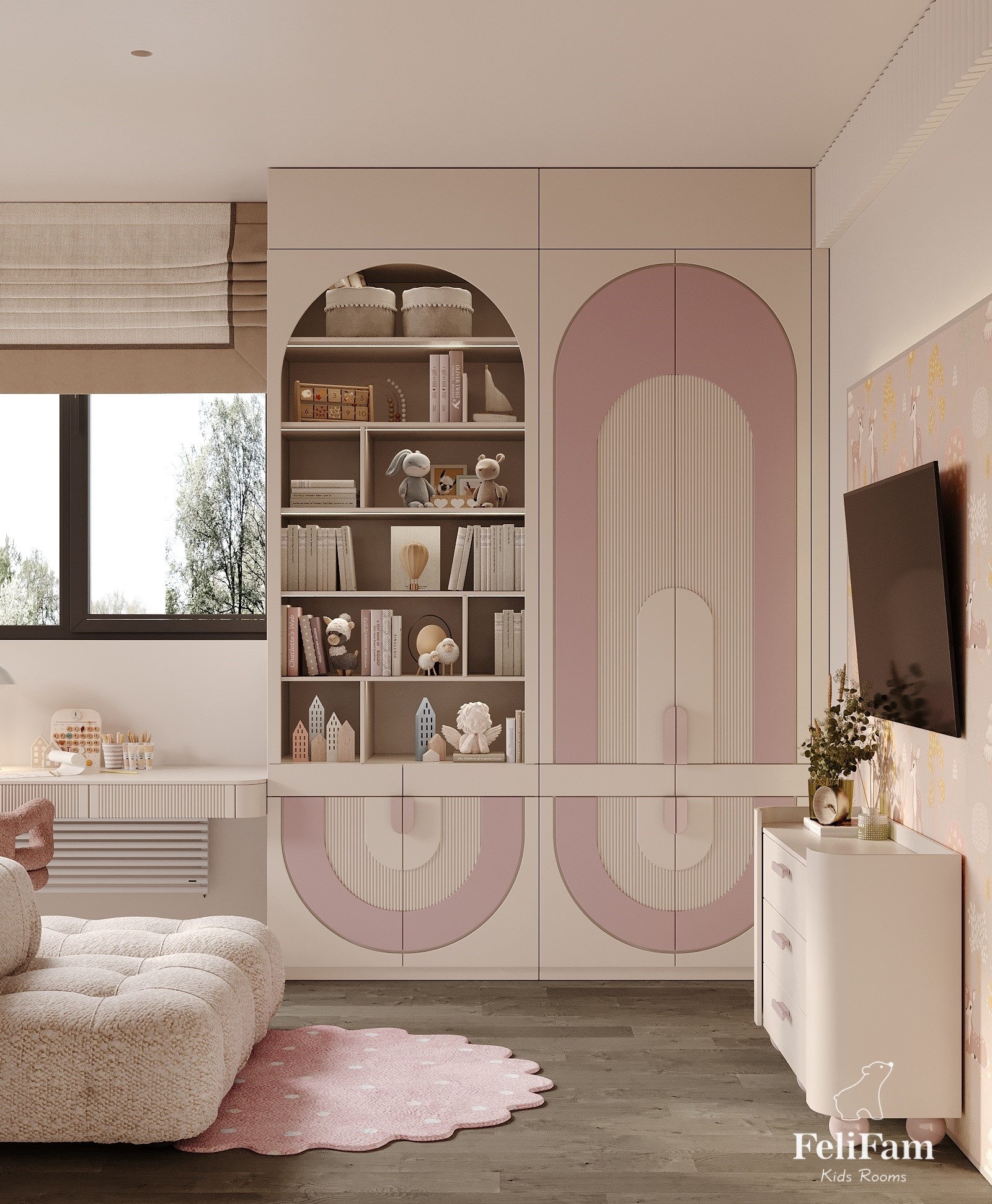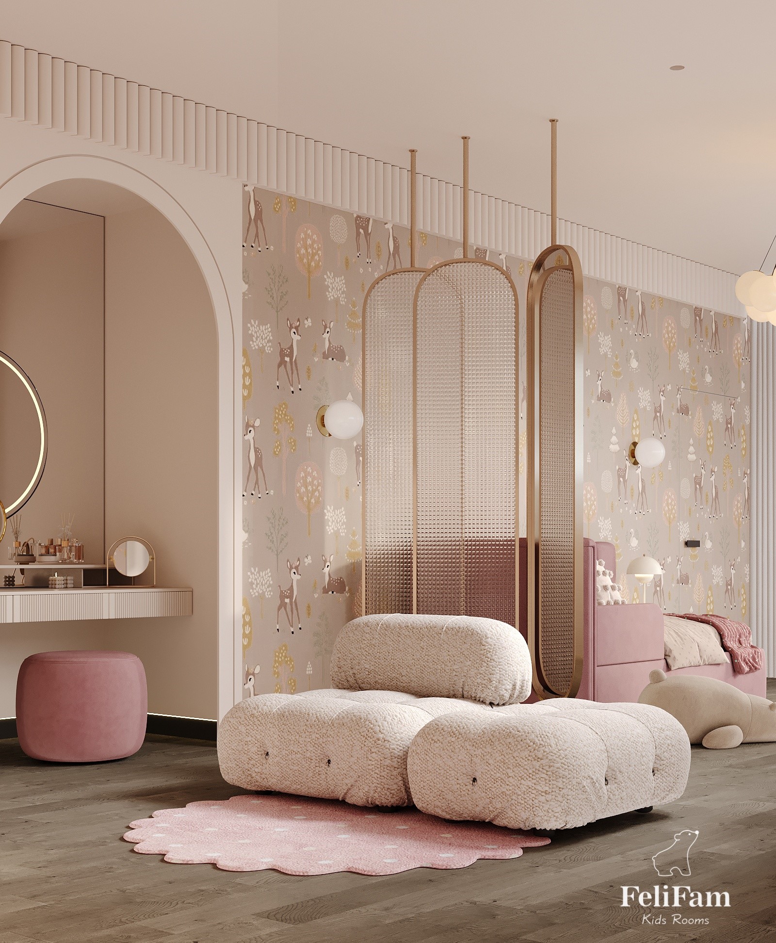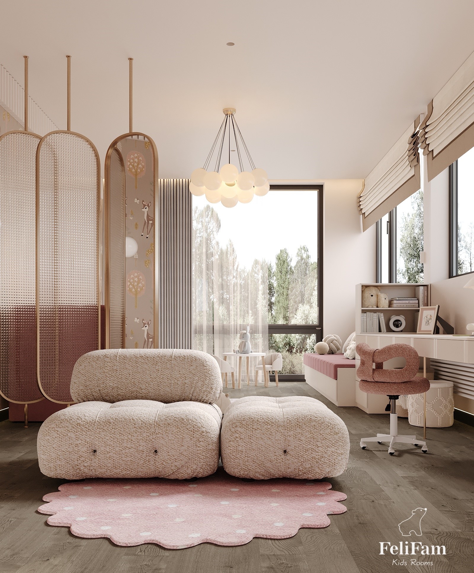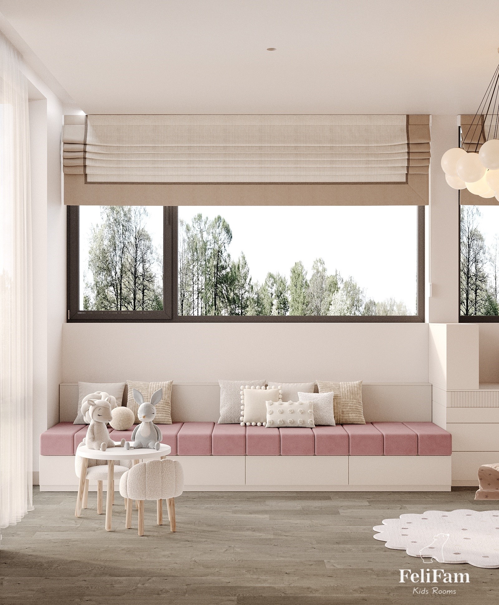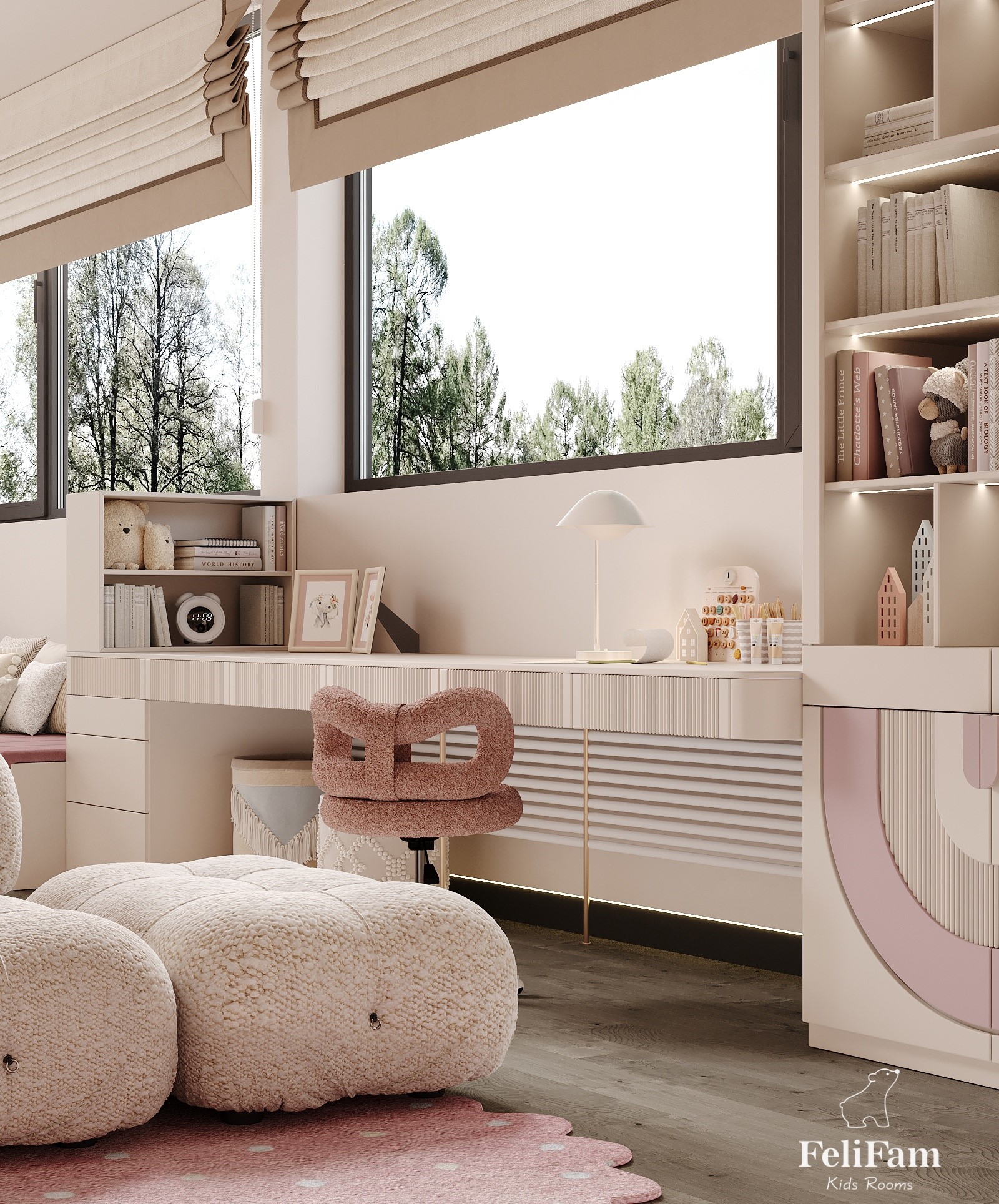 Delicate pastel colors create a special coziness and atmosphere. Zoning for study, rest and games helps to organize the space with benefit. And if the area allows, do not forget to place a makeup area, a comfortable sofa and a place to watch TV, as in this project.