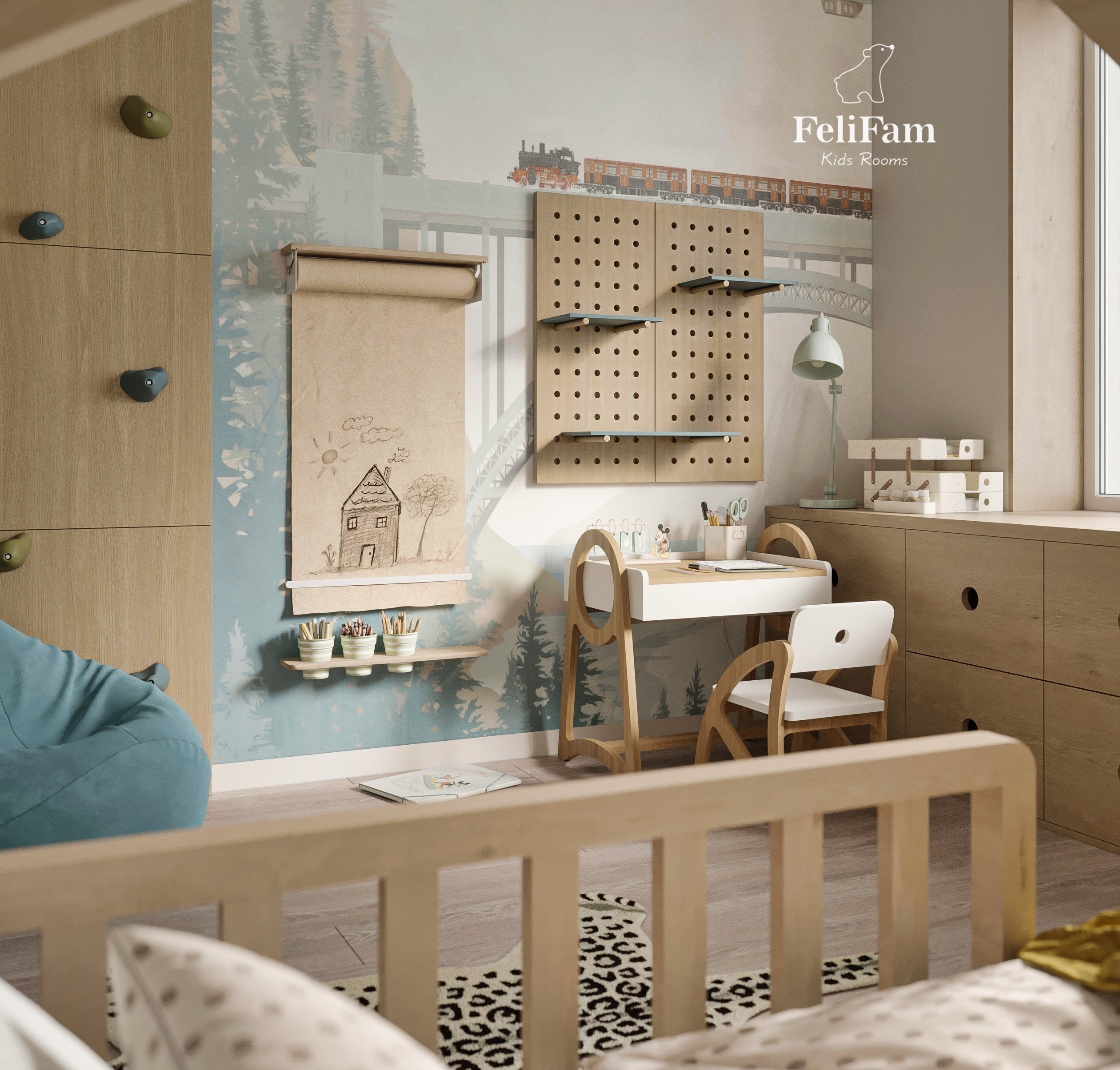 This room is a combination of the beauty of nature and safety for the little ones, where every detail contributes to the creation of harmony and development.