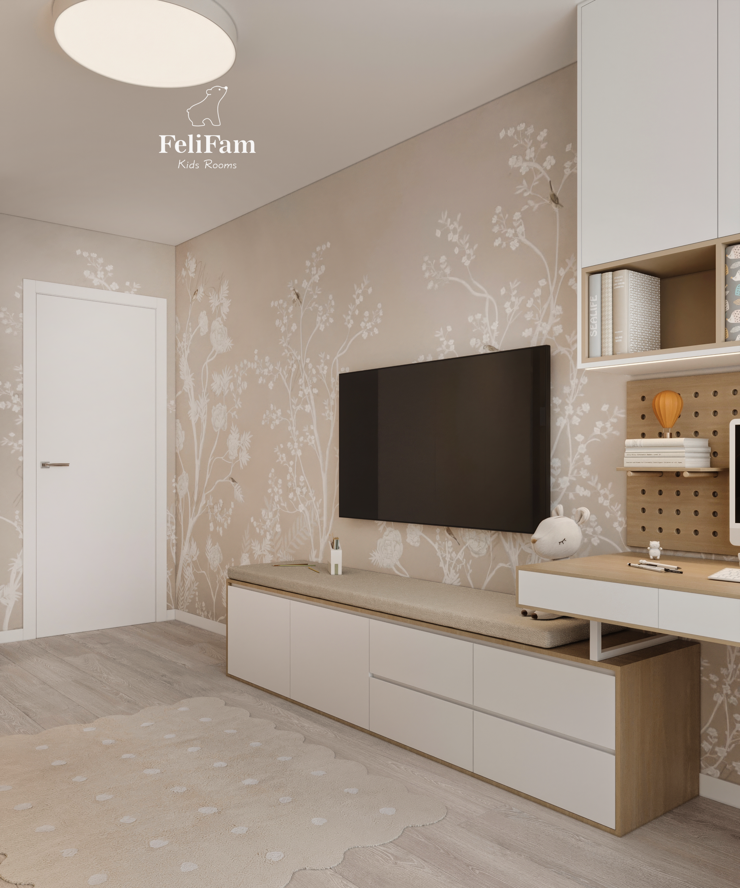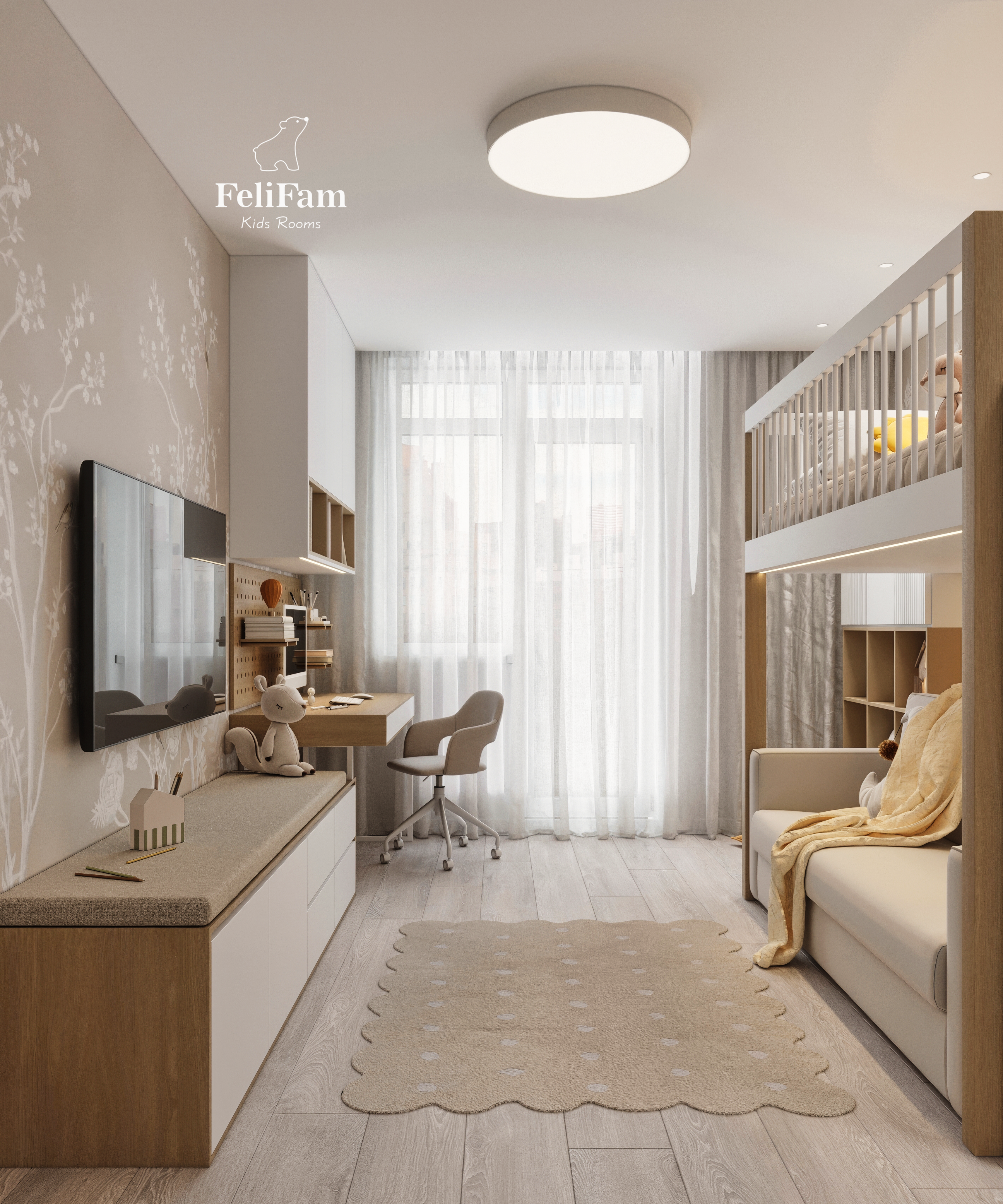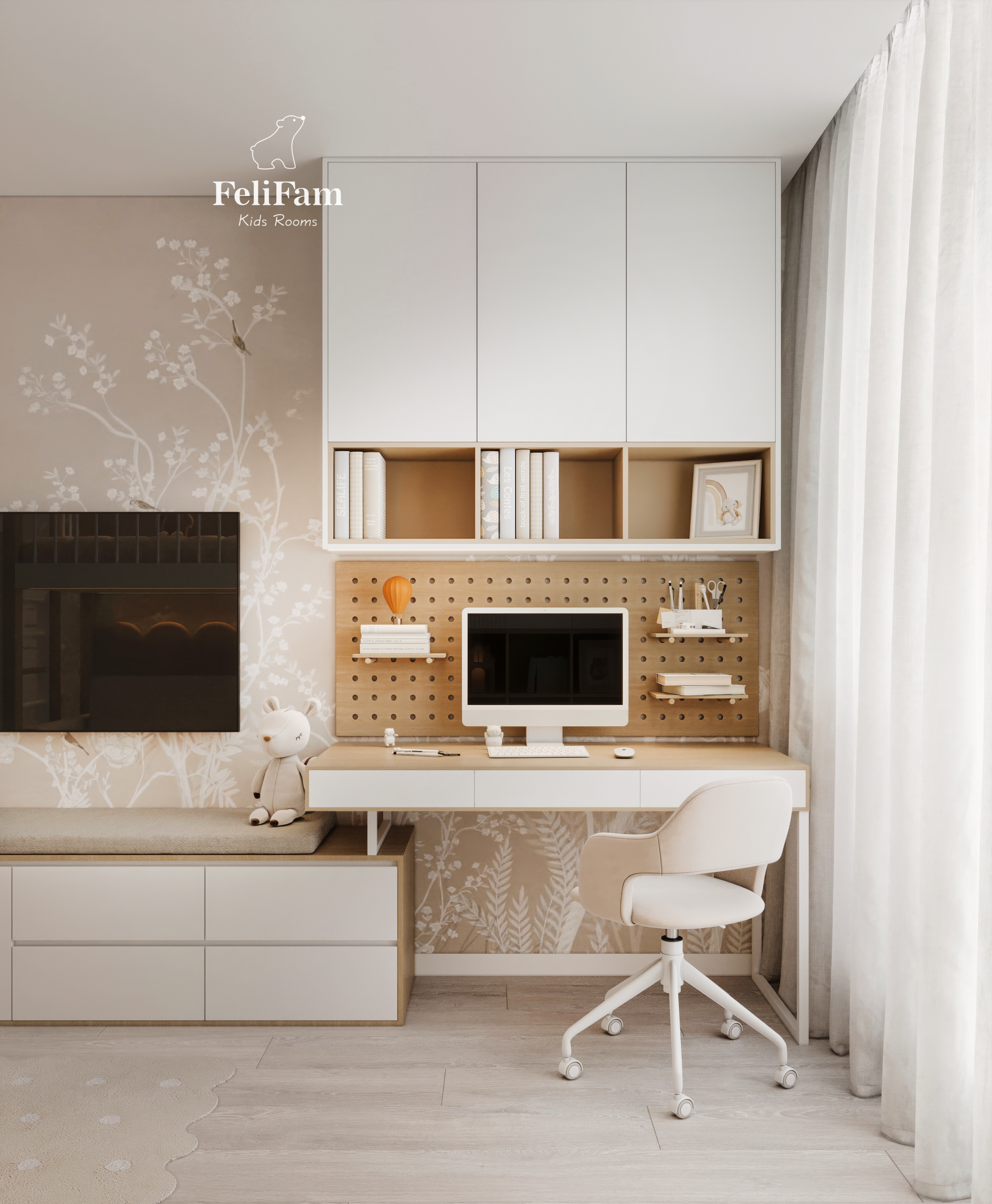 Neutral pastel shades, quality furniture and universal design are an investment in comfort and development. Such a room will become a favorite place for relaxation, learning and inspiration!