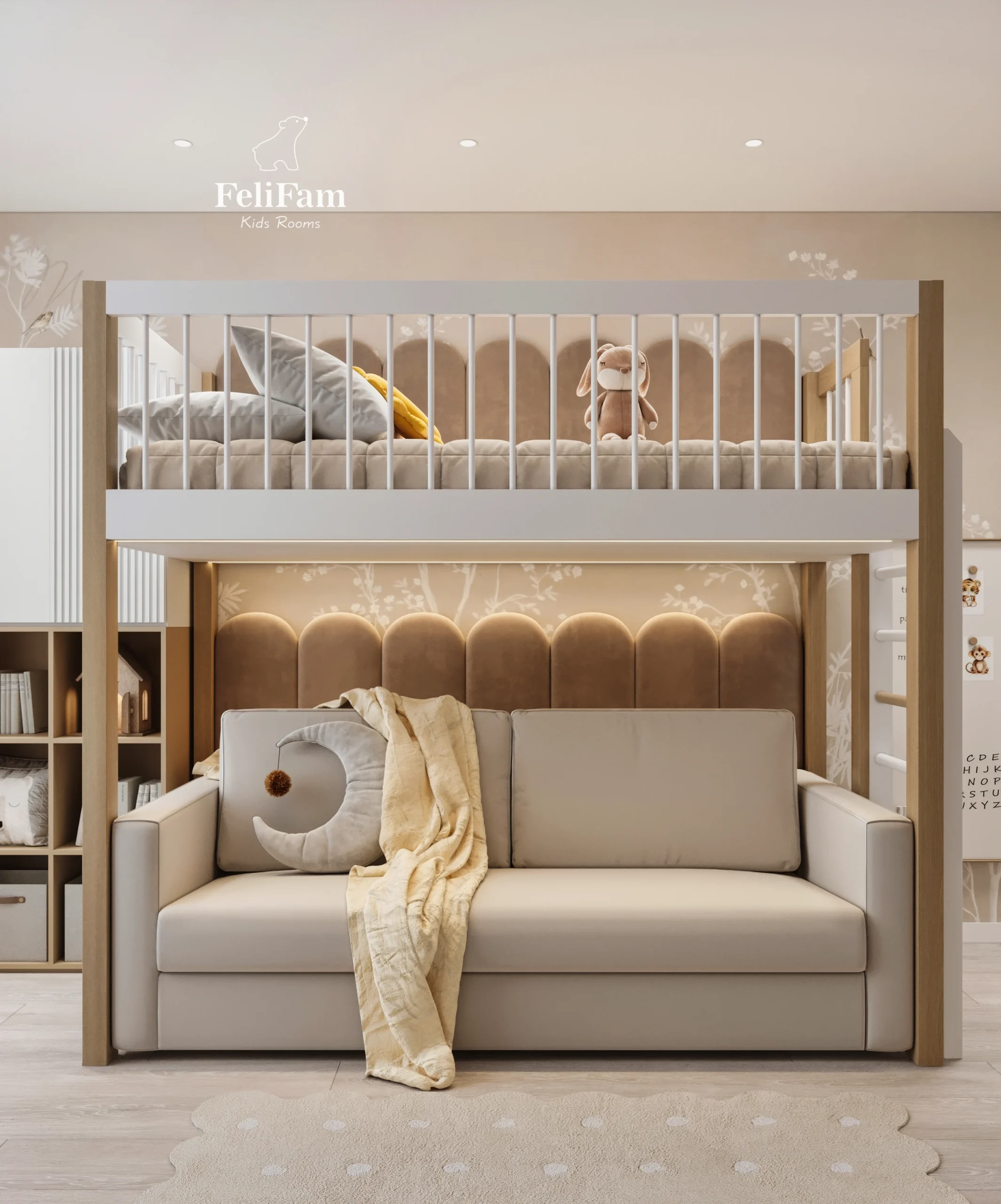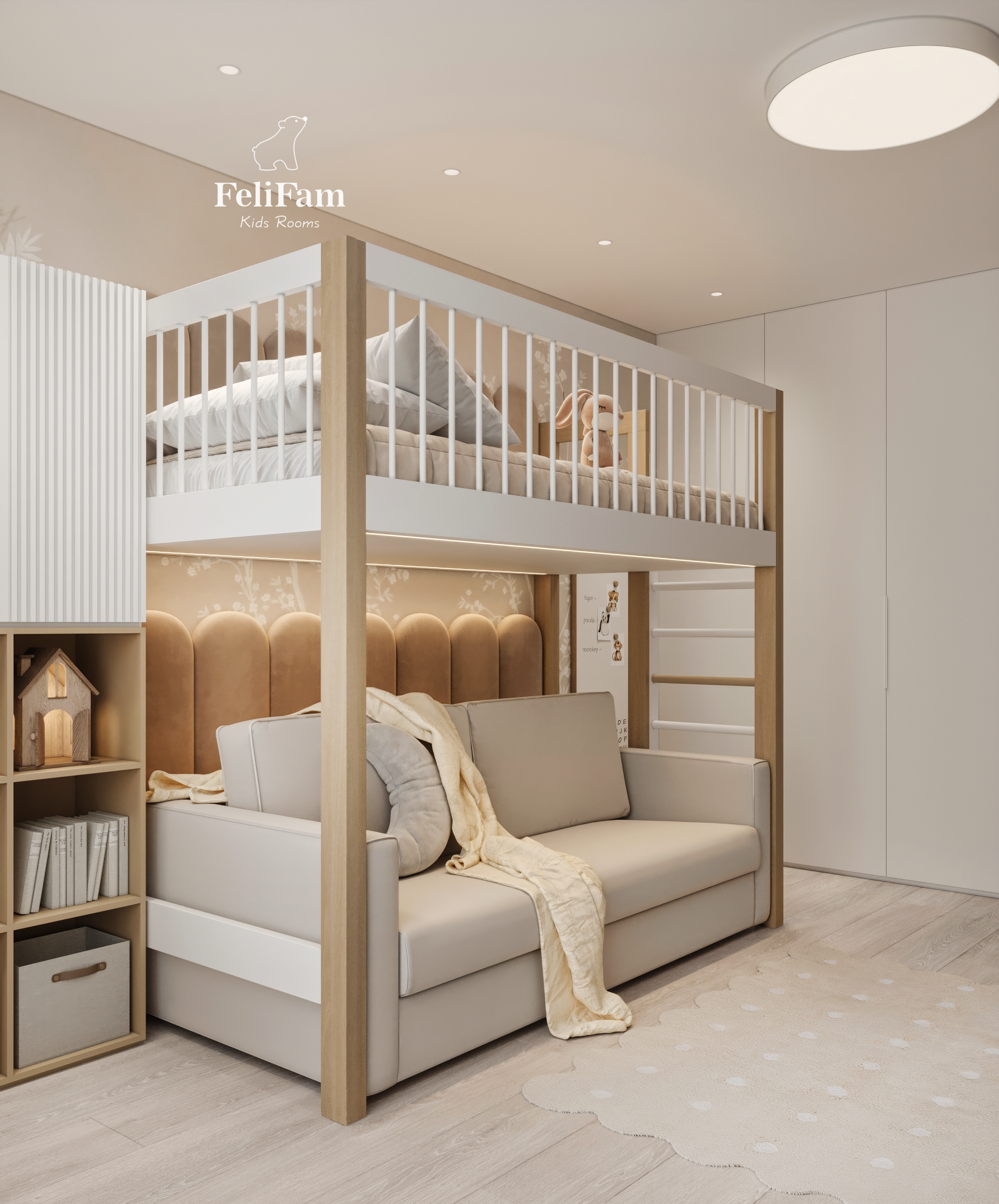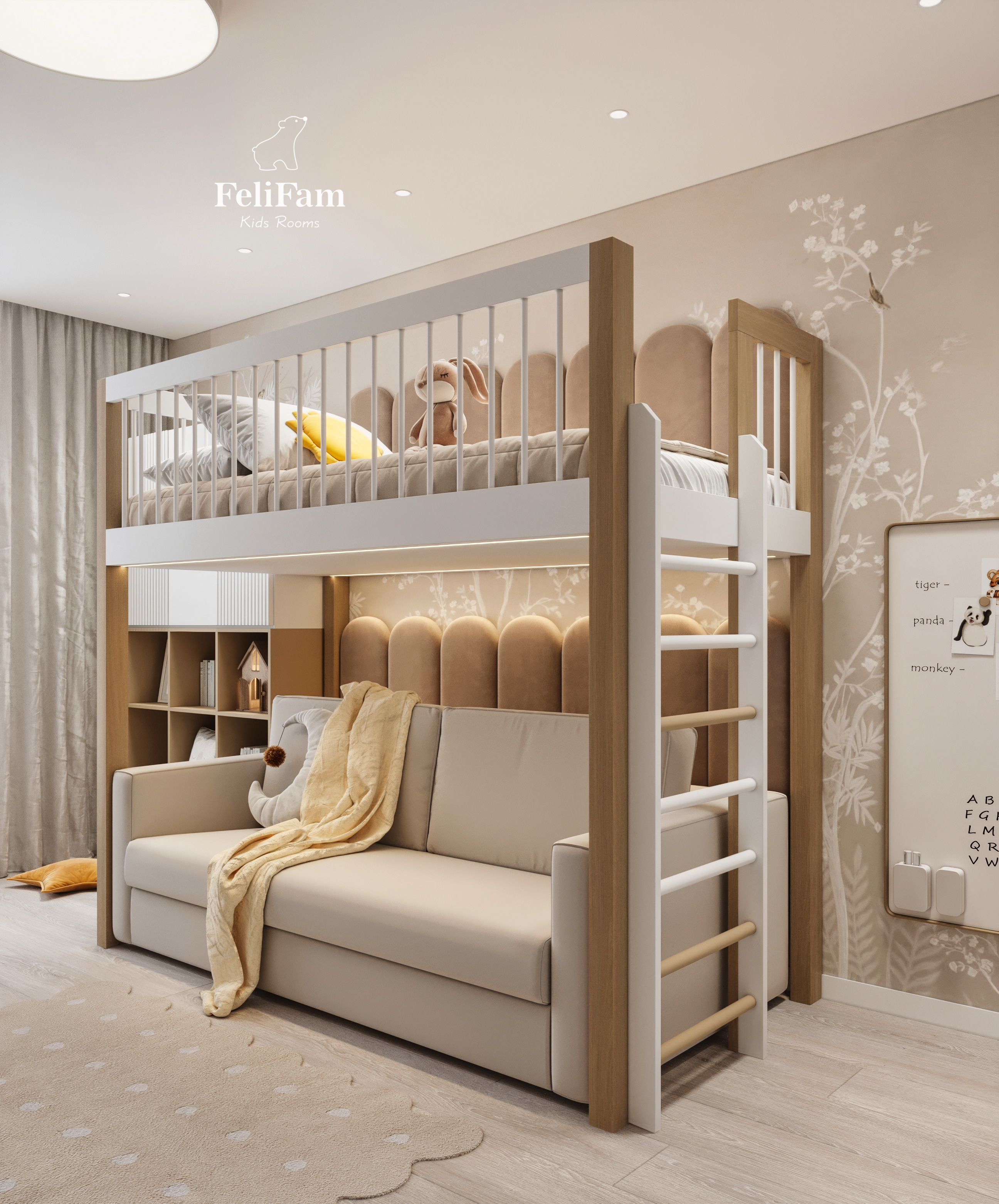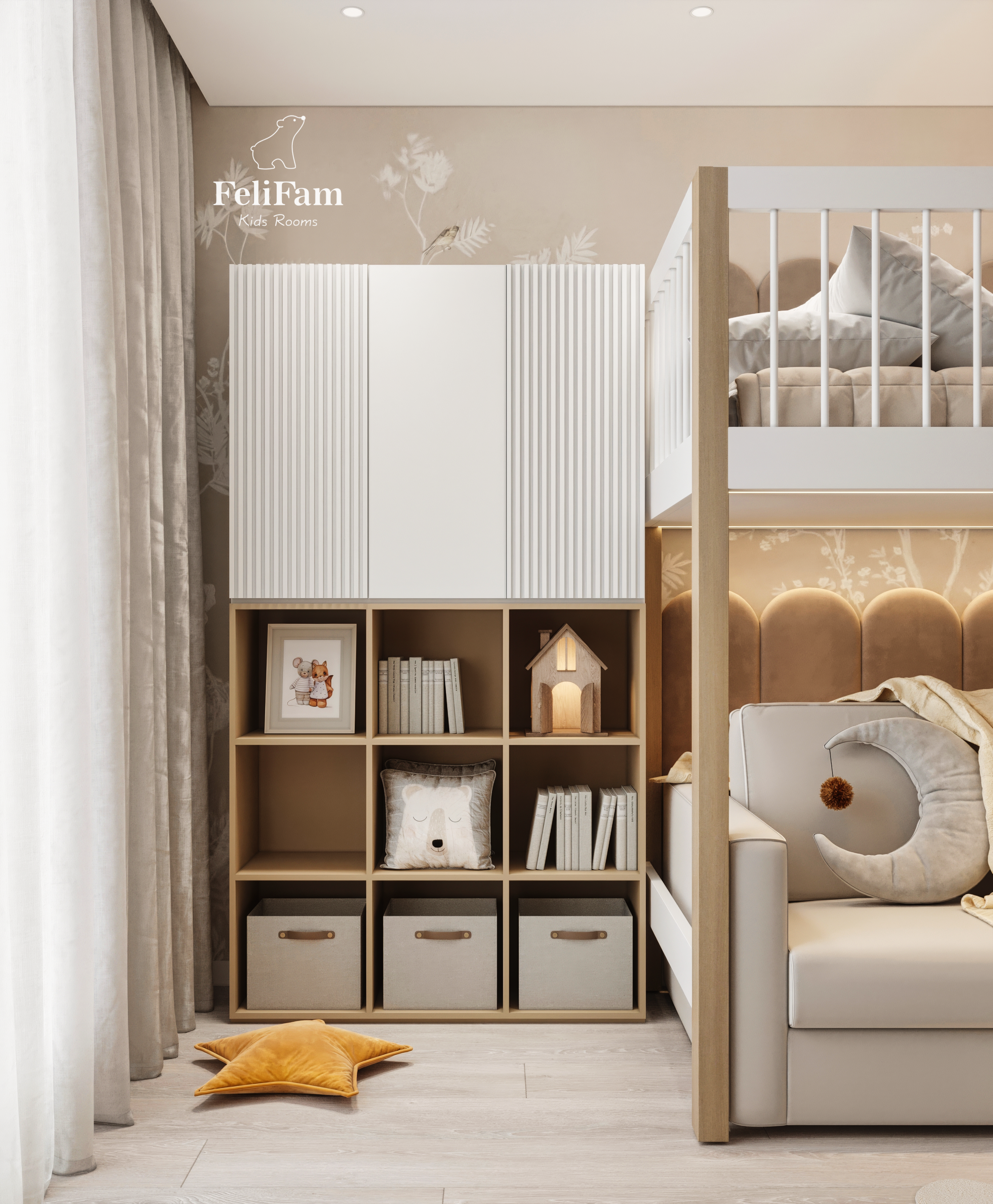 Neutral pastel shades, quality furniture and universal design are an investment in comfort and development. Such a room will become a favorite place for relaxation, learning and inspiration!