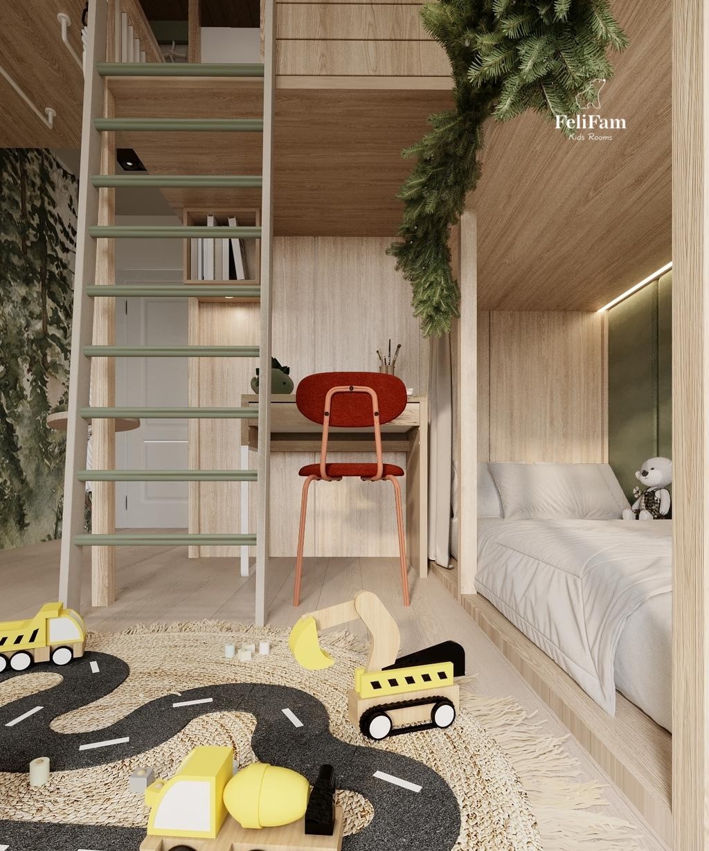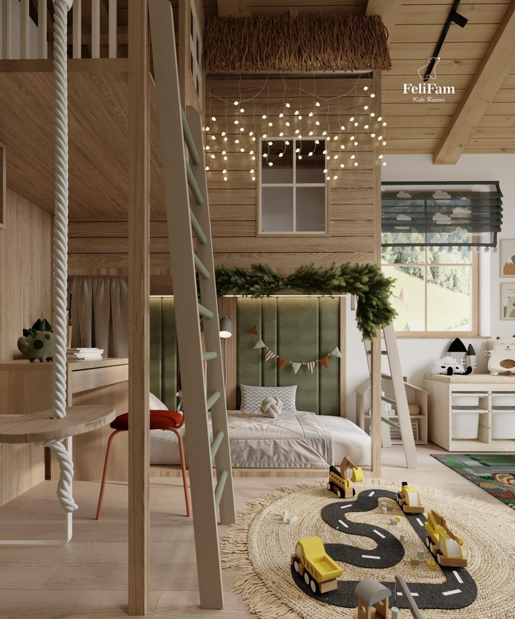 World of Adventure for Two Brothers: A Three-Story Children’s Room Imagine a space that’s not just a room, but a whole world for two little explorers! It has everything: cozy spots for sleeping, a play area for mischievous fun, and corners for resting with a favorite book. Three levels provide limitless opportunities for imagination. Today, it’s a space station, tomorrow — a medieval castle, and the next day — a superhero base. Every detail is carefully considered: safe ladders, functional storage systems, and quality materials that withstand the boldest children’s experiments. It’s more than just a children’s room; it’s a place where friendship grows, dreams are born, and memories are made for a lifetime! We will ensure that this world is perfect.
