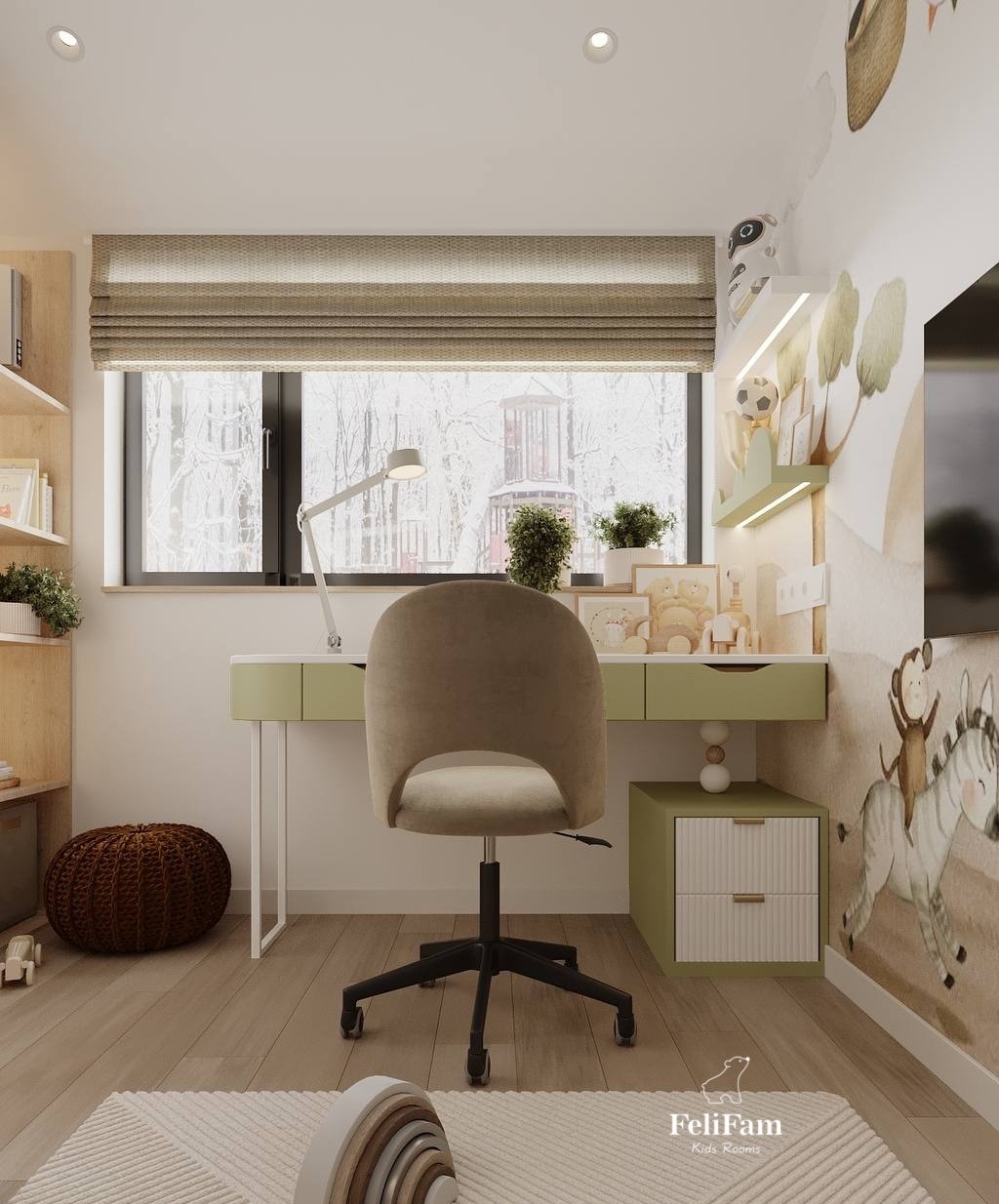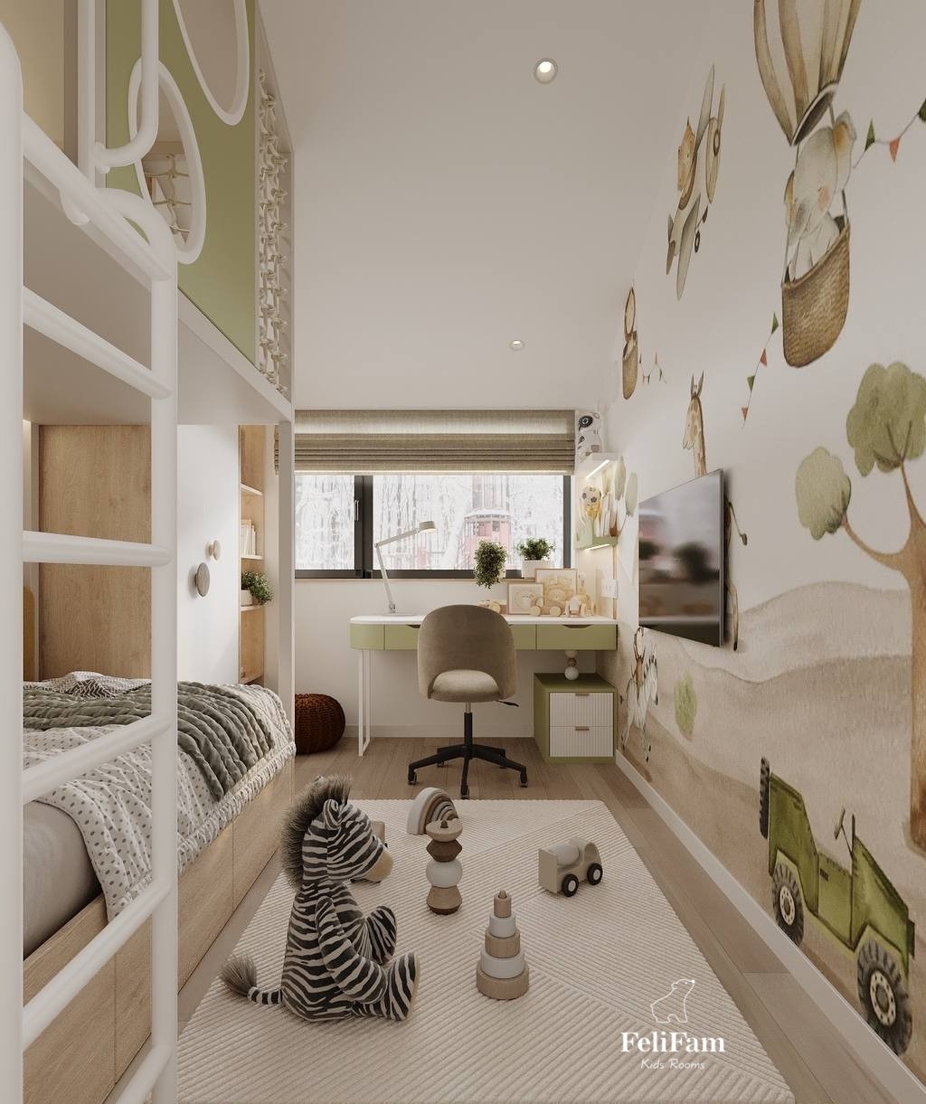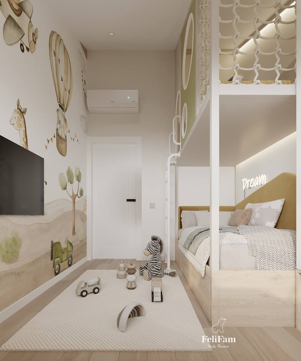 Everything needed in 9 sqm – functionality and style in one space. In this room, comfort and efficient use of space have been combined. Bright decorative elements and accent wallpaper add energy and expressiveness to the room. The bunk structure, adapted to the ceiling angle, optimizes space, providing a comfortable place for sleep and storage. The work area is organized so that every centimeter is used as efficiently as possible, creating ideal conditions for productive work or learning. This project is a prime example of how to make the most of every square meter while creating a functional and stylish space.