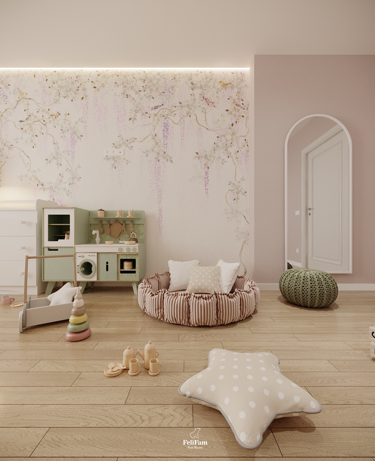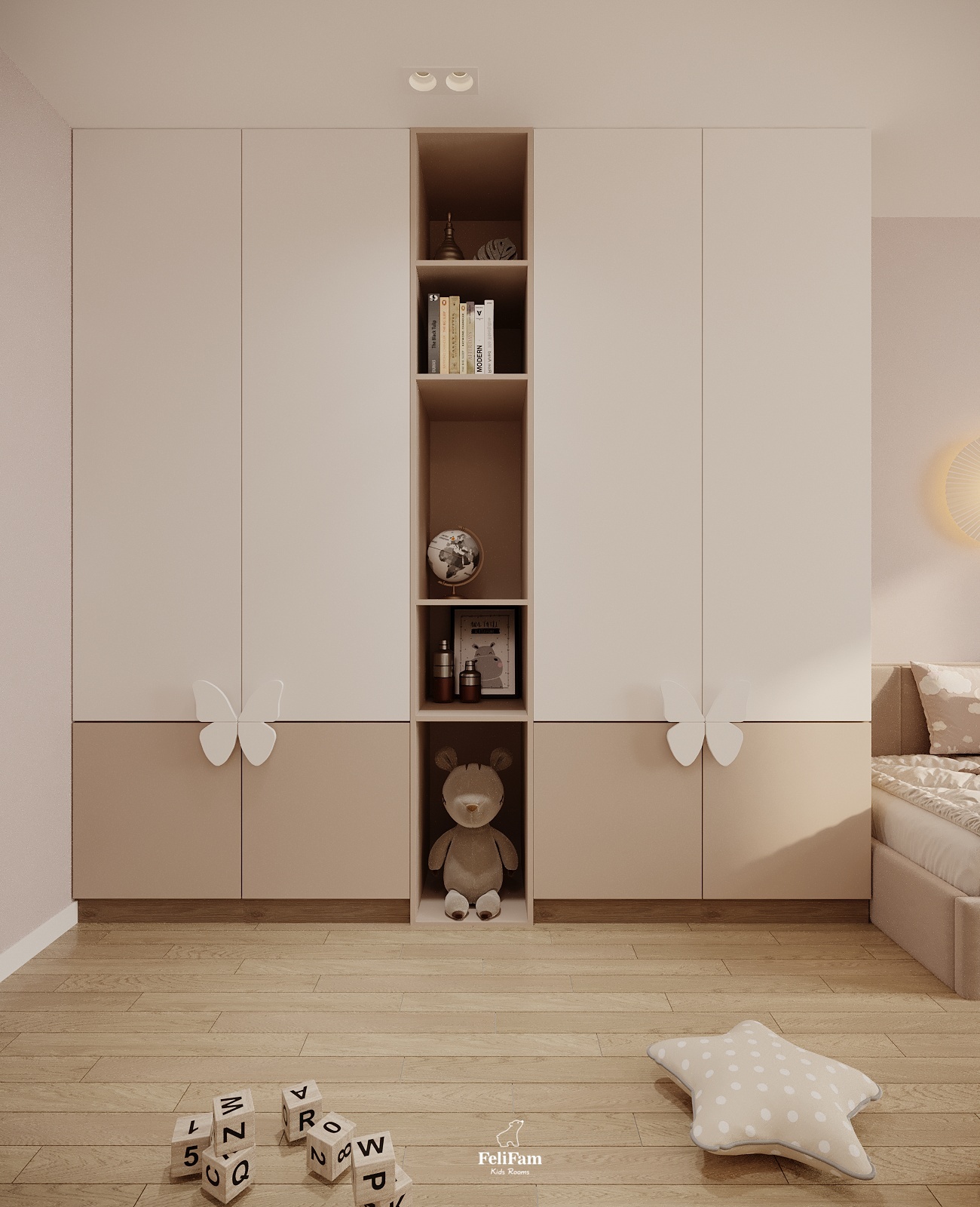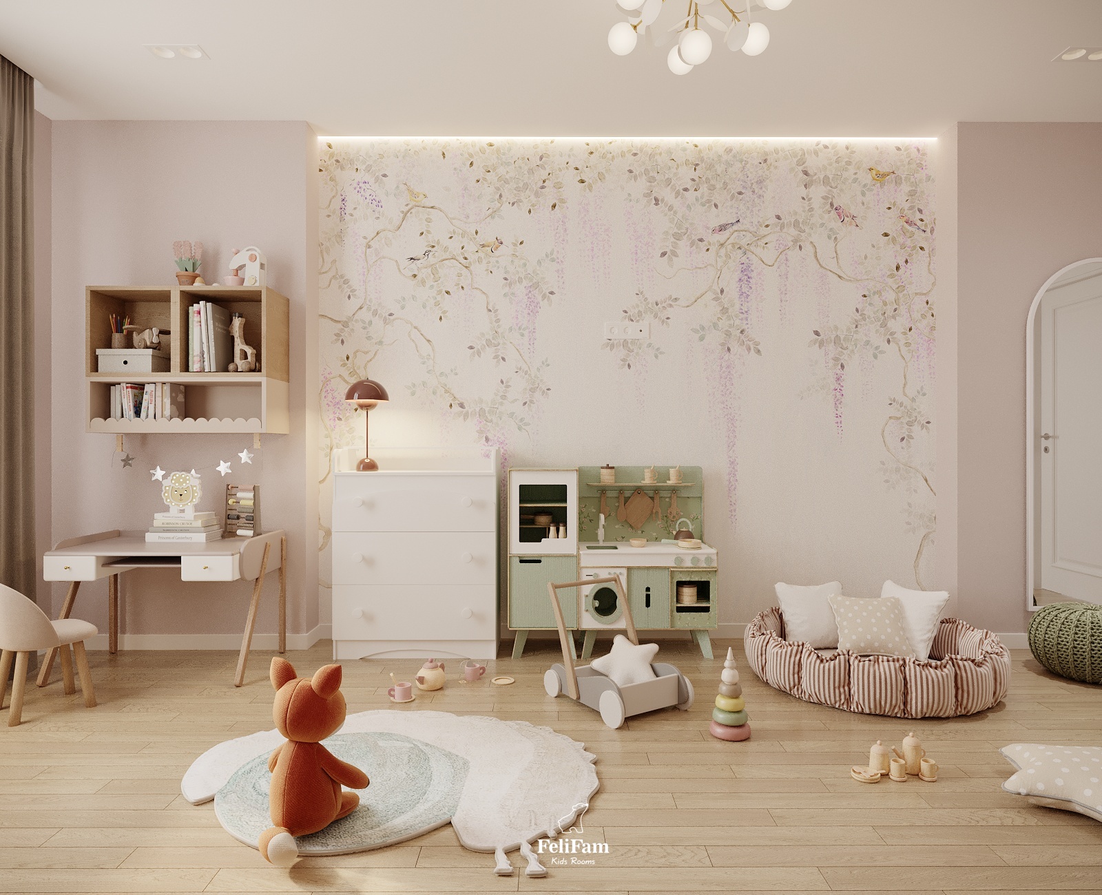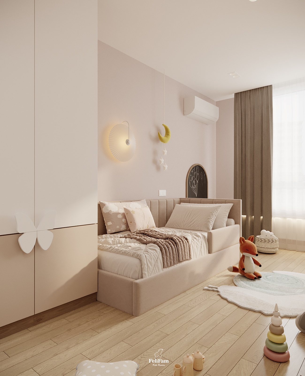A space filled with light and dreams. This spacious room for a girl is decorated in light, soft tones creating an atmosphere of lightness, coziness, and harmony. Everything is thought through in detail: from ergonomic layout to decor details that inspire and bring comfort. The space is perfect for rest, study, and creativity — everything a child needs for a happy daily life.