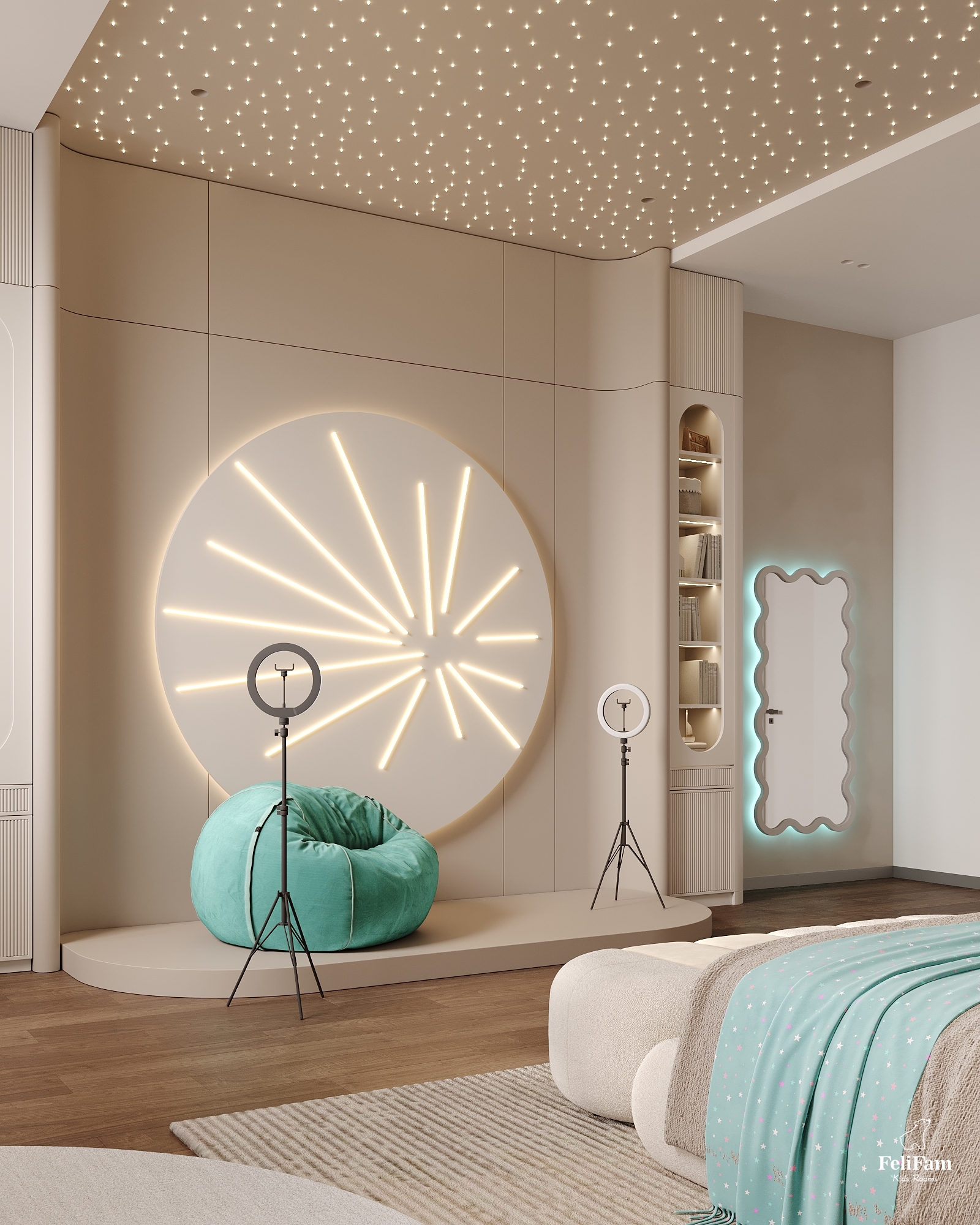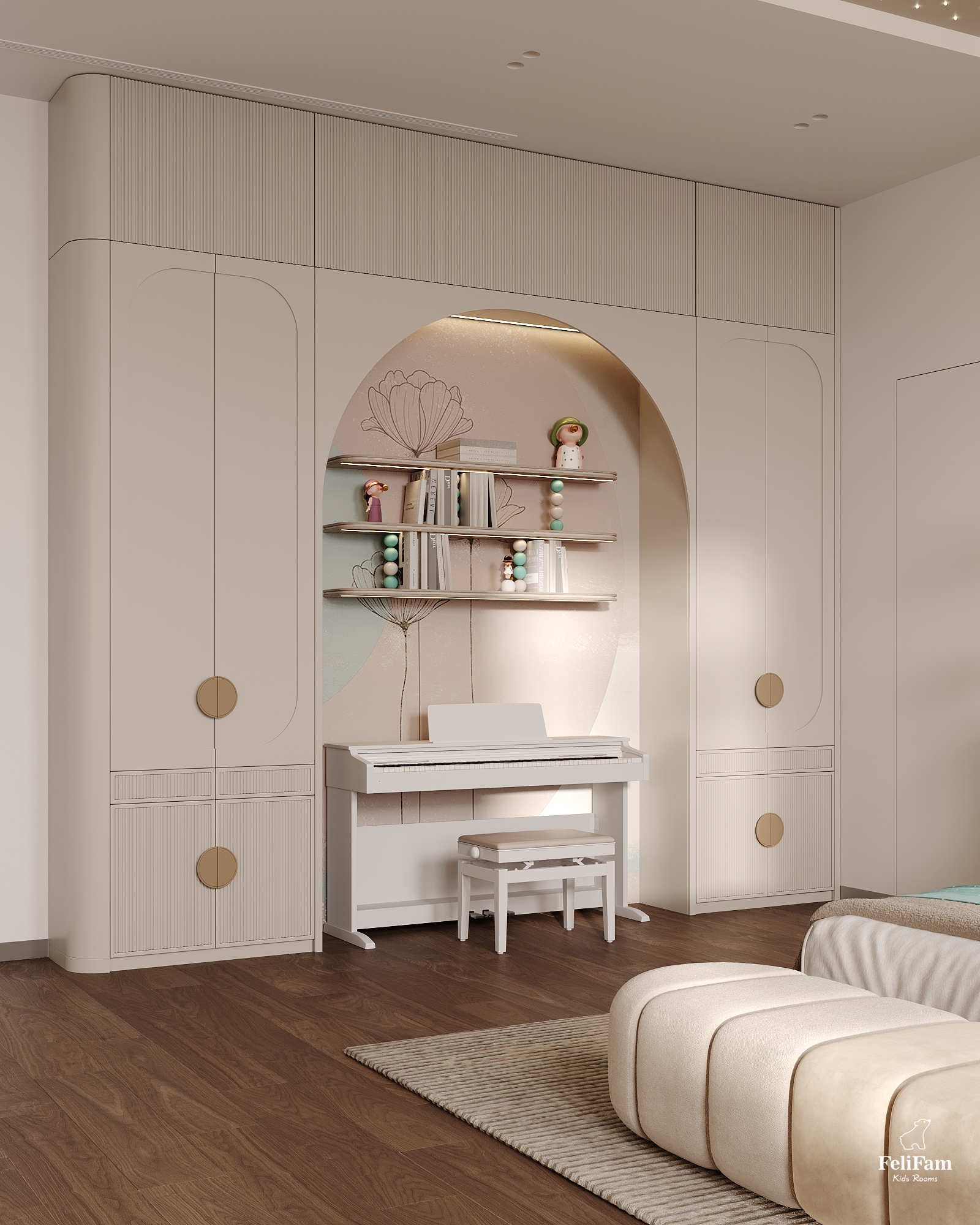 The room is designed to support the girl’s interests, offer space for self-expression, and remain relevant as she grows and evolves.