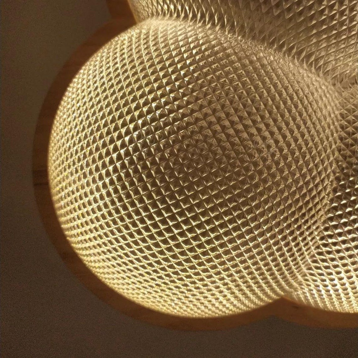 Our Prismatic lamp is a story about a magic prism that has absorbed the most beautiful colors of this world. I know that joy, love, happiness and dreams have their colors. So that everyone could see them, we took a special material used for experiments in the field of light physics and gave it the shape of a cloud. The amazing light effect is that now a ray of light, passing through the ceiling, decomposes the spectrum into a real rainbow. There is a space for seven basic colors in each tiny prism.