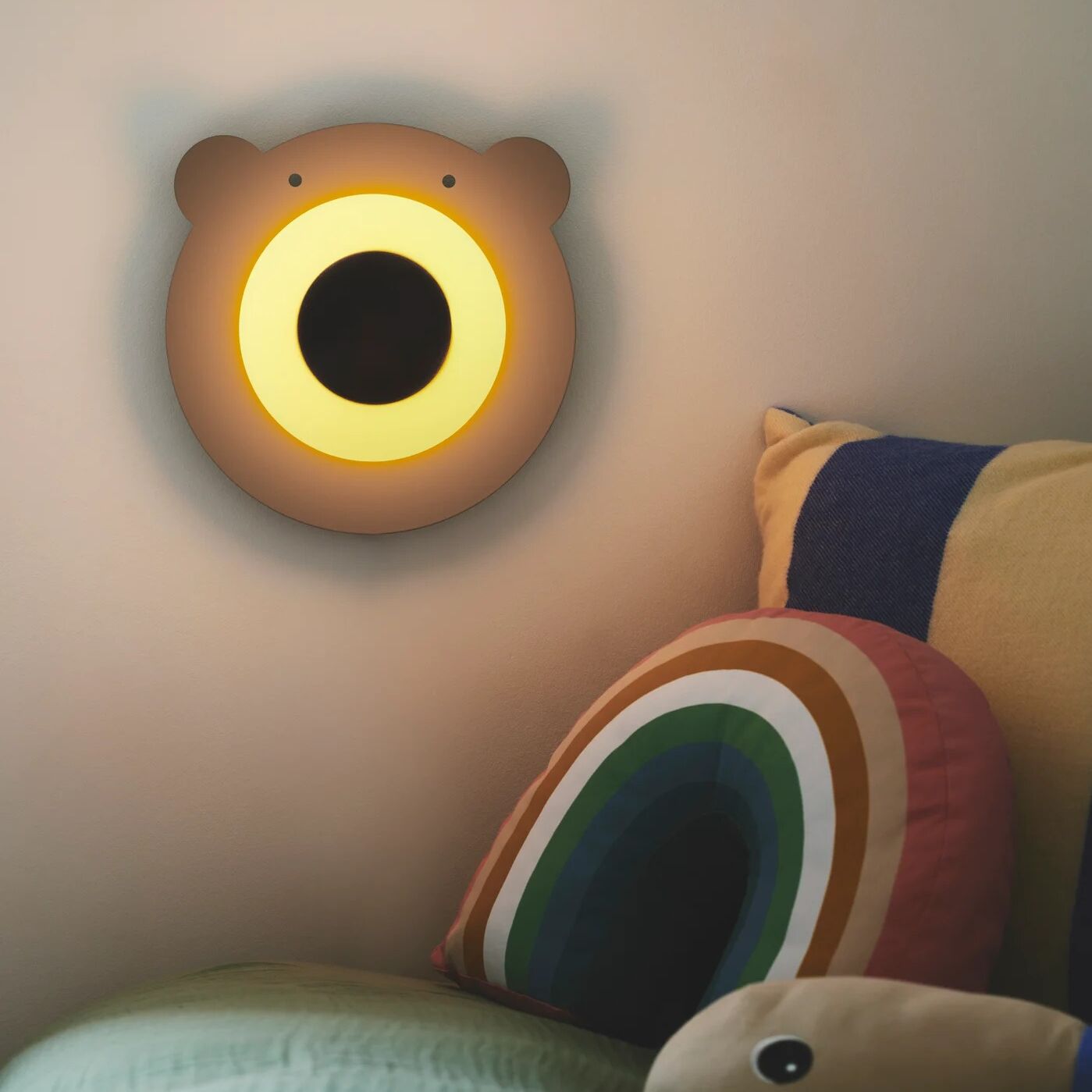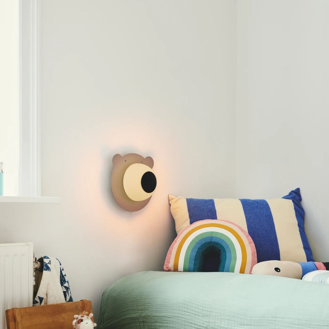 Bruno’s bear is a cute decoration for a children’s room. The bear’s nose is made of opal glass, and the base is made of brown metal. Opal glass lamps are made by hand, thanks to this unique process, the glass has its own character and bright appearance.