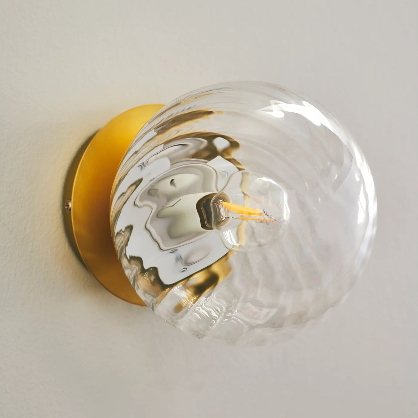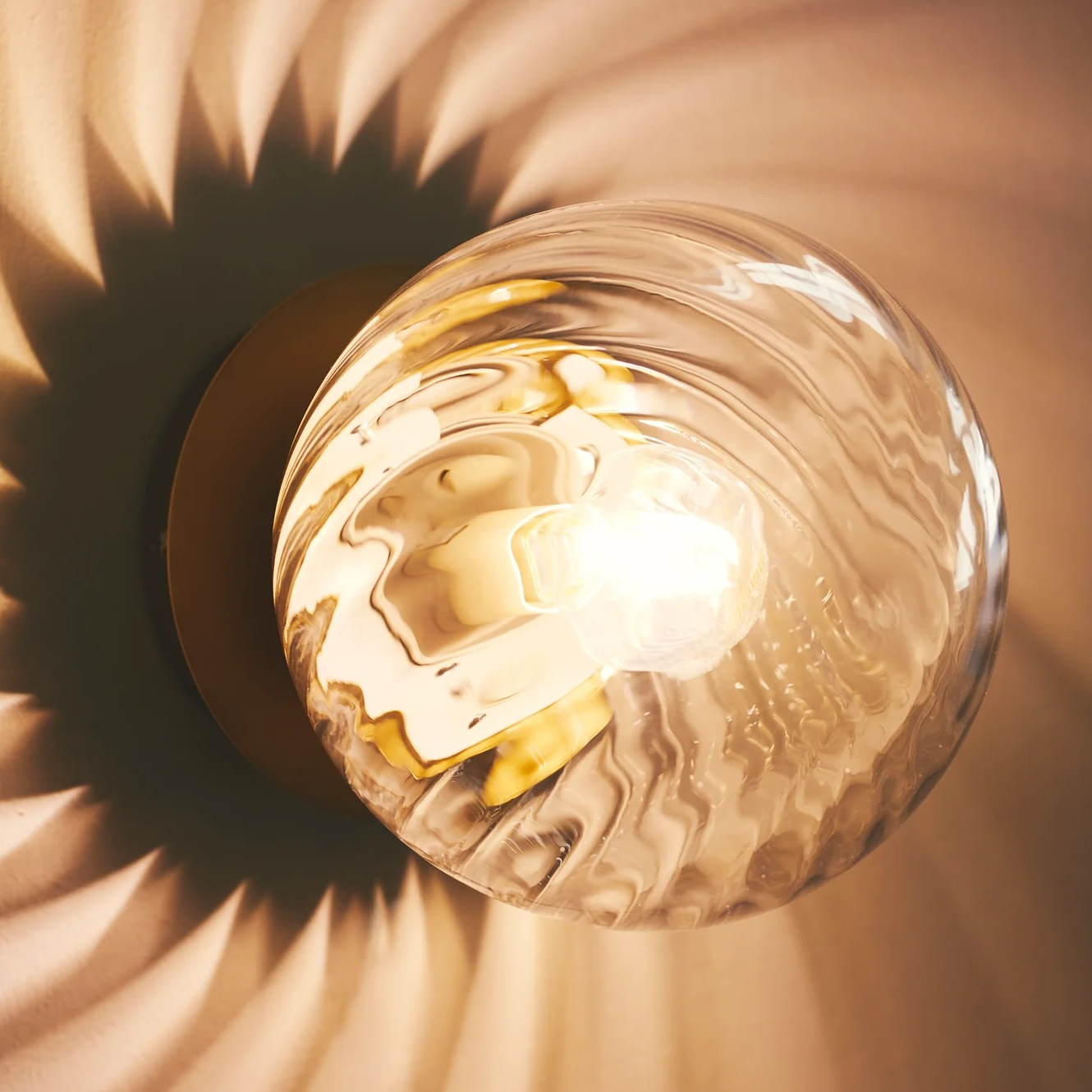 Chisell takes inspiration from the glamorous Art Deco style and features contemporary brass and swirled glass.