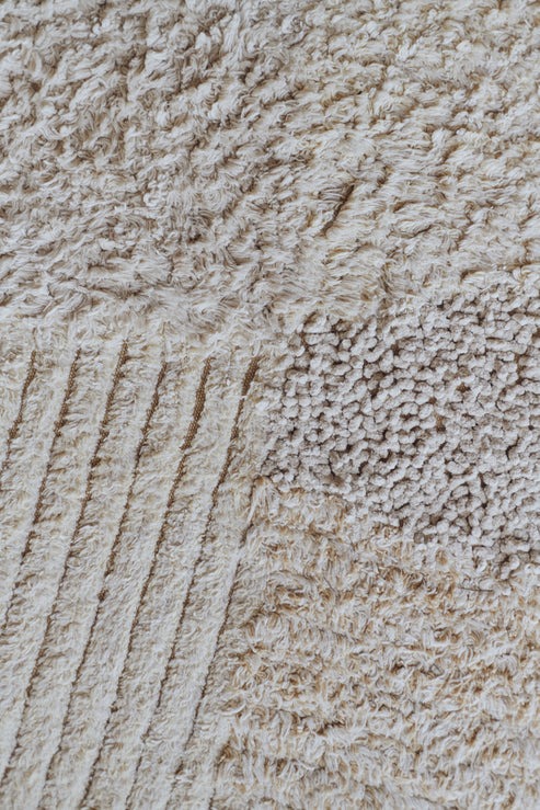 Handcrafted from natural cotton on a honey-colored base, this rug is not only stylish and practical but also delightfully soft—perfect for young explorers!