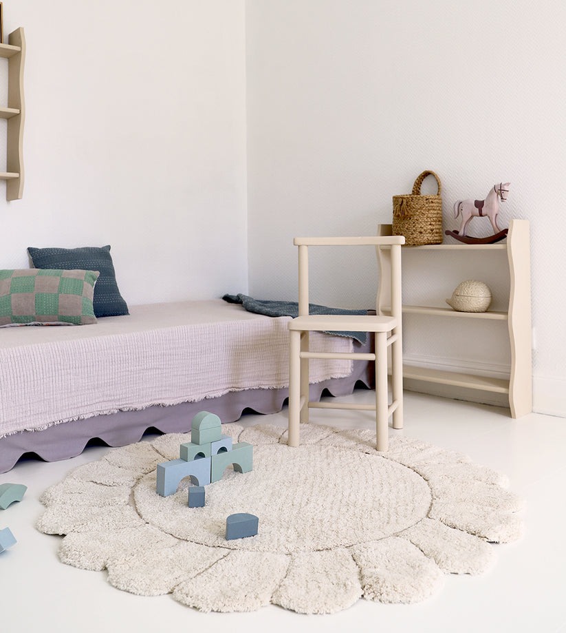 With its delicate design and round format, this natural cotton rug is not only an aesthetic piece, but also a practical and ecological solution for your child’s bedroom.