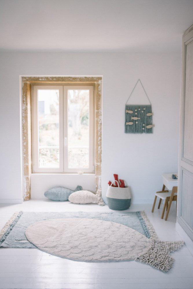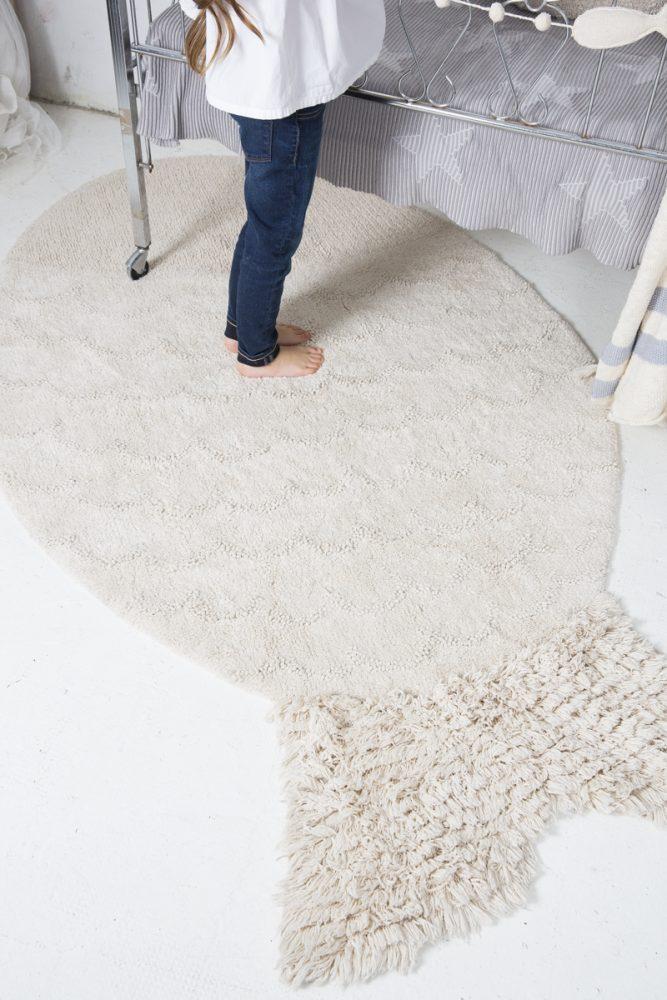 The Big Fish rug is made in a solid color but using different sewing techniques such as loop and chenille that have been used to create multiple textures allowing us to see all the details. Fish fin consists of longer fibers woven into the base of the rug, forming a fluffy fringe that gives it an original look.