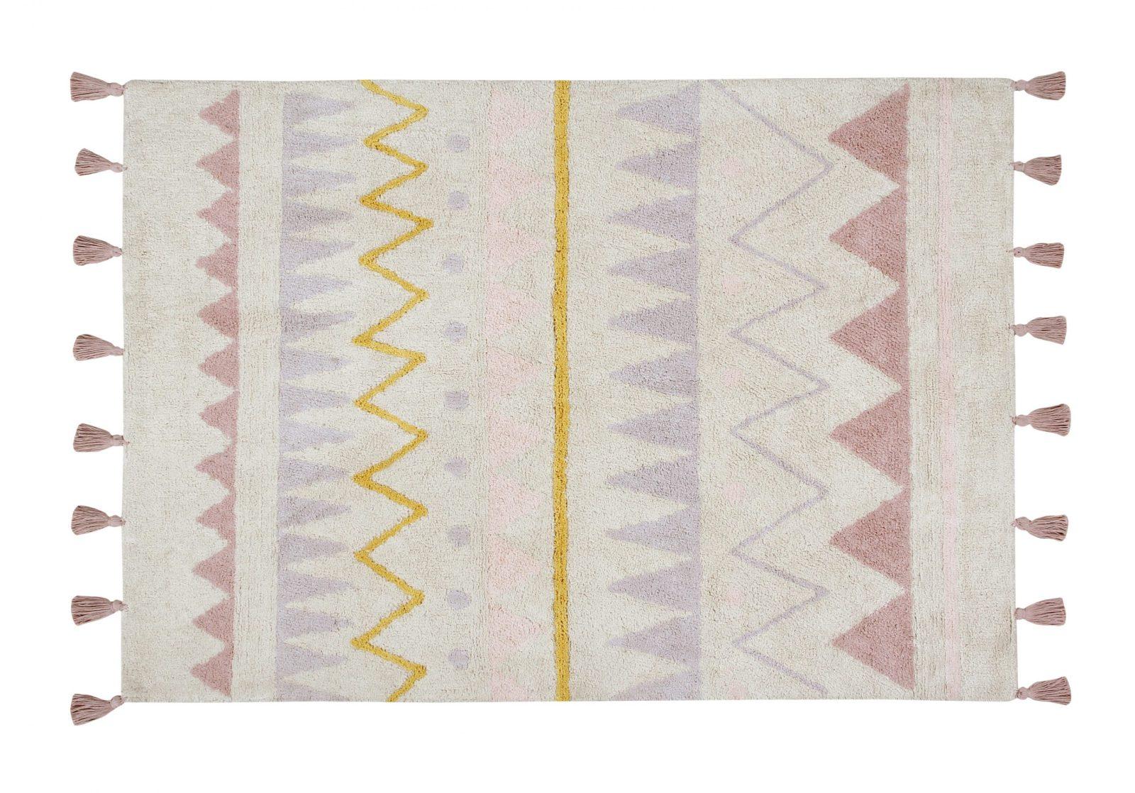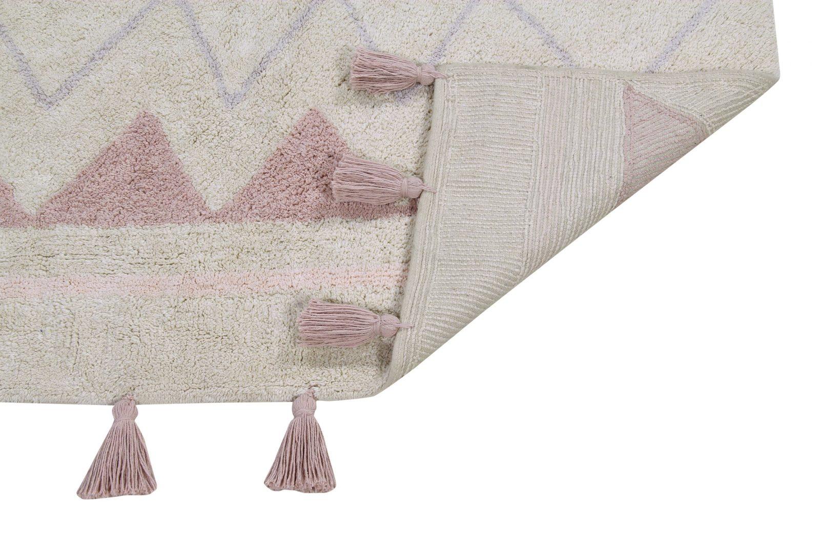 The Lorena Canals Azteca Natural Vintage Nude Rug (120×160 cm) combines ancient Aztec motifs with modern style. Featuring pastel colors and playful pompons, this 100% cotton rug is perfect for living rooms, bedrooms, or children’s rooms and is machine washable for easy maintenance.