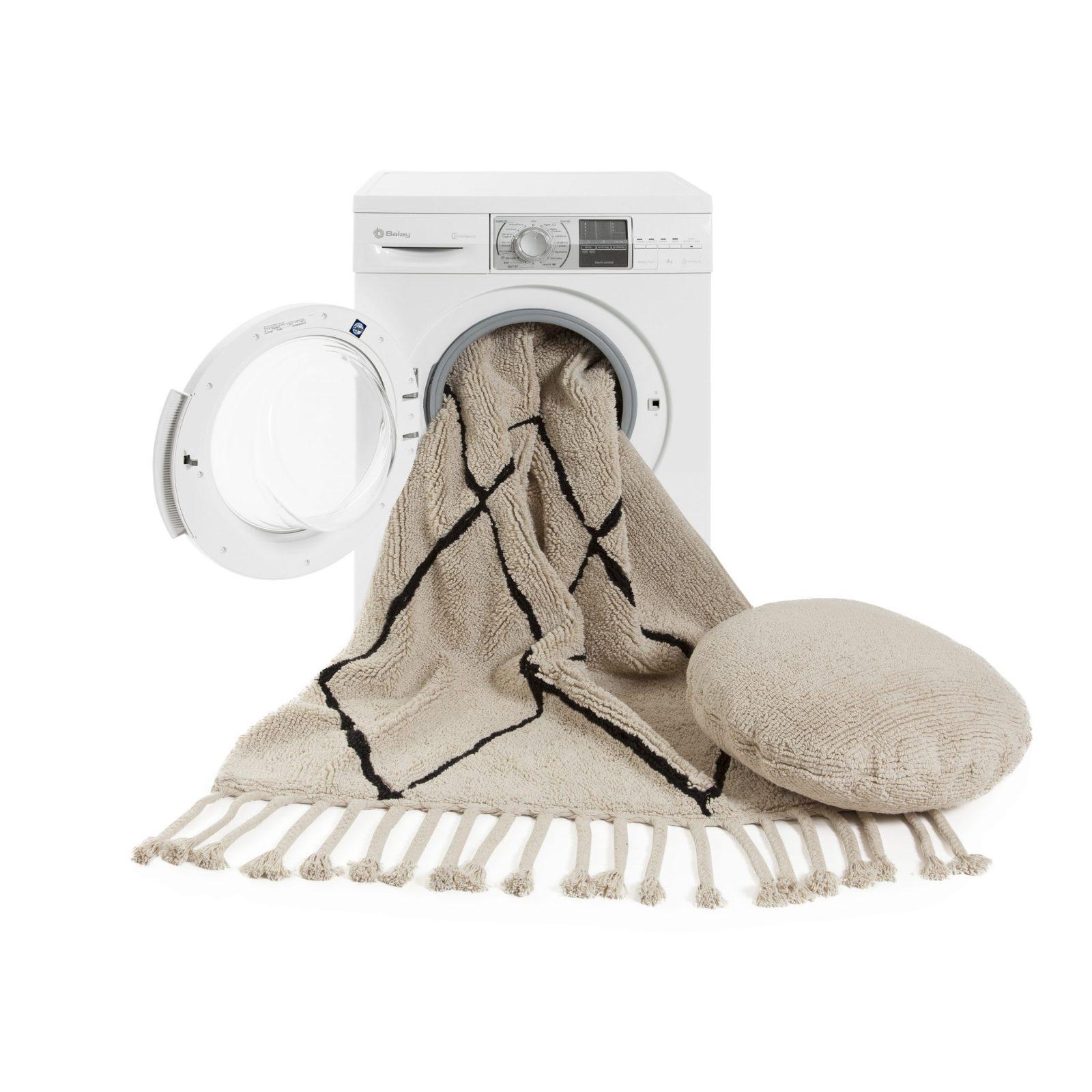 Lorena Canals handmade natural cotton rugs are machine washable at home. Due to the possibility of regular home washing, dust and allergens do not accumulate in carpets.
