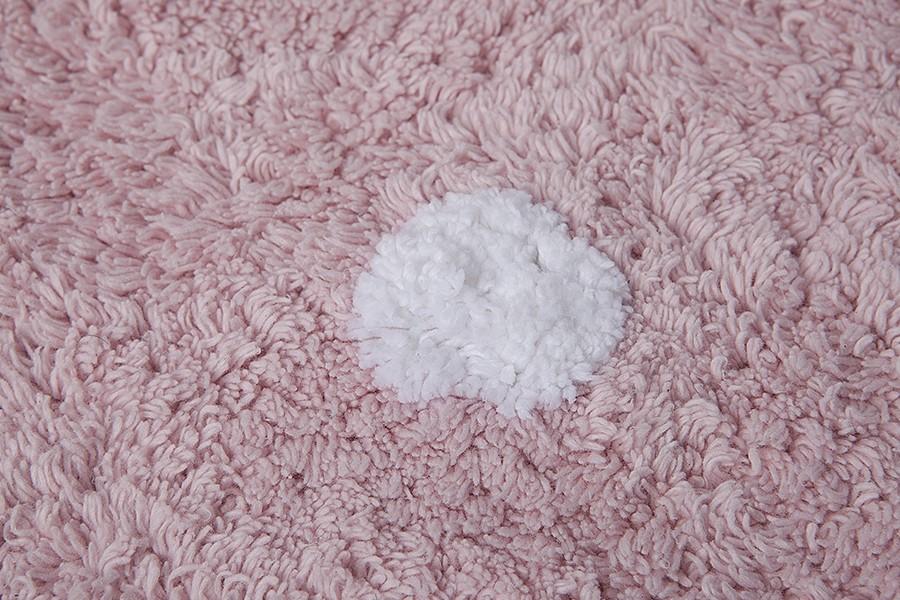 The Lorena Canals Galleta Rosa Rug 120×160 cm features a charming cookie shape with pink pastel colors and realistic dot details. Perfect for a child’s room, this soft cotton rug is machine washable and made with natural dyes.