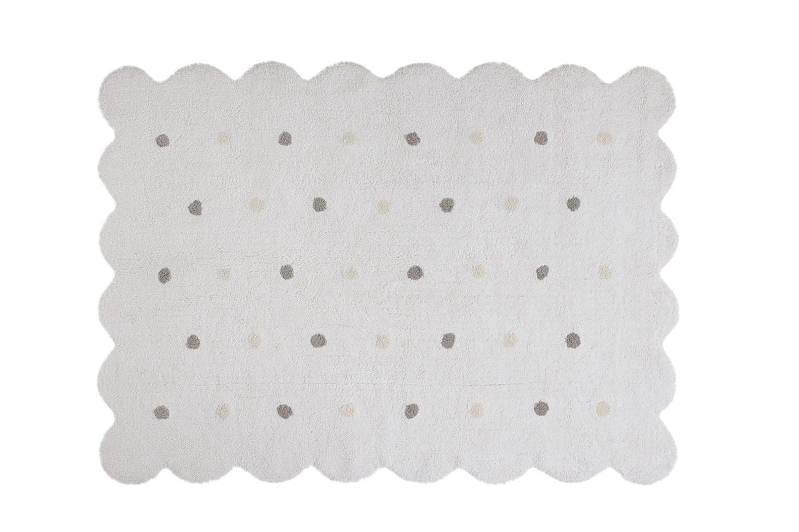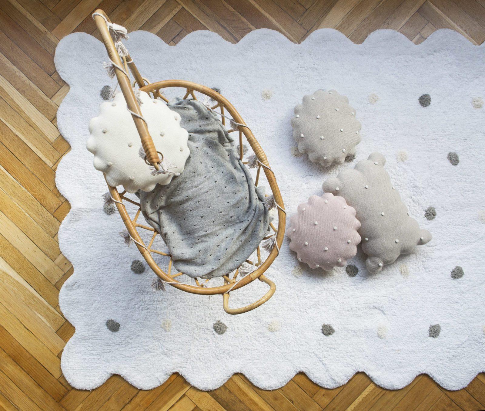 The Lorena Canals Galleta White Rug 120×160 cm features a unique cookie shape with delicate dots mimicking cookie holes. Crafted from 100% cotton and designed for children’s rooms, it combines playful style with practical functionality.