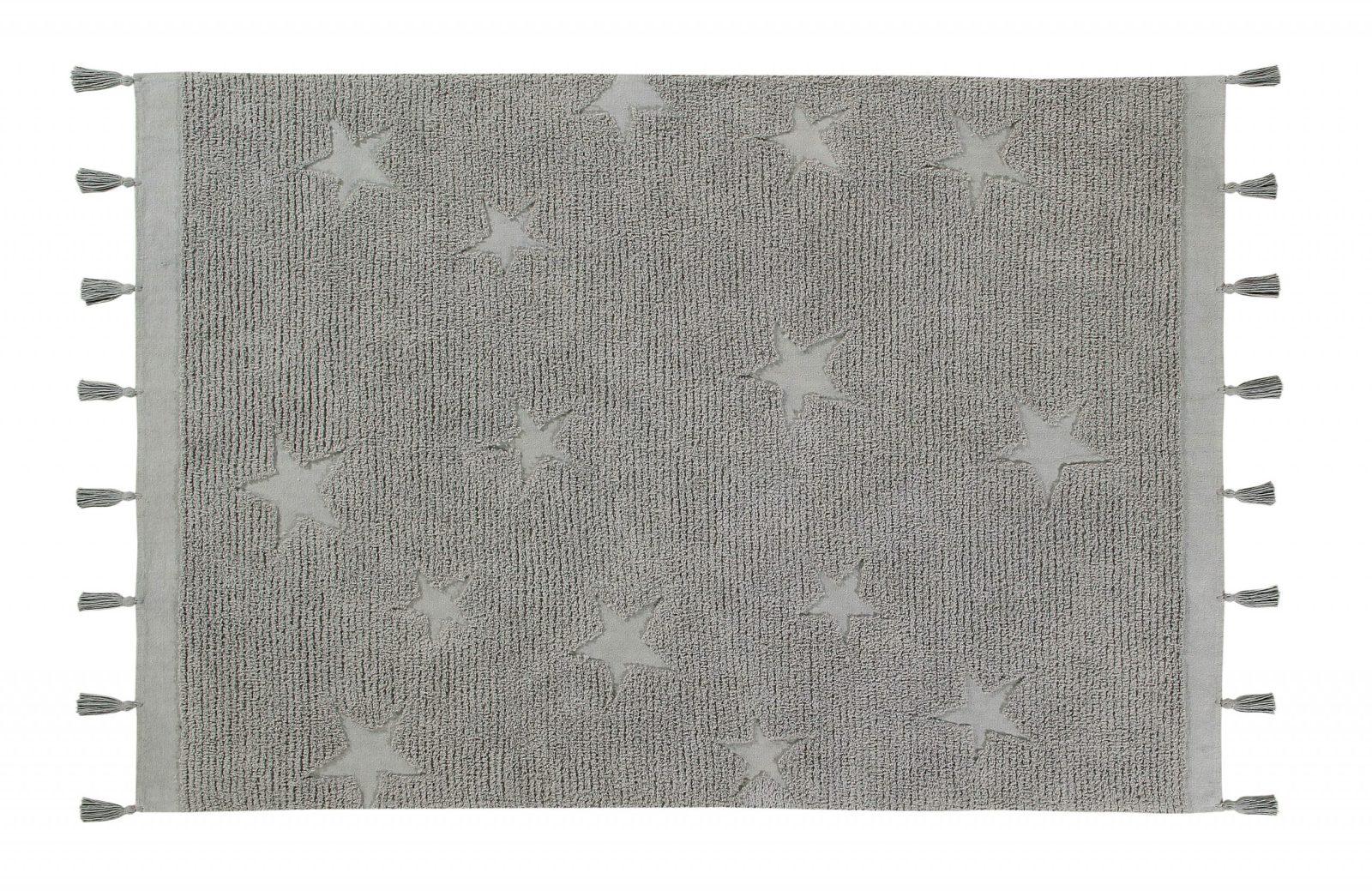 The Lorena Canals Hippy Stars Grey rug (120×175 cm) features a modern grey design with textured stars, crafted from 100% cotton. Machine washable and perfect for any room in the house.