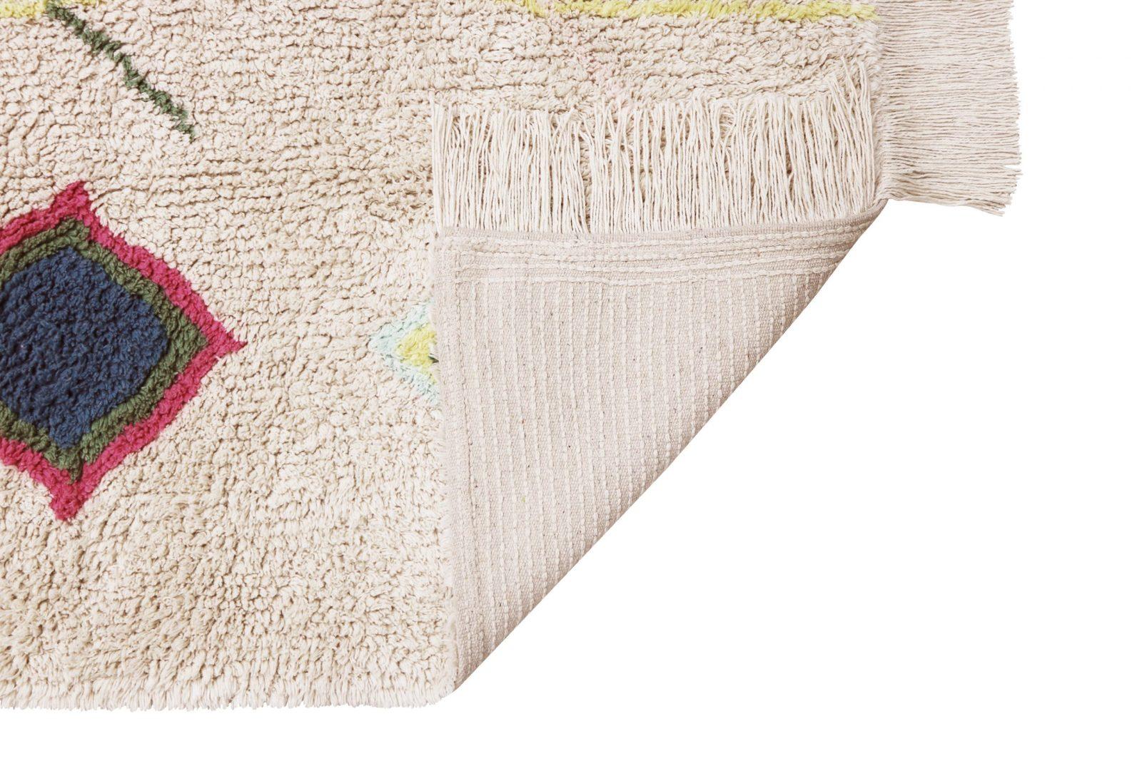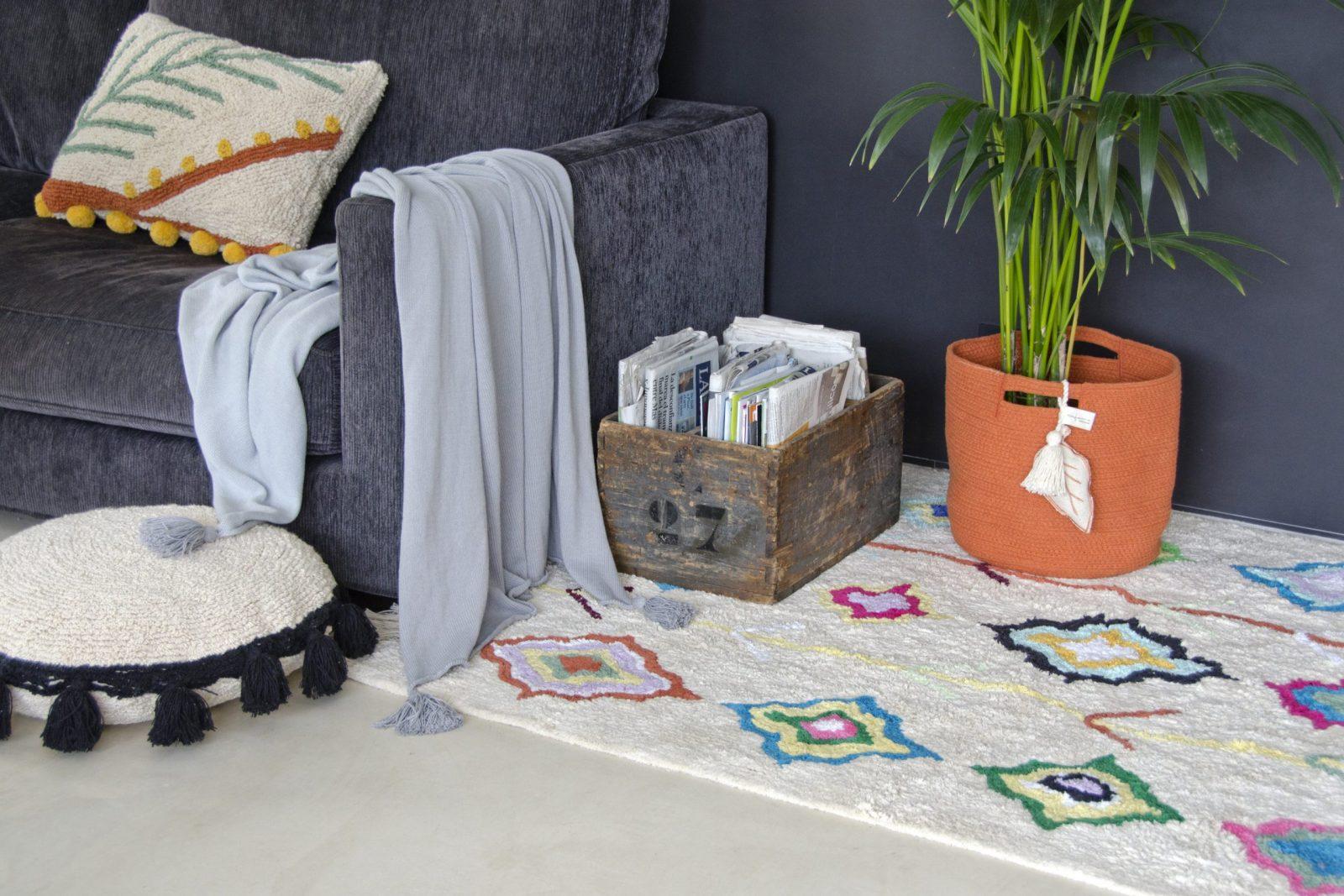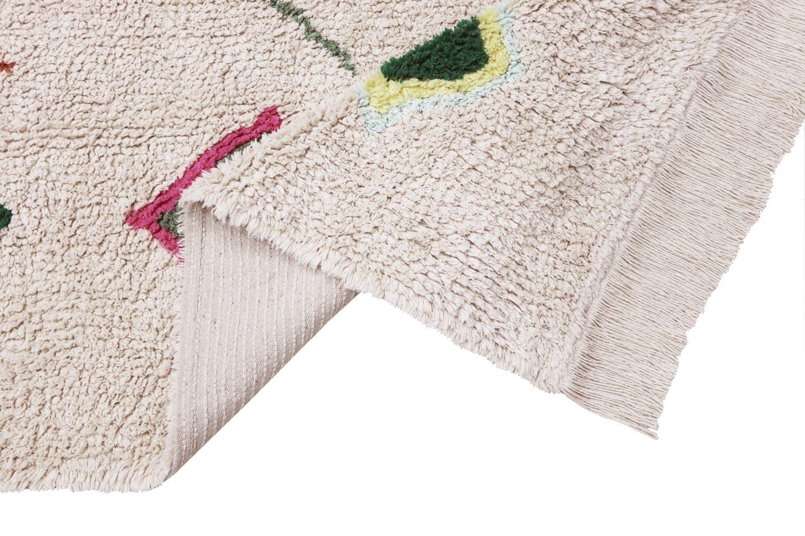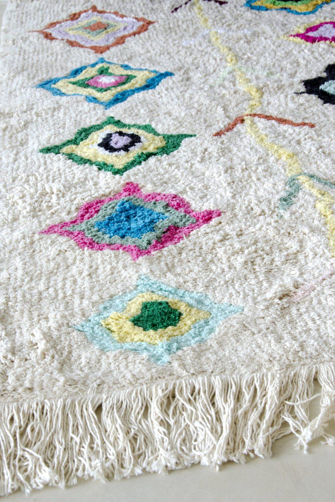 Travel to the fascinating villages of Morocco from the comfort of your home with our Morocco Collection! This 100% cotton rug is machine washable (normal 9kg washing machine) with intense, trendy flowers and a fun fringe to add a special touch to your girls or boys bedroom or living room. Safe, 100% cotton, natural dyes. Handmade, each carpet is unique.