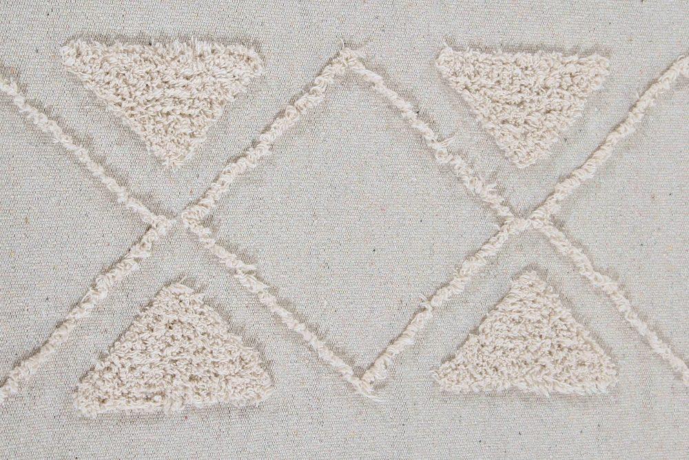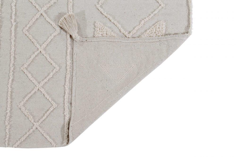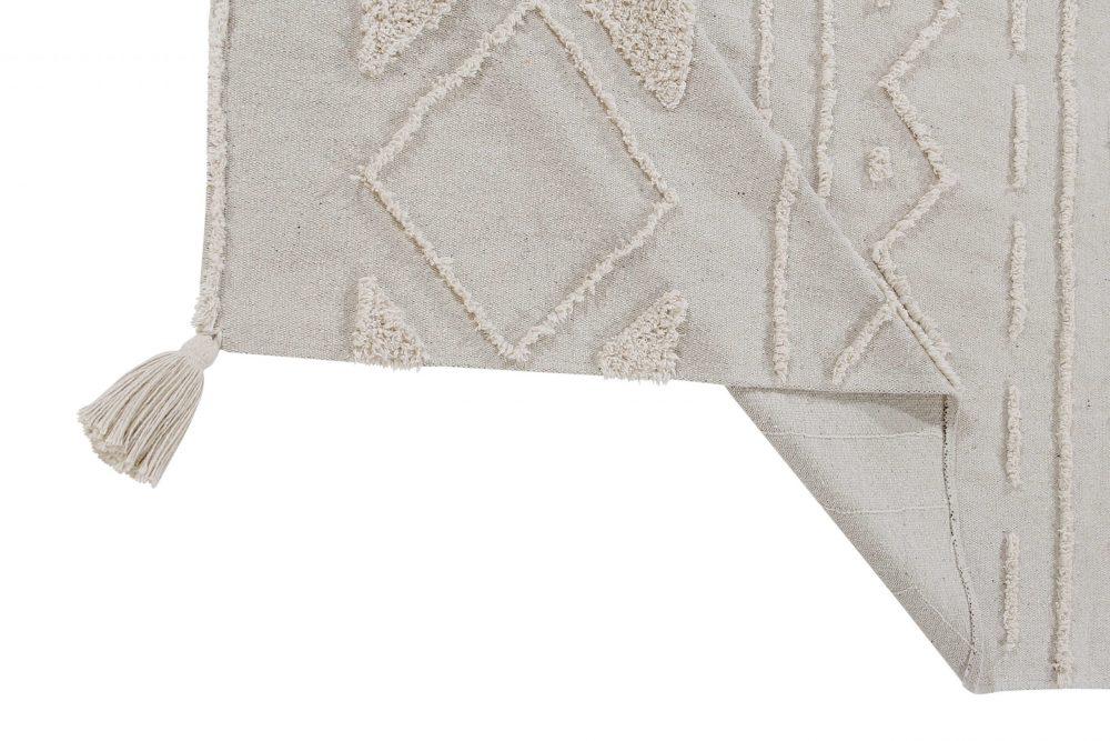 Rug in natural color with a pattern and tassels in each corner. Ideal for an adult interior, it is of exceptional quality and, above all, the possibility of washing in a domestic washing machine. Made from cotton.
