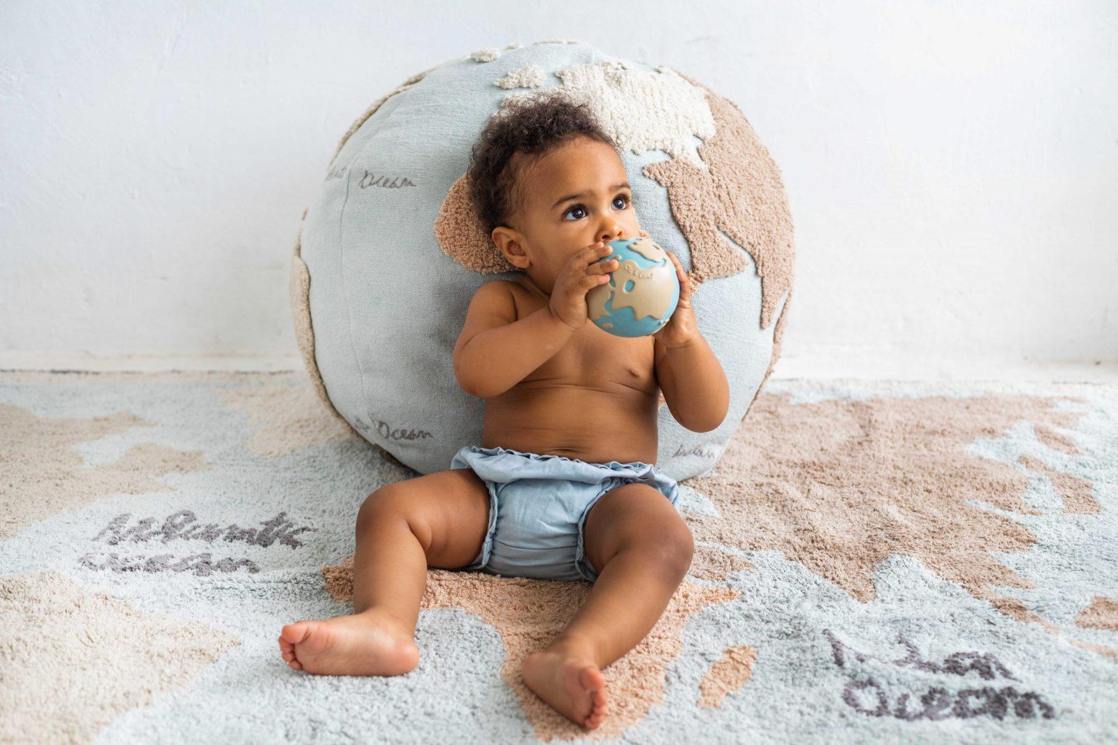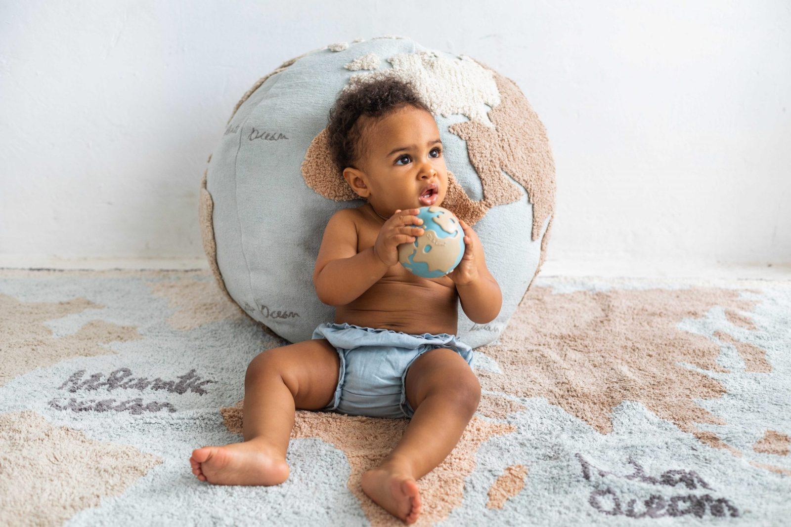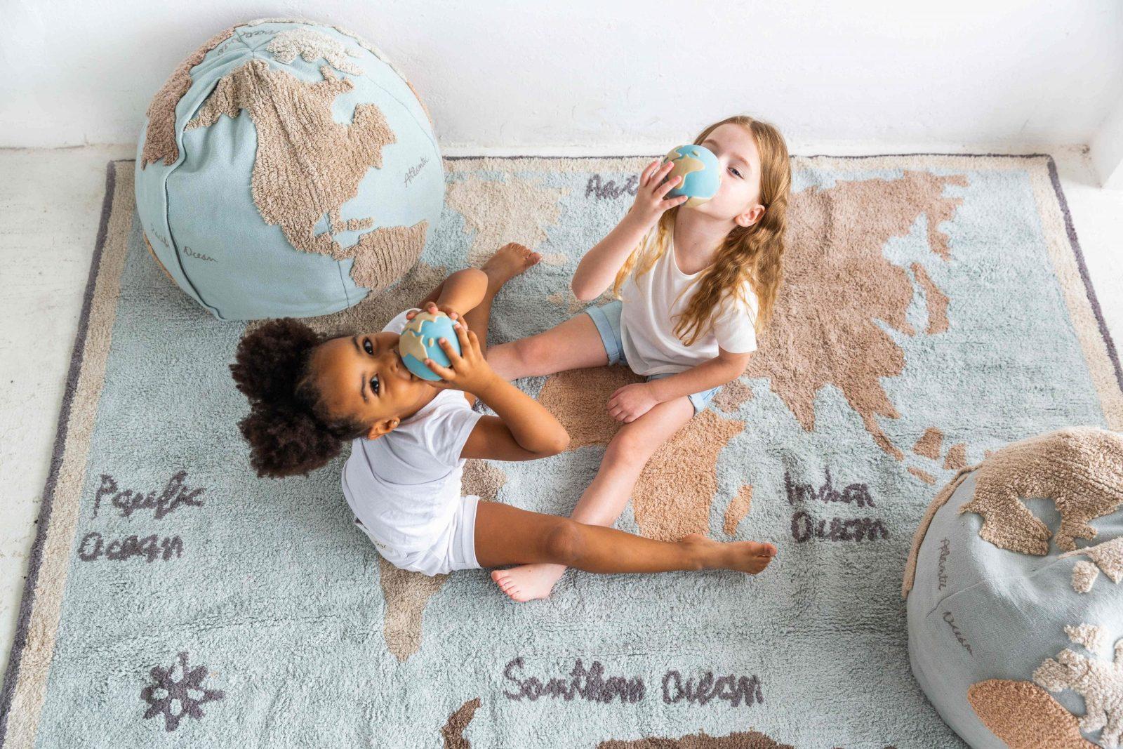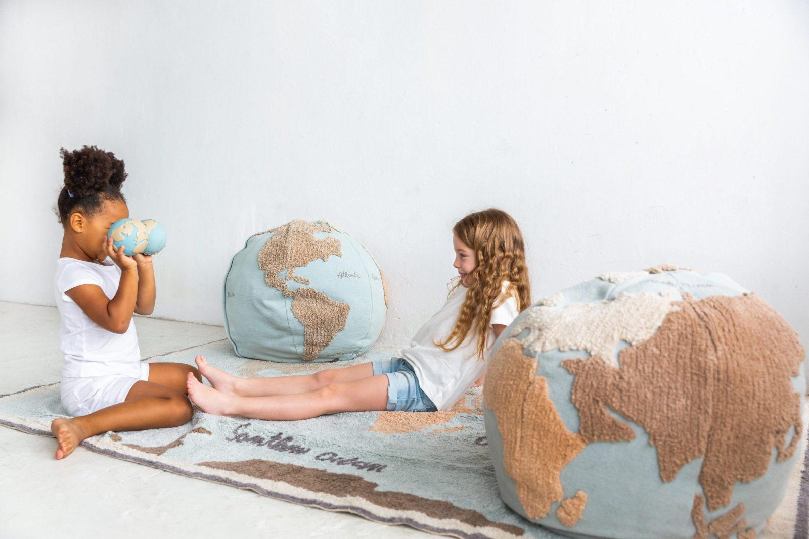 The classic Lorena Canals worldmap rug has been updated with a vintage style on the new Vintage Map, where the continents and oceans are marked in soft natural tones. For floors and walls!