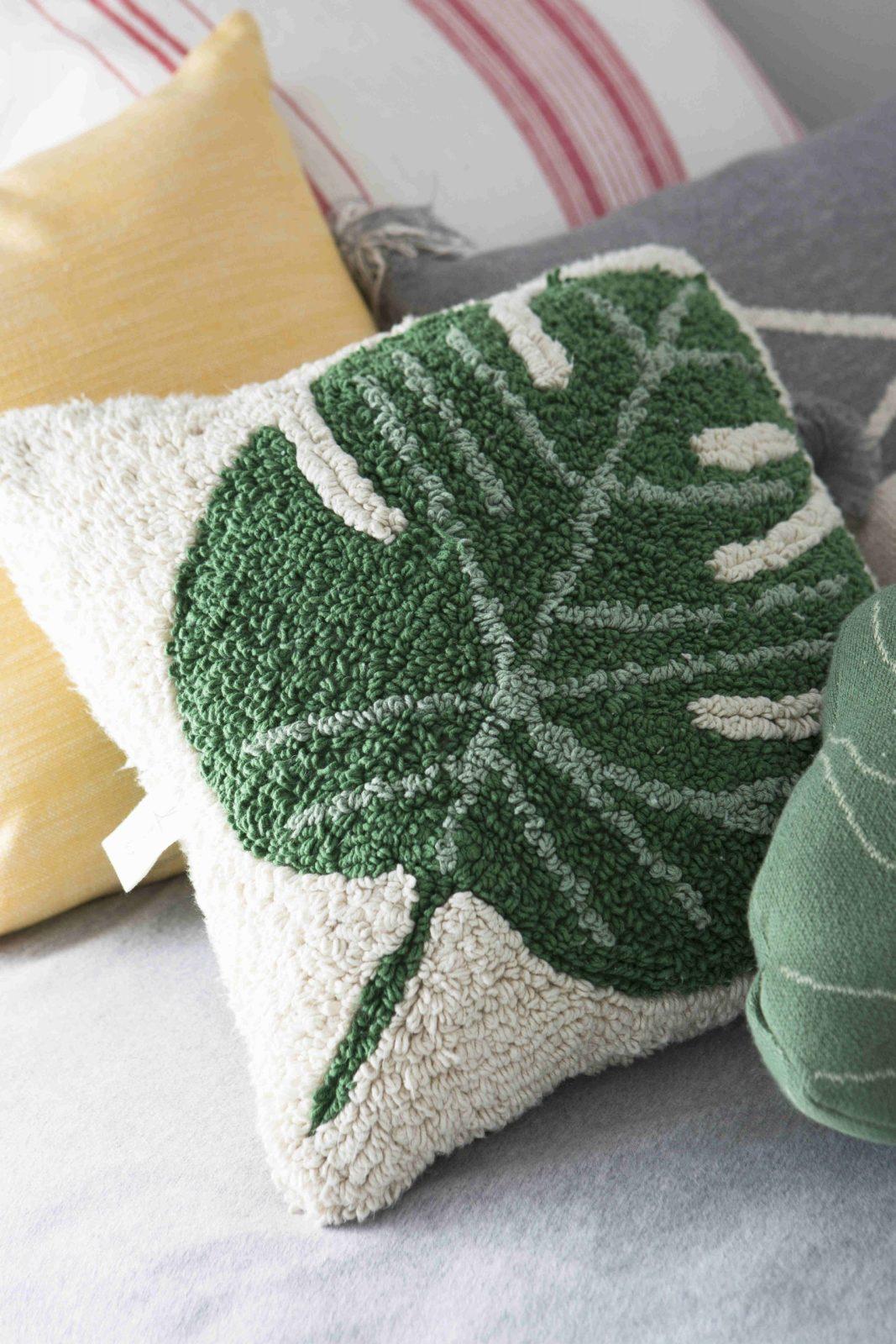 This decorative monstera leaf cushion will be a stylish accent in any interior – from the living room to the children’s room. Its natural design harmoniously complements our nature-themed rugs, cushions and baskets, creating an atmosphere of freshness and comfort.