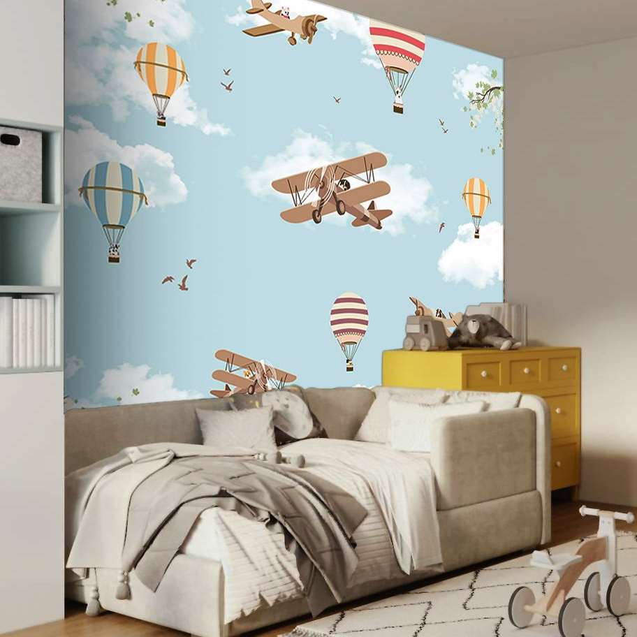 Transform your child’s room with our Dogs in Hot Air Balloons and Airplanes wallpaper by Jolly Wall. This premium vinyl wallpaper is not only a stylish decoration but also a tool for stimulating your child’s development with its interactive designs. Featuring adorable dogs in hot air balloons and airplanes, these wallpapers boast high print quality, vivid colors, and realistic images that create a whimsical atmosphere perfect for sparking imagination and adventure. Easy to maintain with washable properties, and straightforward installation with included instructions. Fire safety certified (B1) and made from environmentally friendly materials, ensuring safety and peace of mind. Choose from a variety of options to suit every taste, age, and gender.