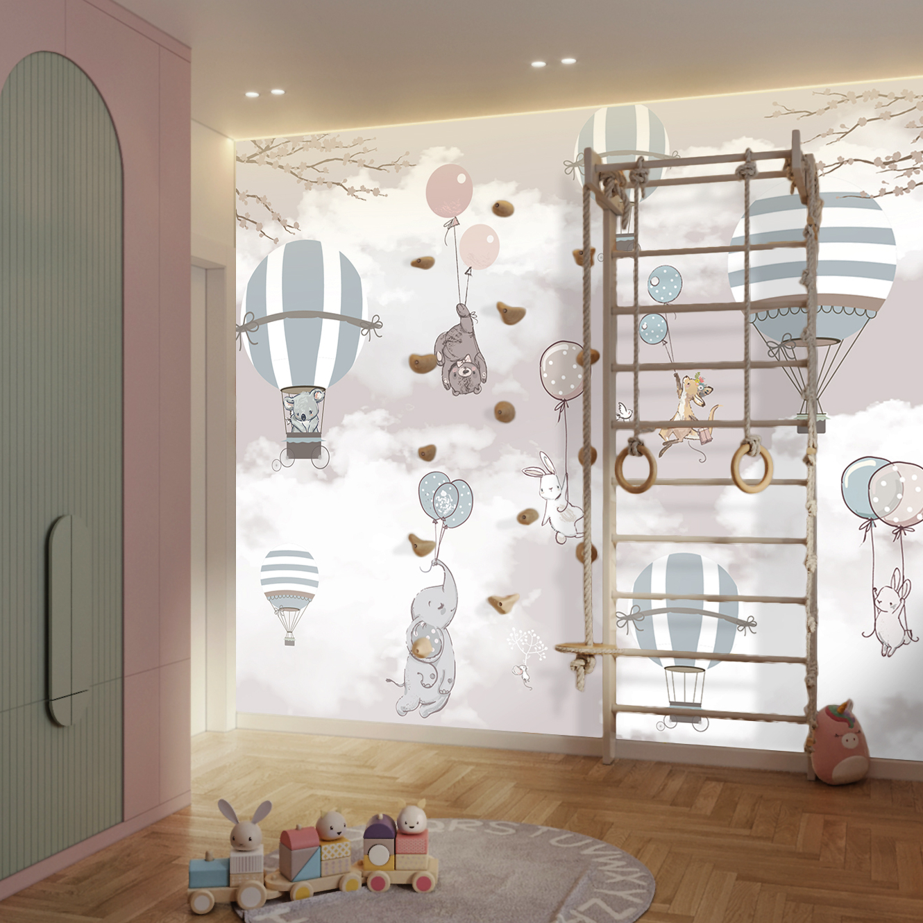 Enhance your child’s room with Jolly Wall’s premium vinyl wallpaper adorned with flowers and balloons on mountains. Designed for style and developmental benefits, our wallpapers are washable, easy to install, and made from safe, eco-friendly materials.