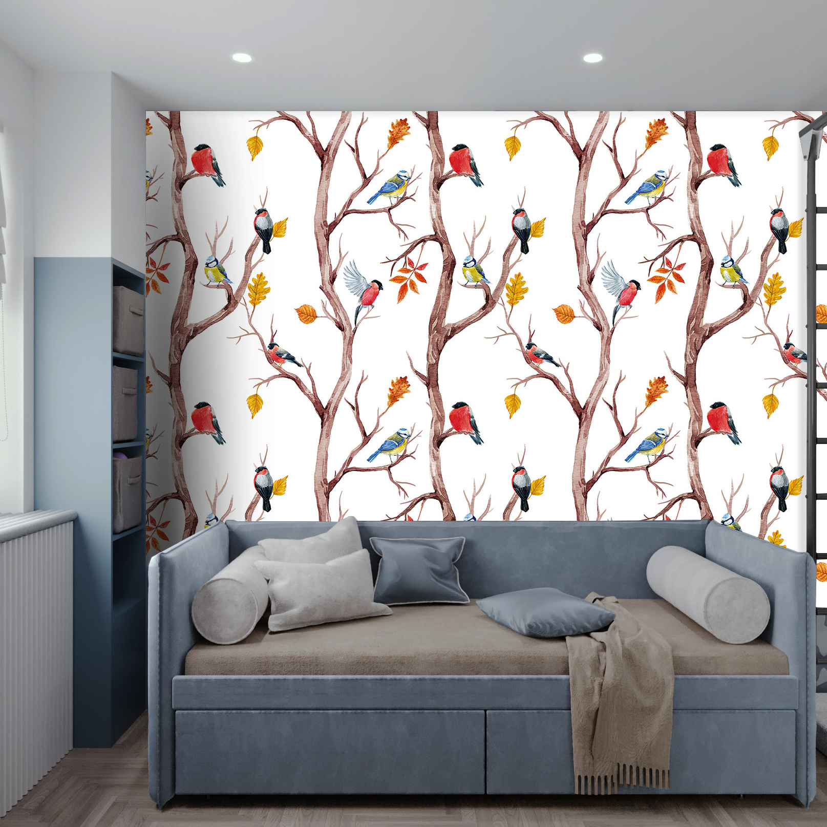 Transform your child’s space with our premium vinyl wallpaper featuring charming bullfinches and boobs amidst lush foliage. Easy to install and washable, these wallpapers are made from environmentally friendly materials, ensuring safety and durability. Create a cozy, stimulating environment that sparks imagination.