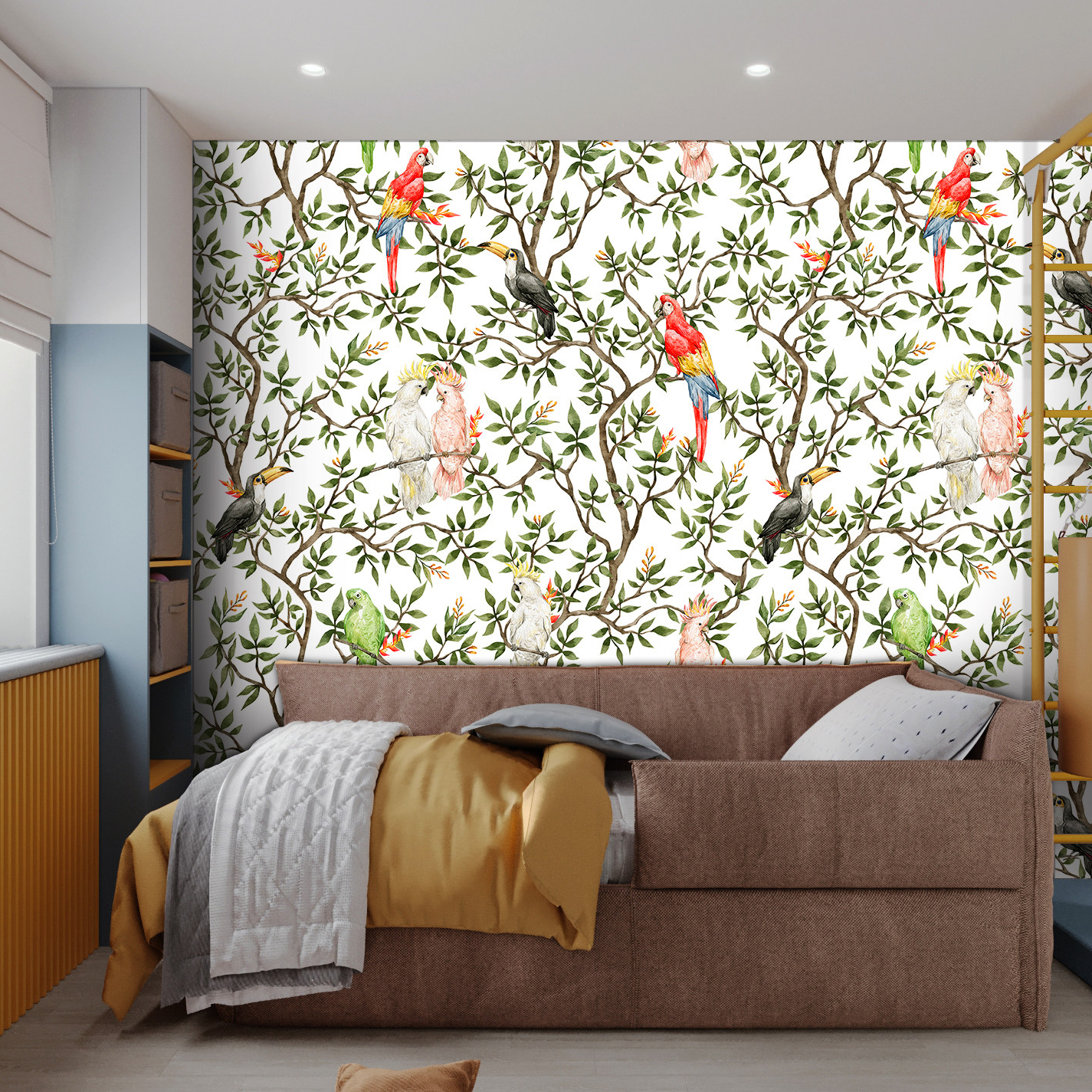 Transform your child’s space with our parrots and toucans on branches wallpaper. Crafted from high-quality washable vinyl, these wallpapers not only beautify but also inspire imagination and learning with their lifelike images and vibrant colors. Ideal for creating a cozy and adventurous atmosphere in any children’s room.